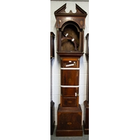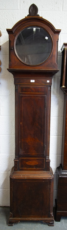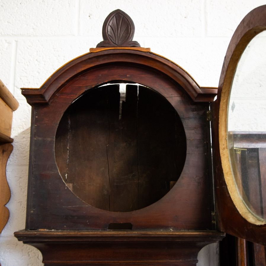 REGENCY MAHOGANY ROUND DIAL CASE TO TAKE A 14’’ DIAL. POSSIBLY CORK MADE CASE, MEASURING 222H X 48W X 24D CM.