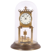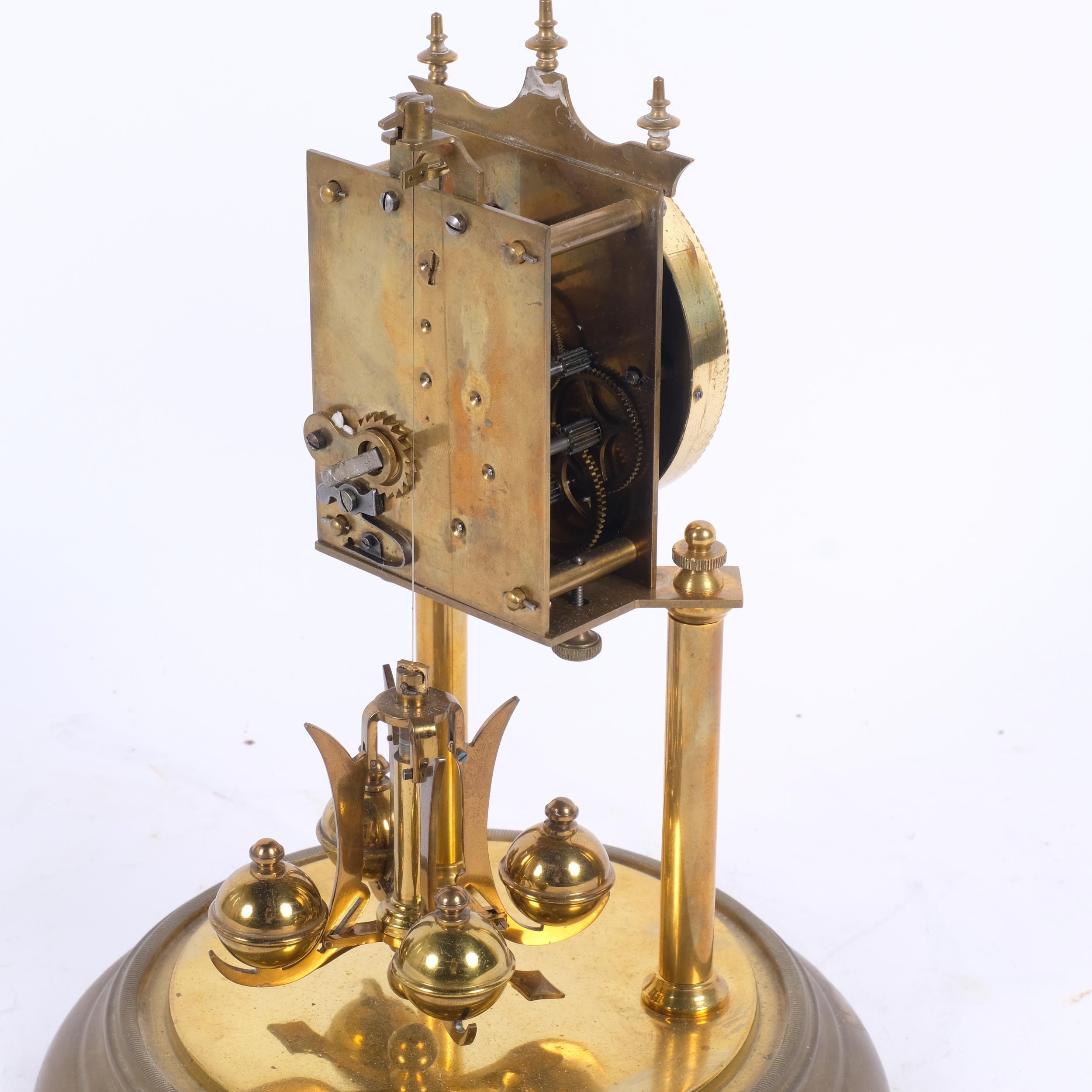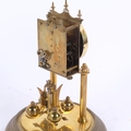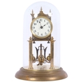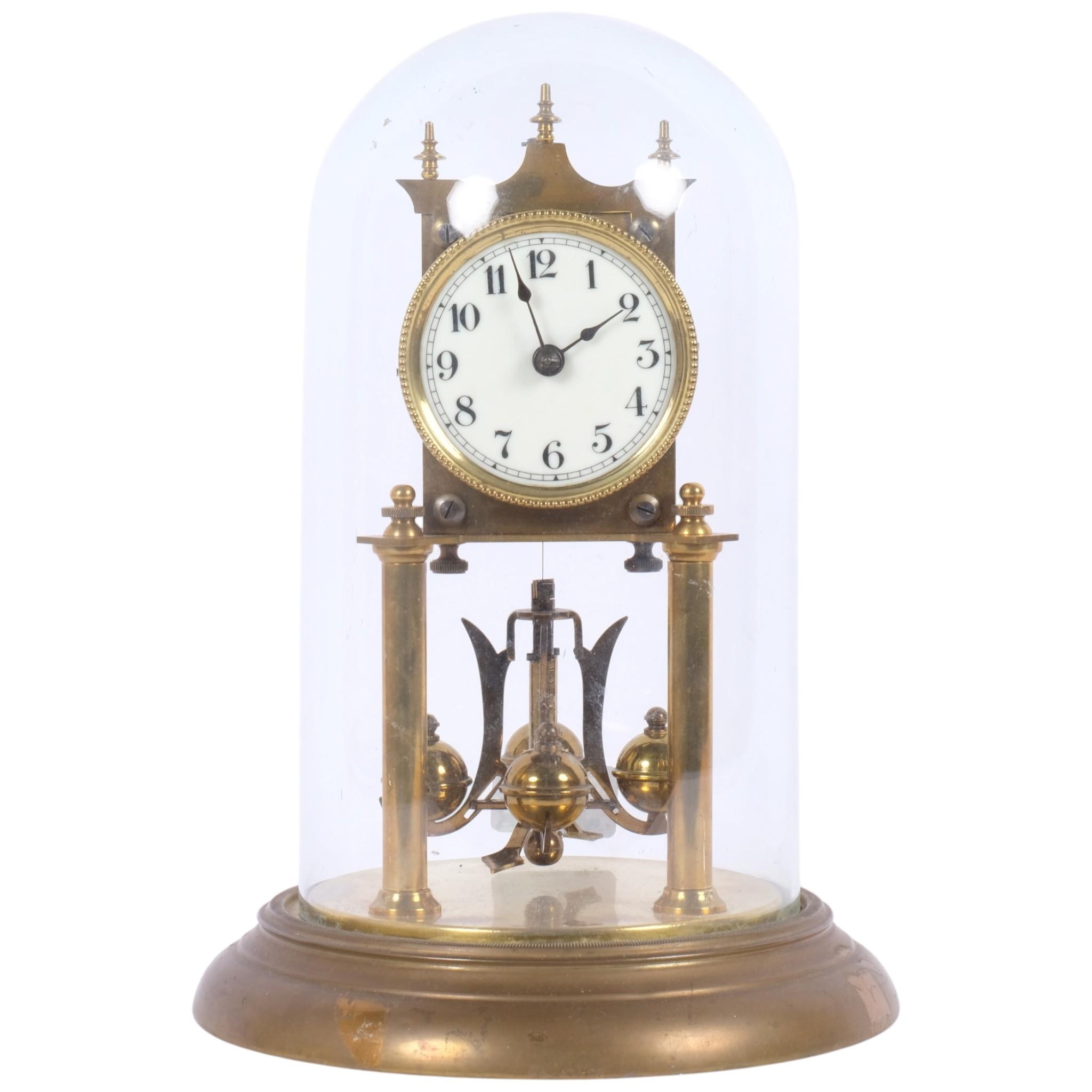 A 19th century brass torsion pendulum 400-day mantel clock, under glass dome on brass base, H28cm