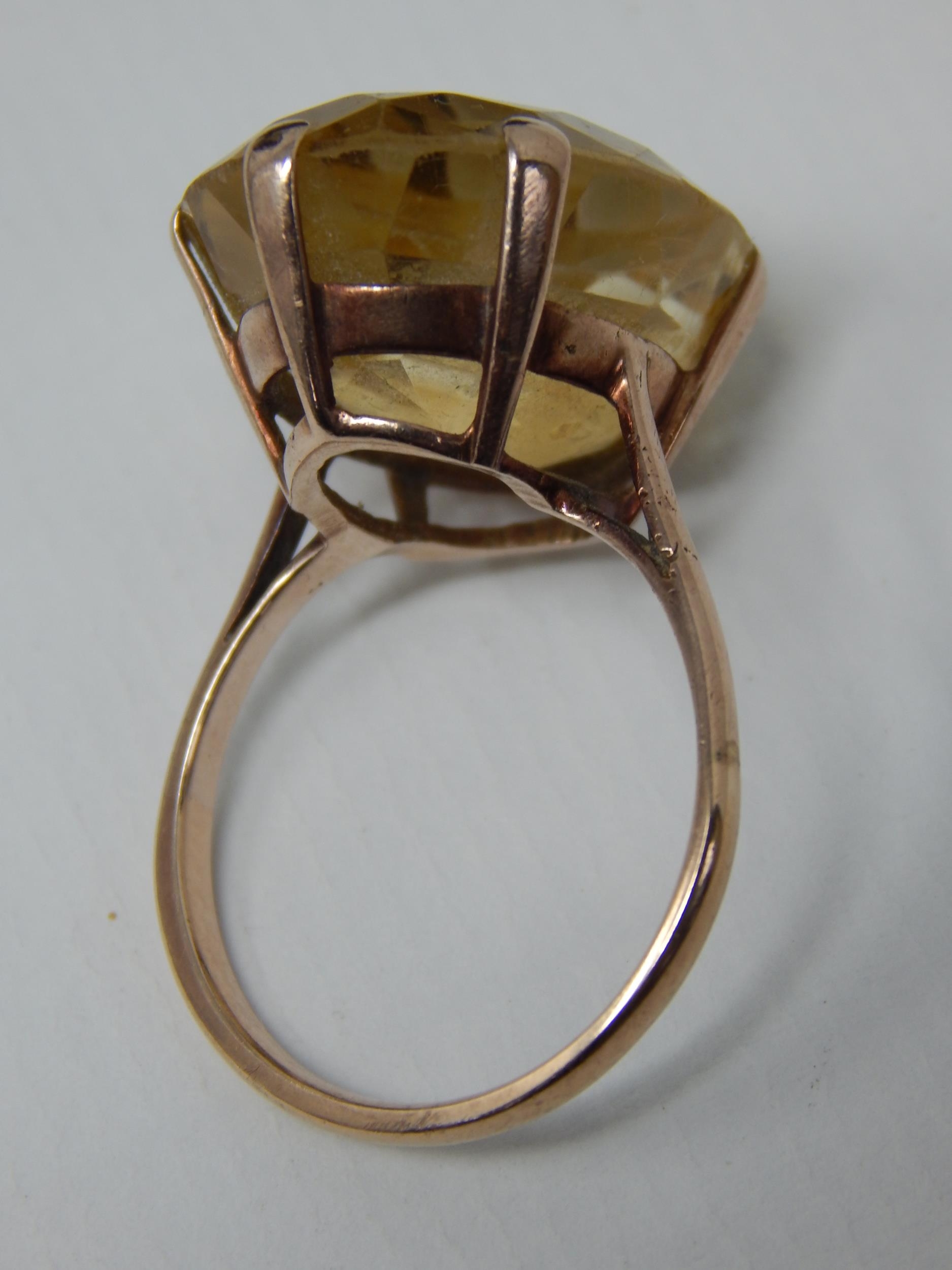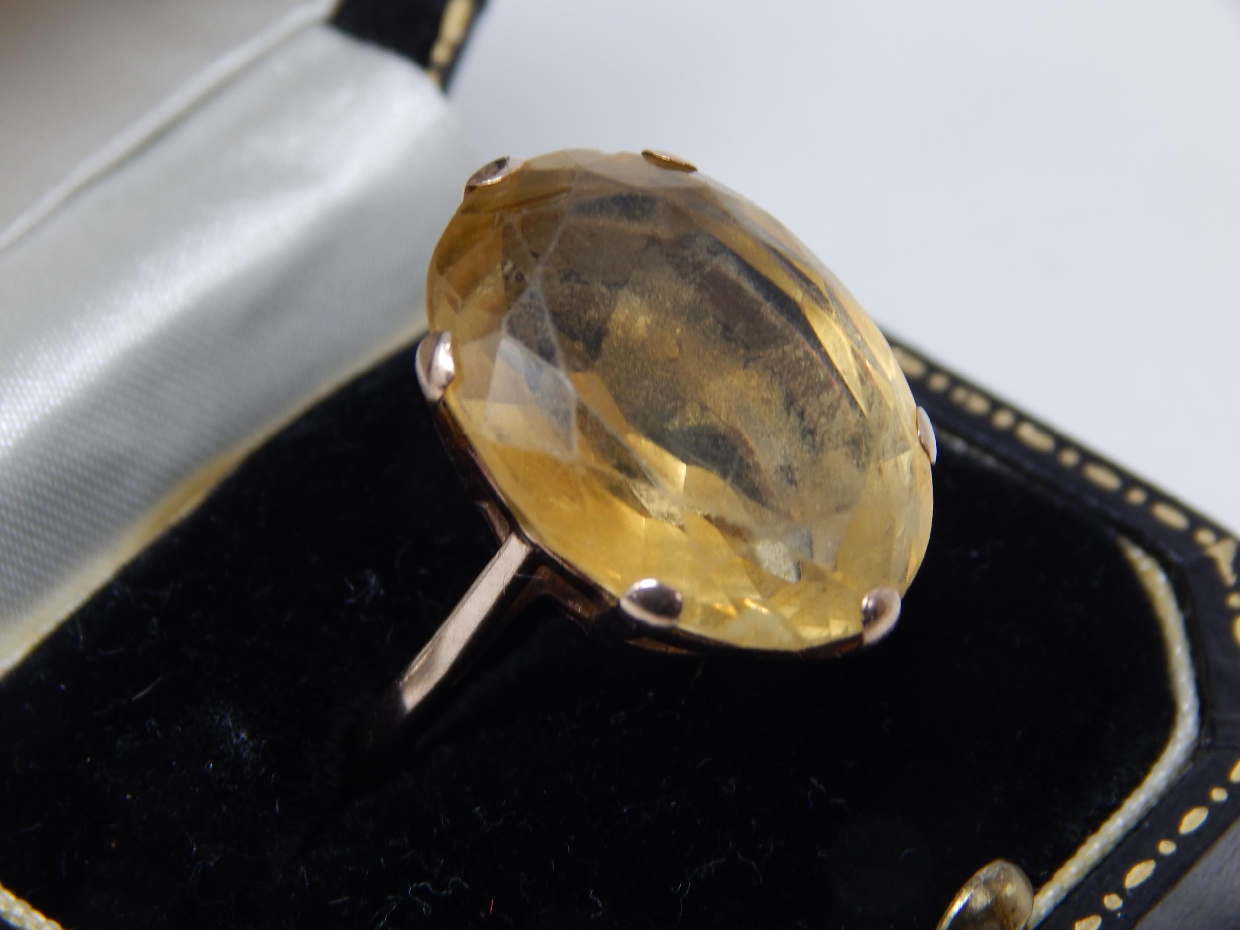 9ct Yellow Gold Ring Inset with a Topaz Measuring 14.20cts: Ring Size S: In Fitted Harrods Case.