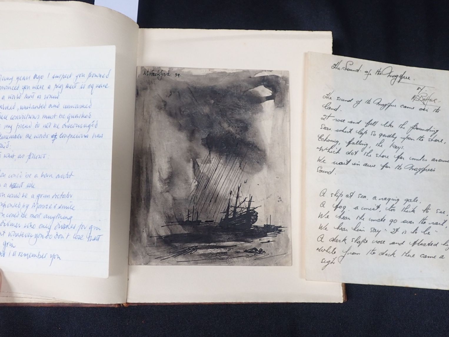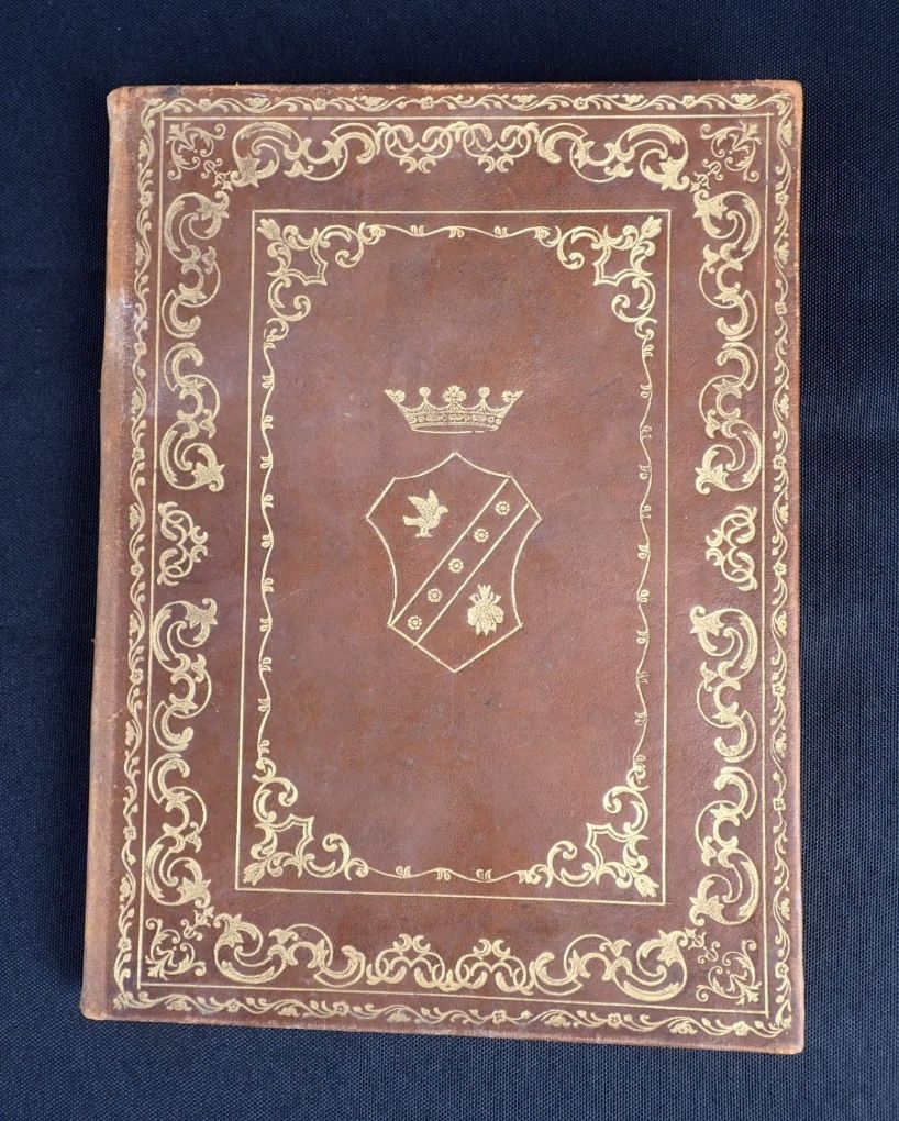A VINTAGE ITALIAN LEATHER-BOUND NOTEBOOK, WITH GILT ARMORIAL by Comm. G. Farina, Rome, partly filled with m.s (English) poetry