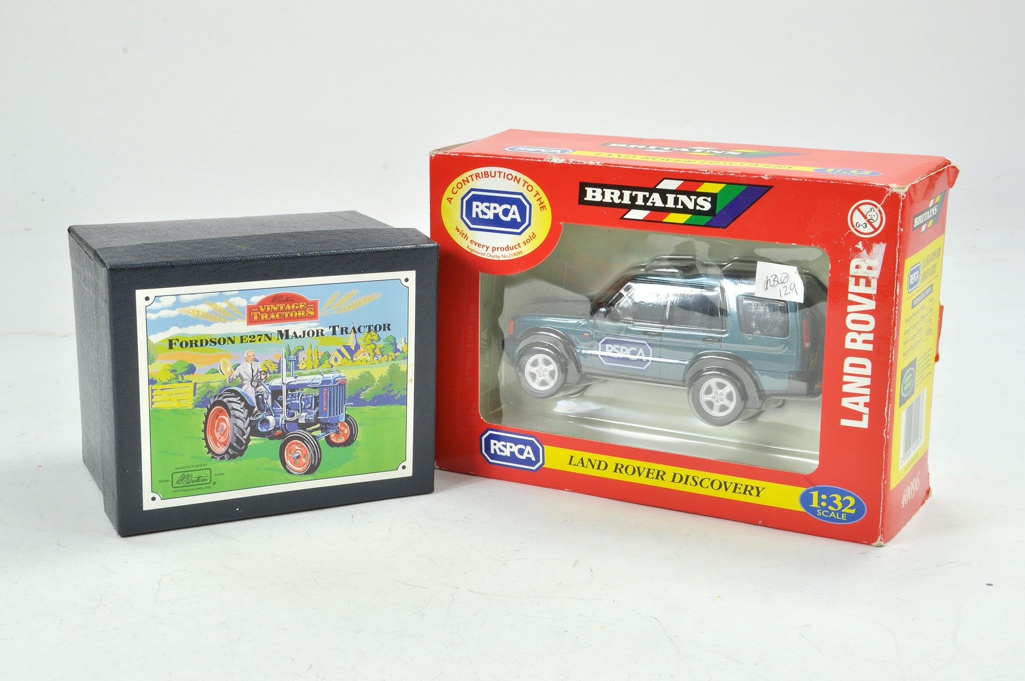 Britains 1/32 Fordson E27N Major Tractor part of vintage series plus Land Rover Discovery RSPCA. Appear excellent with boxes.