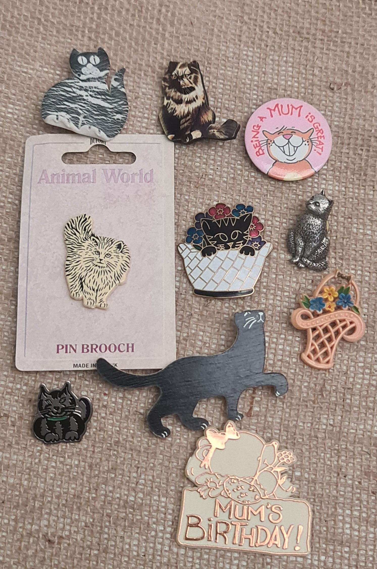 Vintage Parcel of Ten Cat Related Badges. Shipping is available. Please ask for a quote before bidding. Where possible we combine shipping costs. Remember, if you are the highest bidder above reserve on this Lot you have bought the item and are legally responsible for the item. Viewing is recommended in either person or via video link. Contact us to arrange.