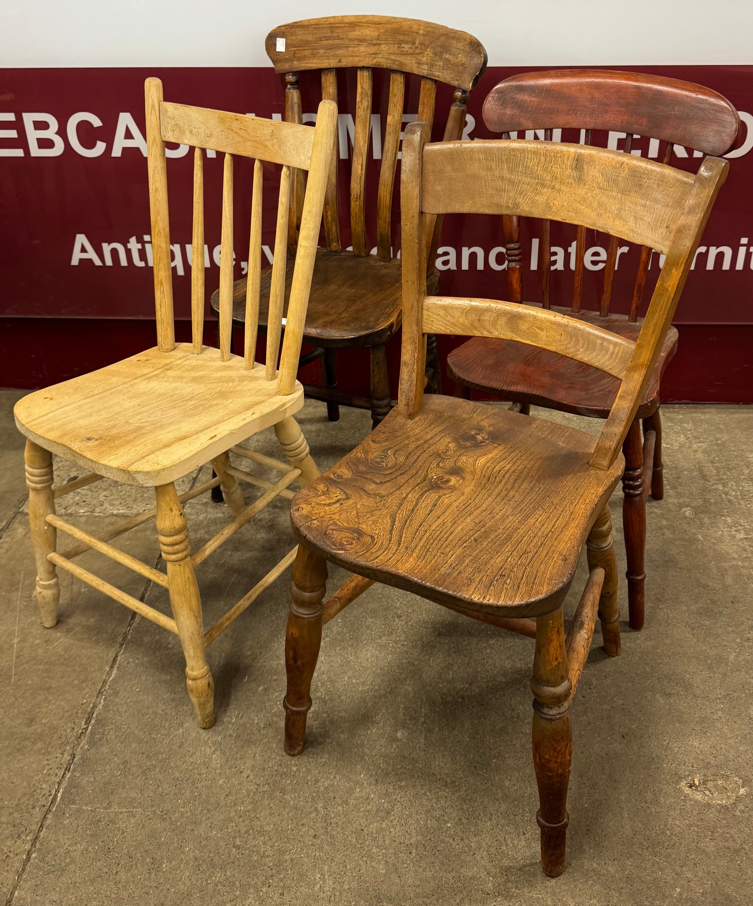 Four assorted Victorian kitchen chairs