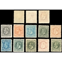 Dom Pedro: 1876-79 group with first types set without a 50r, mostly unused without gum, one 80r fresh large part o.g. and 500r large part o.g., 1876-79 â??White Beardâ?? set with 80r, 200r and 300r to 1000r without gum; fine and fresh appeara
