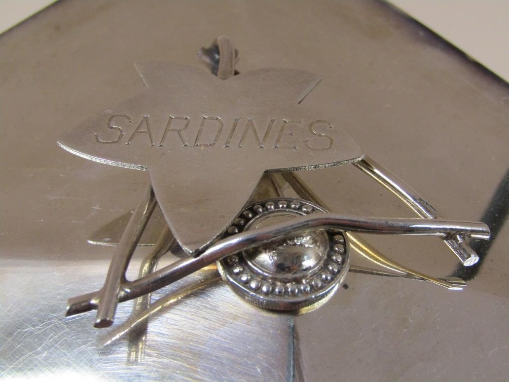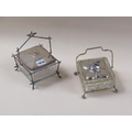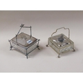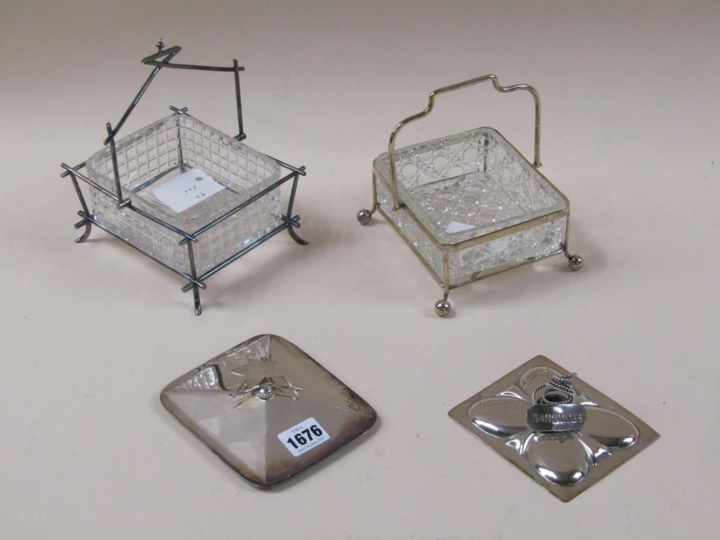 TWO CUT GLASS SARDINE DISHES ON STAND WITH SILVER PLATED MOU...