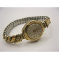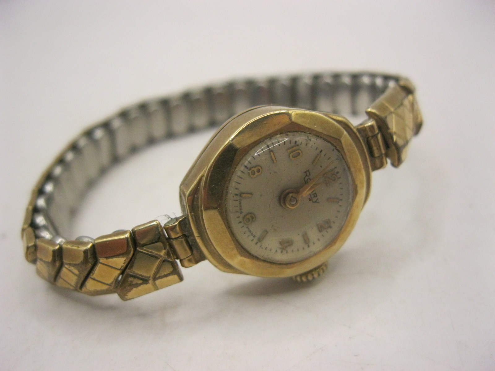 A vintage ladies Rotary wrist watch with 9 carat gold case on a rolled gold strap, case back weighs approx 1.3g