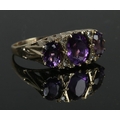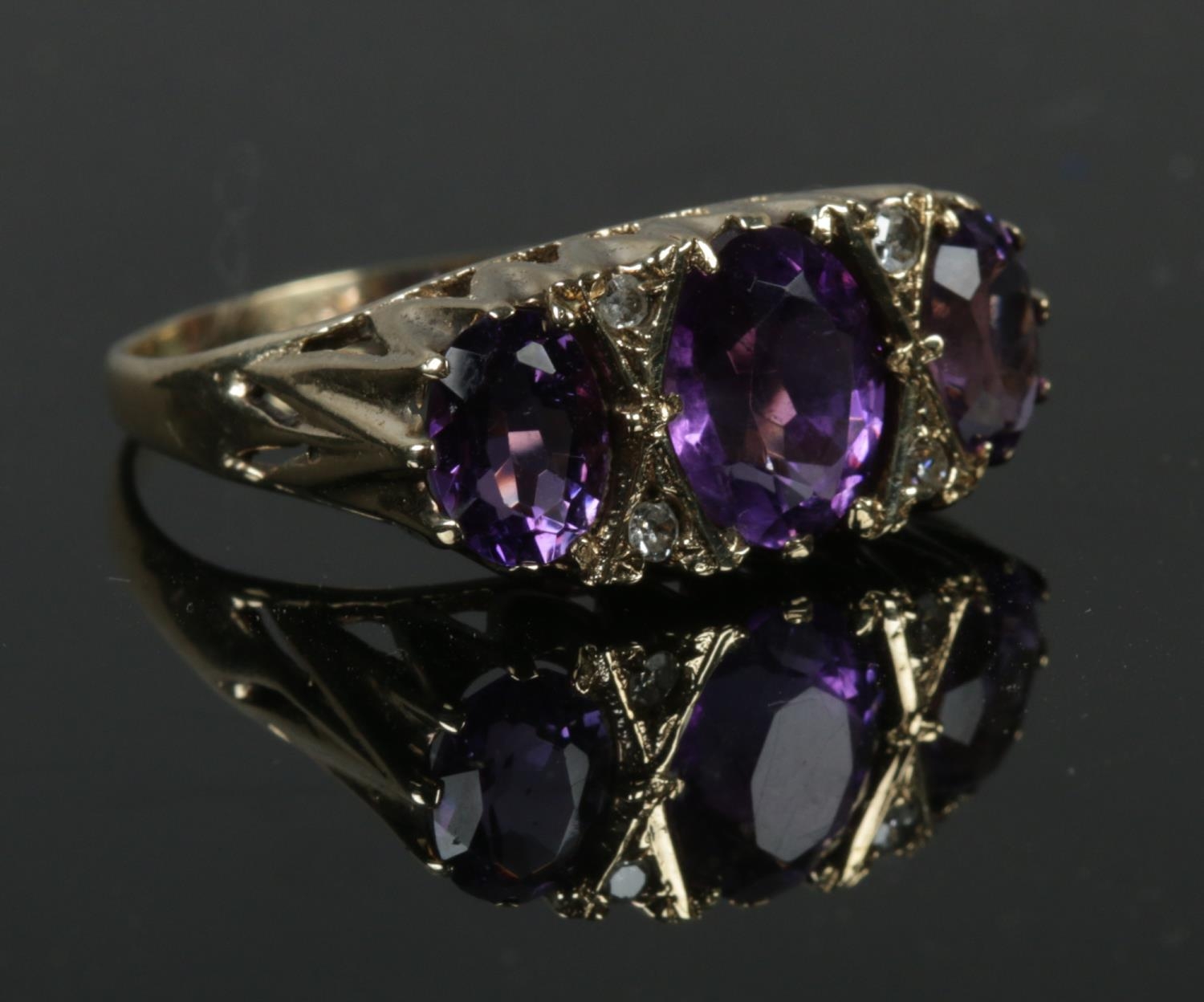 A vintage 9ct gold amethyst & diamond ring in Victorian style, size U. 3.84g.