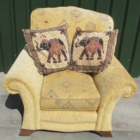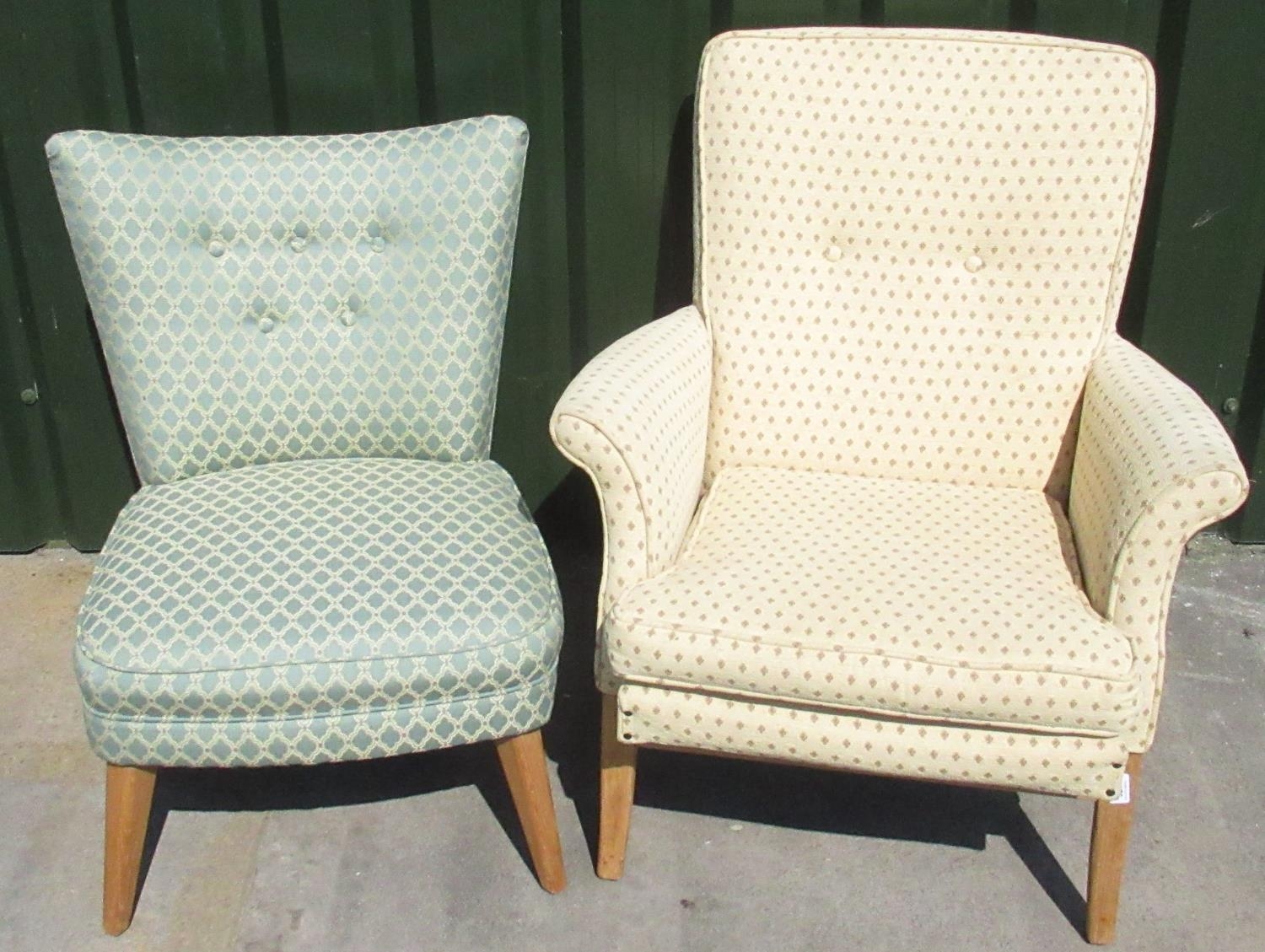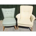 Jon Culshaw Collection - Parker Knoll upolstered chair with button back and out scrolled arms on oak supports, and an upholstered nursing chair (2)