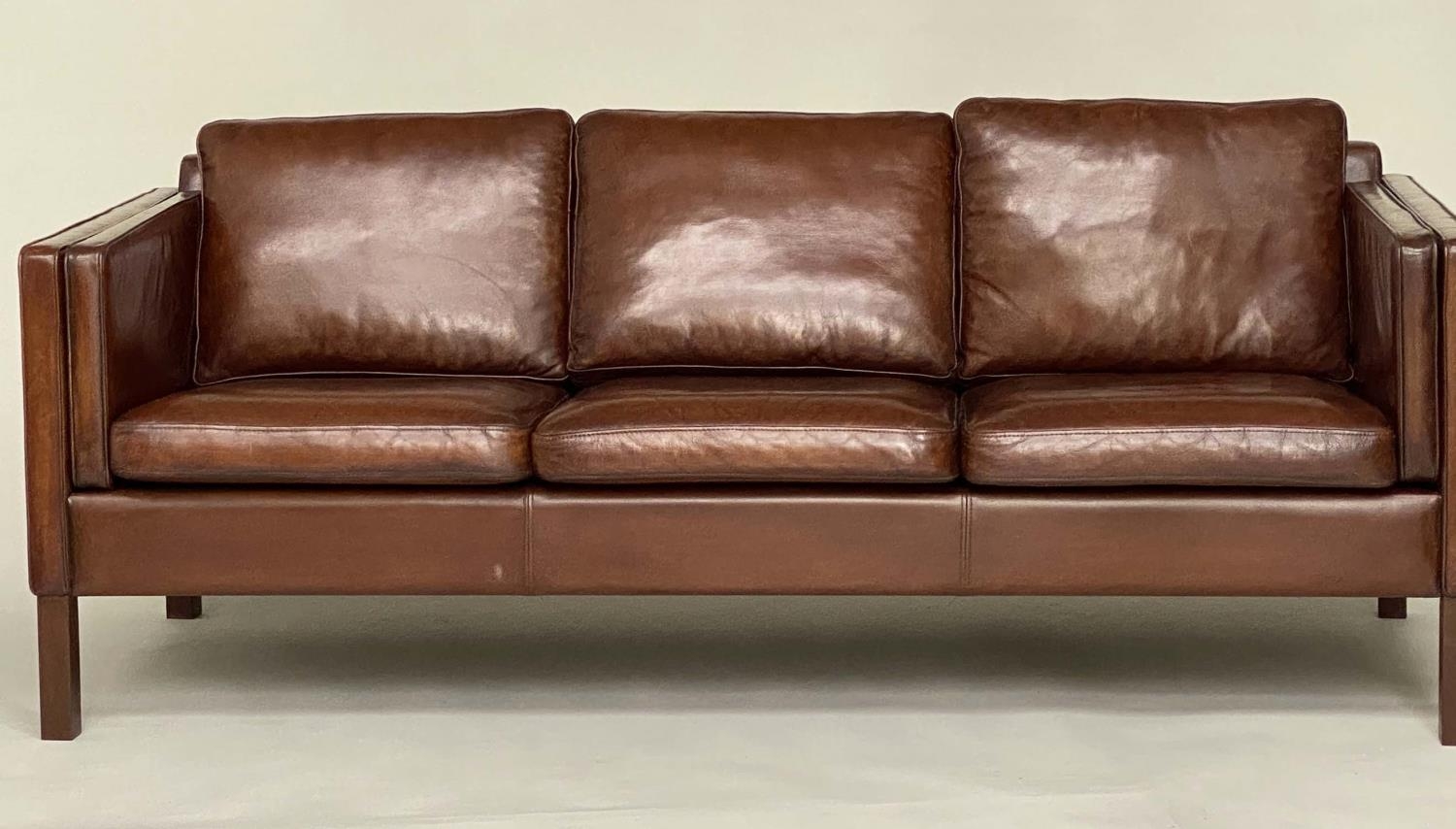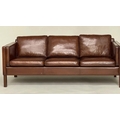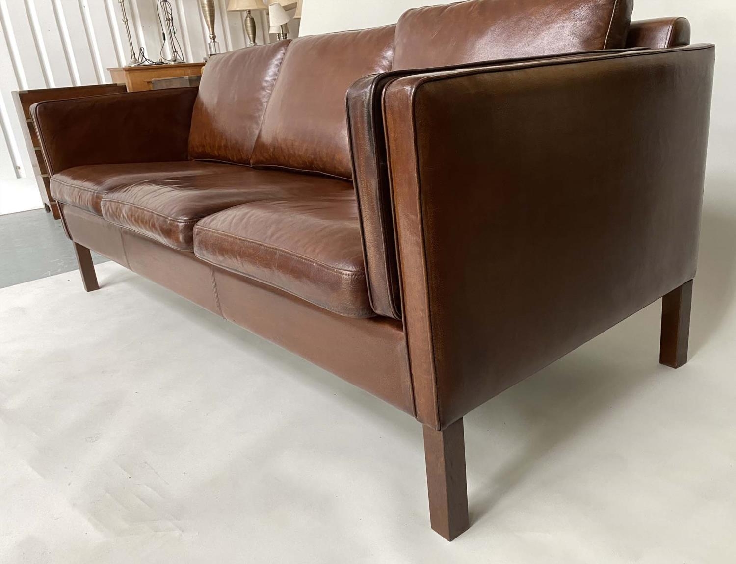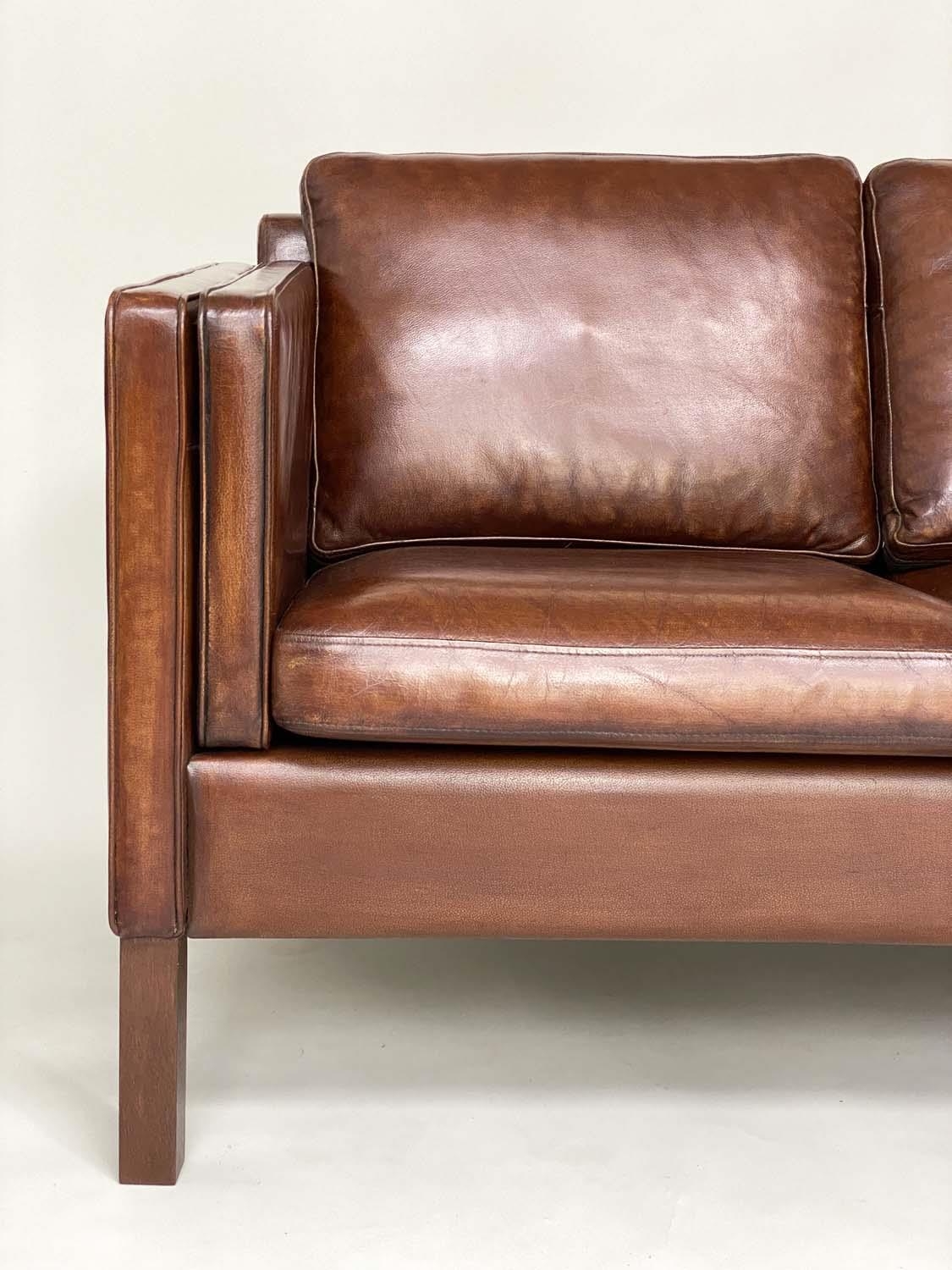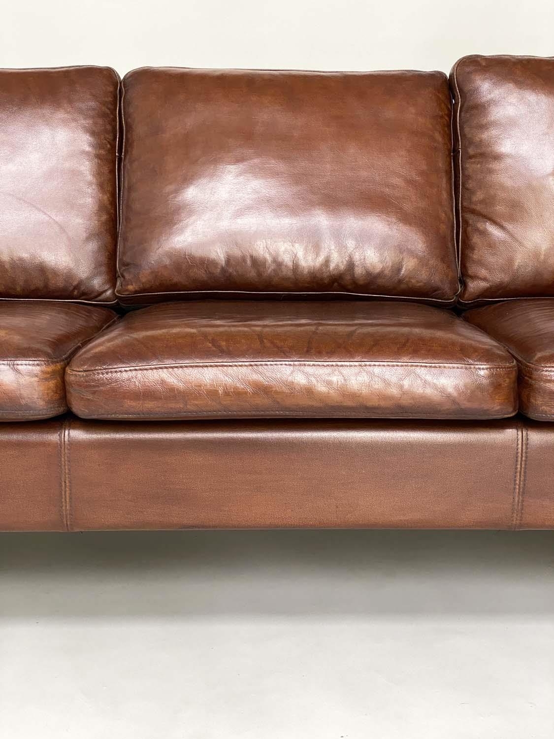 DANISH SOFA, 1960s Danish grained mid brown leather with back and seat cushions, 200cm W.