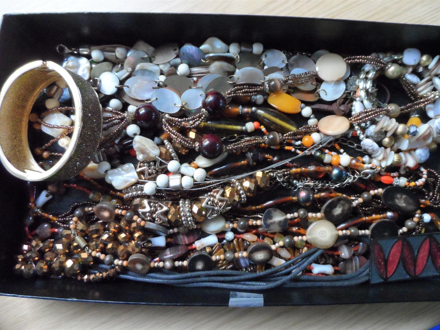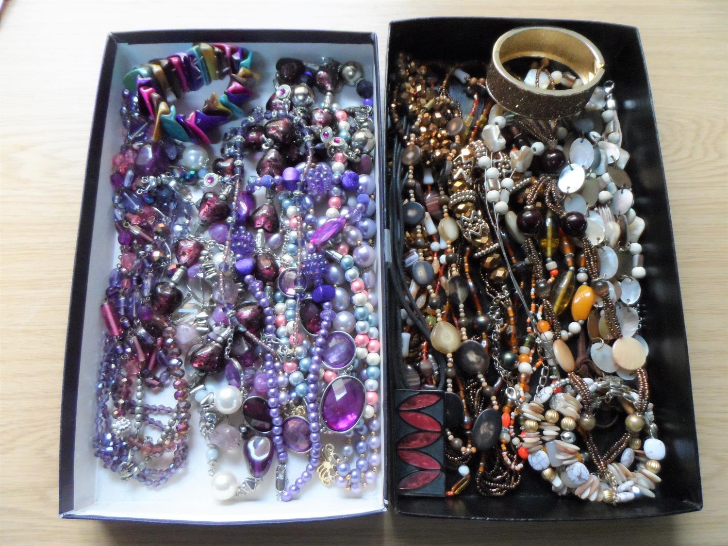 Two trays of good quality costume jewellery including a large quantity of colourful ladies bead necklaces & bangles (Qty)