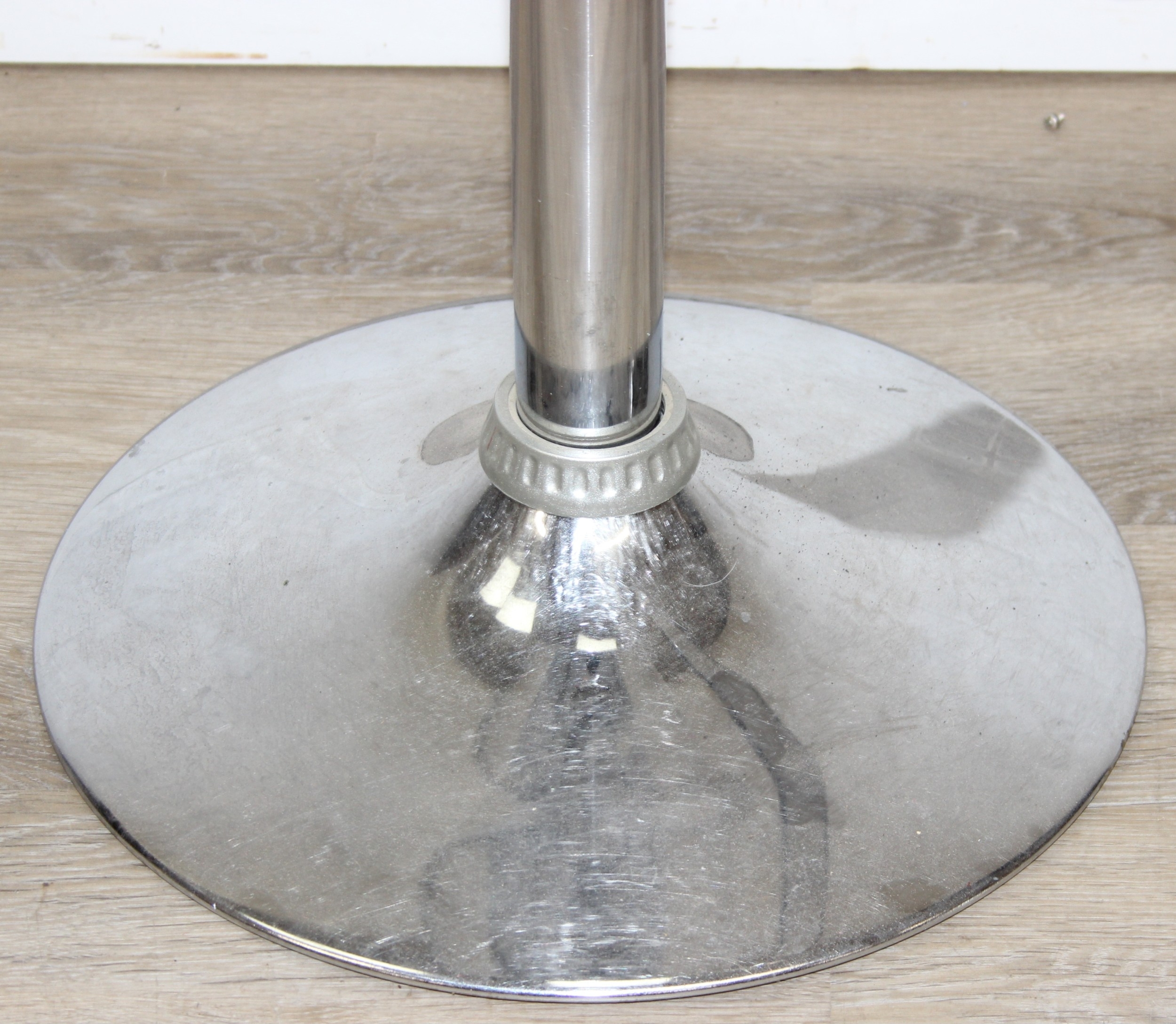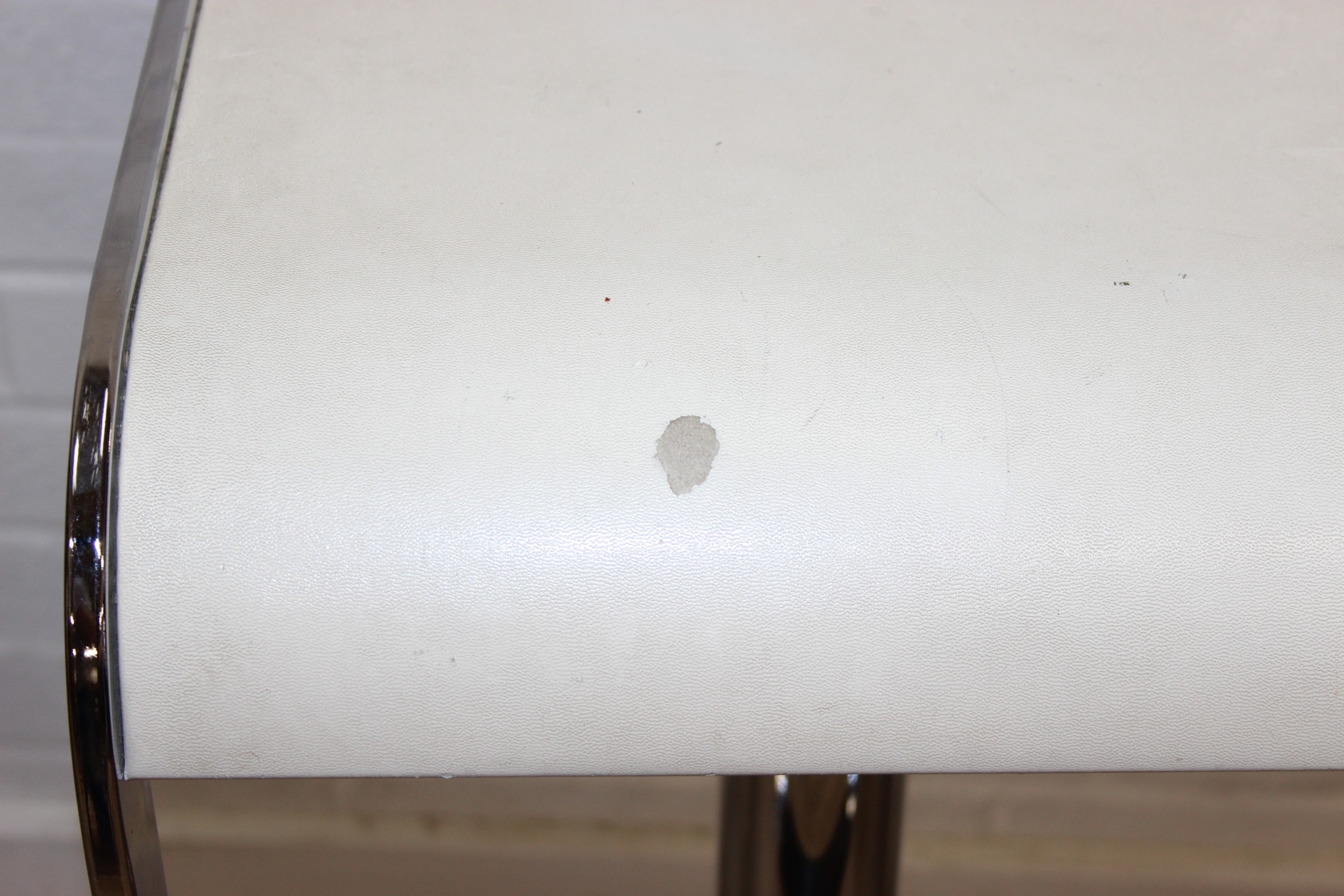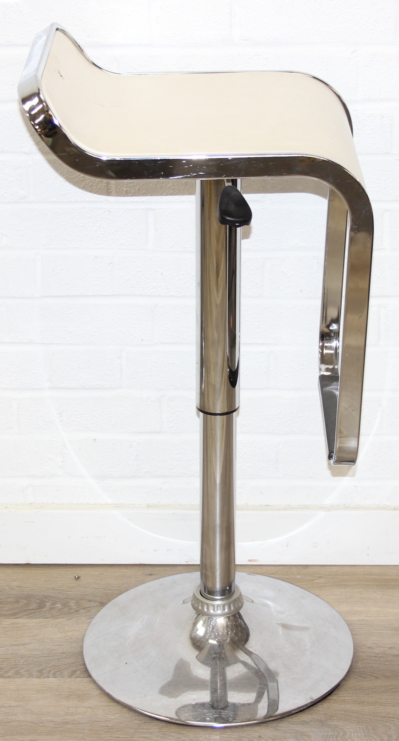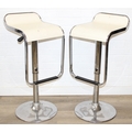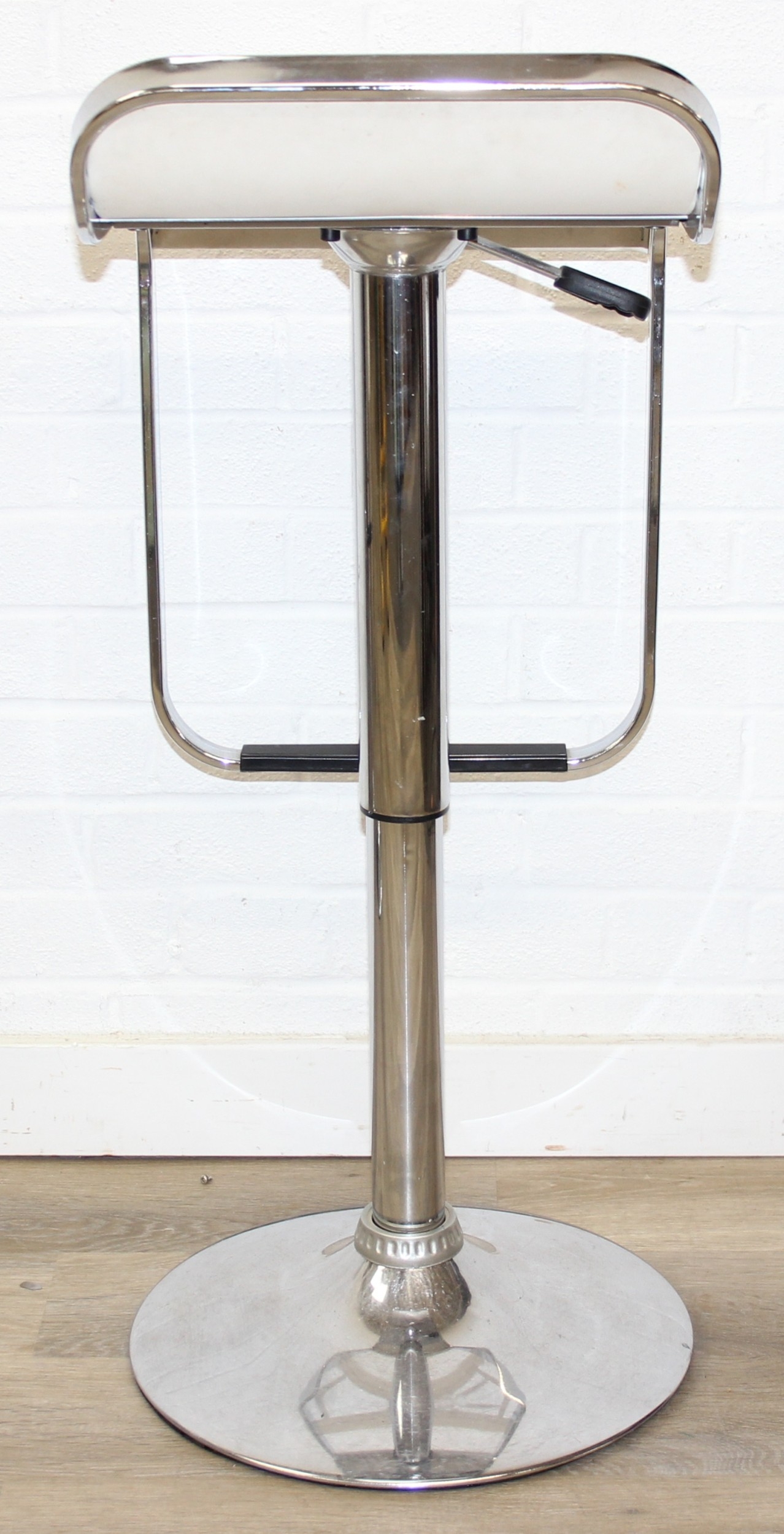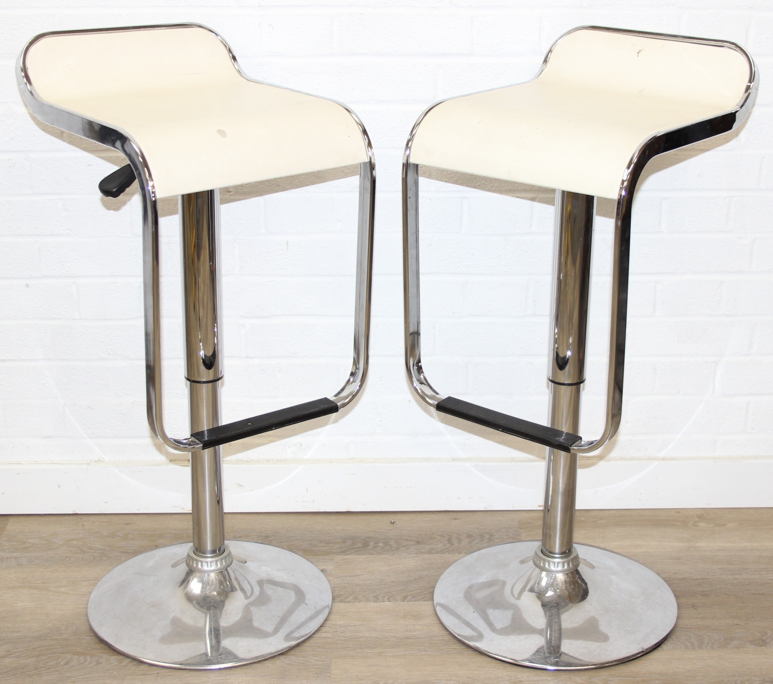 A pair of retro style chrome and white leather effect bar stools by Dwell, in the manner of LEM stools by Shin & Tomoko Azumi for Lapalma, 36cm x 44cm x 87cm full height [2]