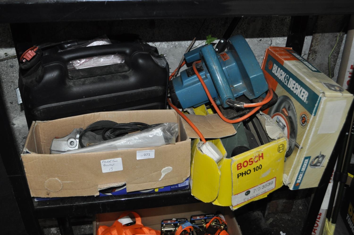 BUNDLE INC B&D JIGSAW, ELECTRIC SAW, BOSCH PLAINER, SKILL GRINDER AND BOXED B&D SANDER WITH PADS