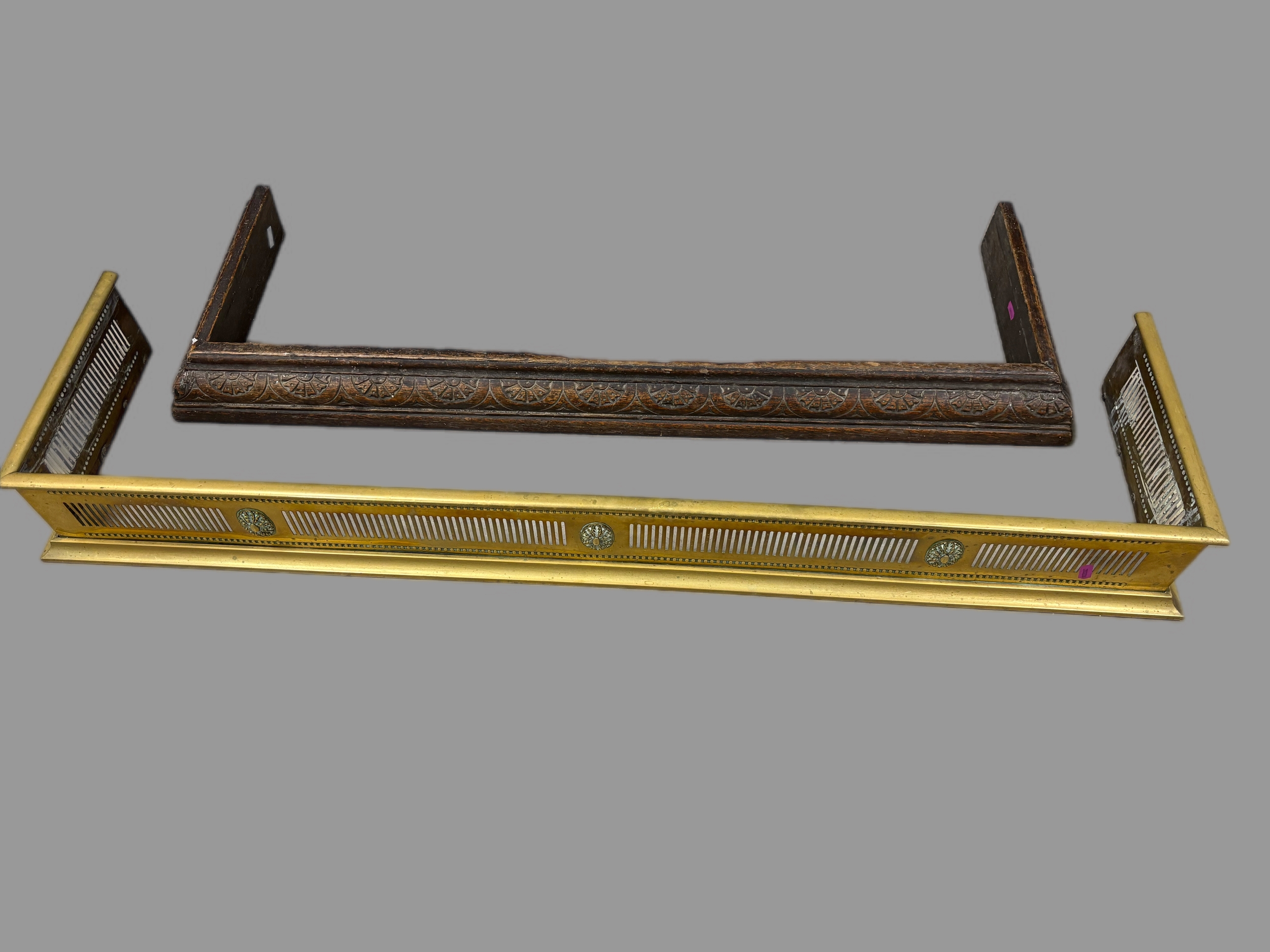Antique brass fire fender 118cm W x 30cm D x 13cm H