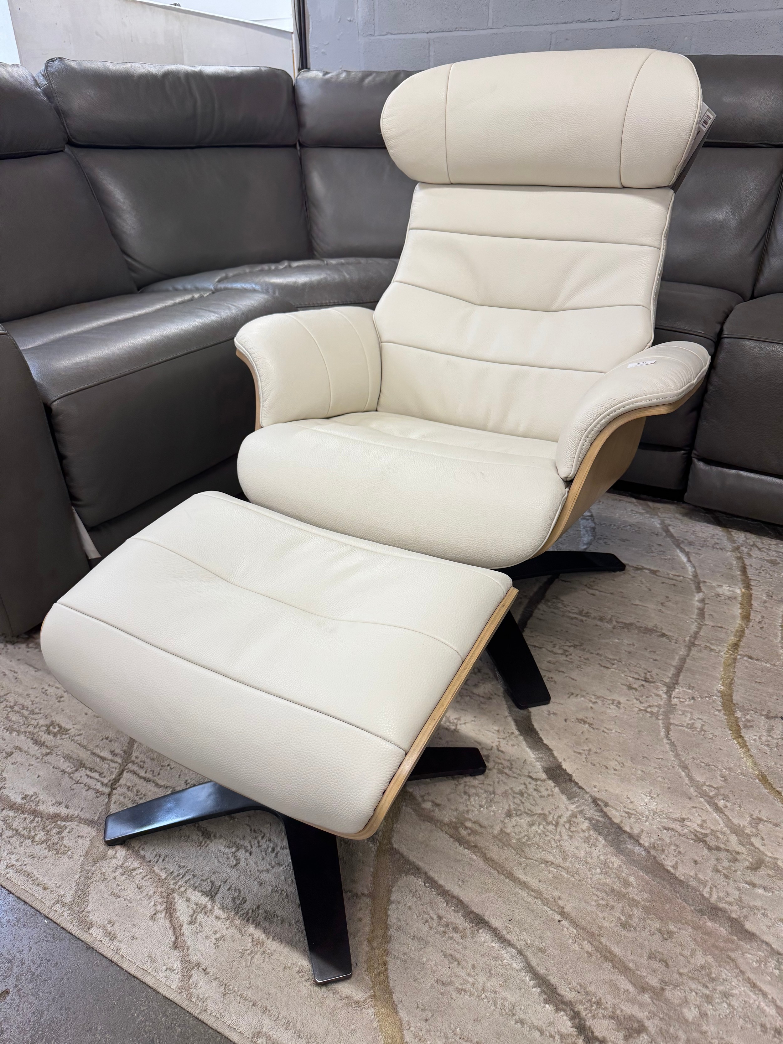 A Kuka Karma cream leather reclining chair with footstool, original RRP £583.33 + VAT (4234-38) *This lot is subject to VAT