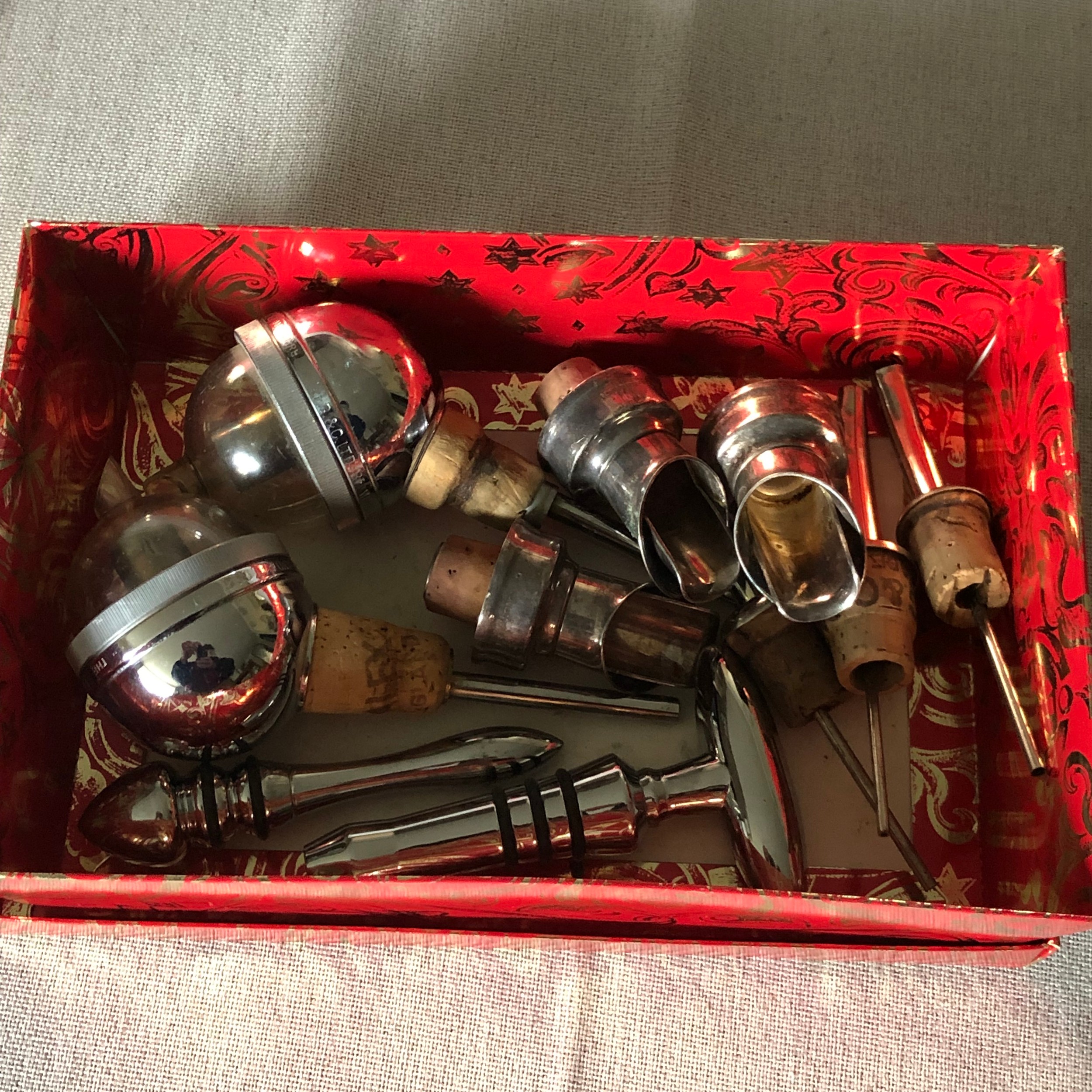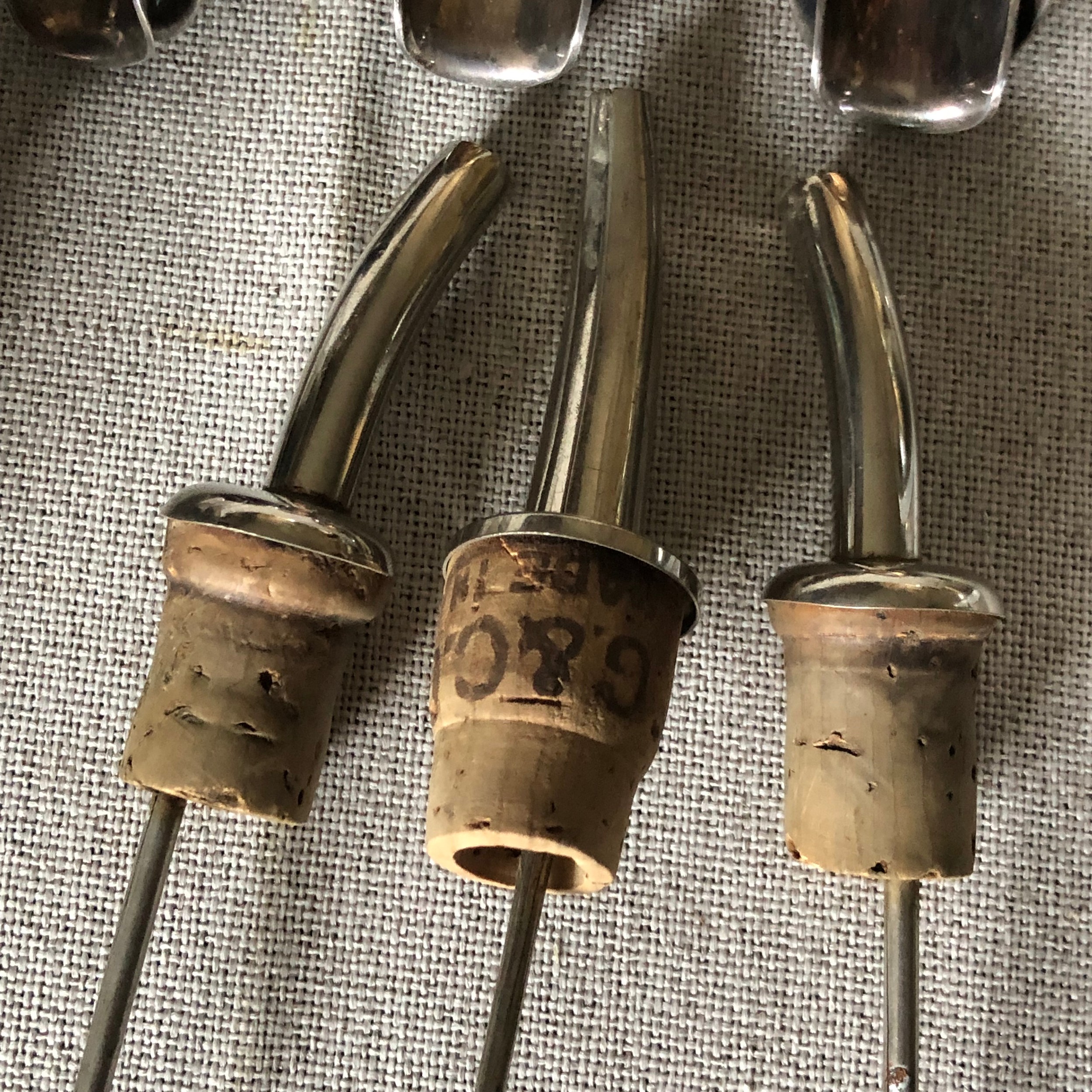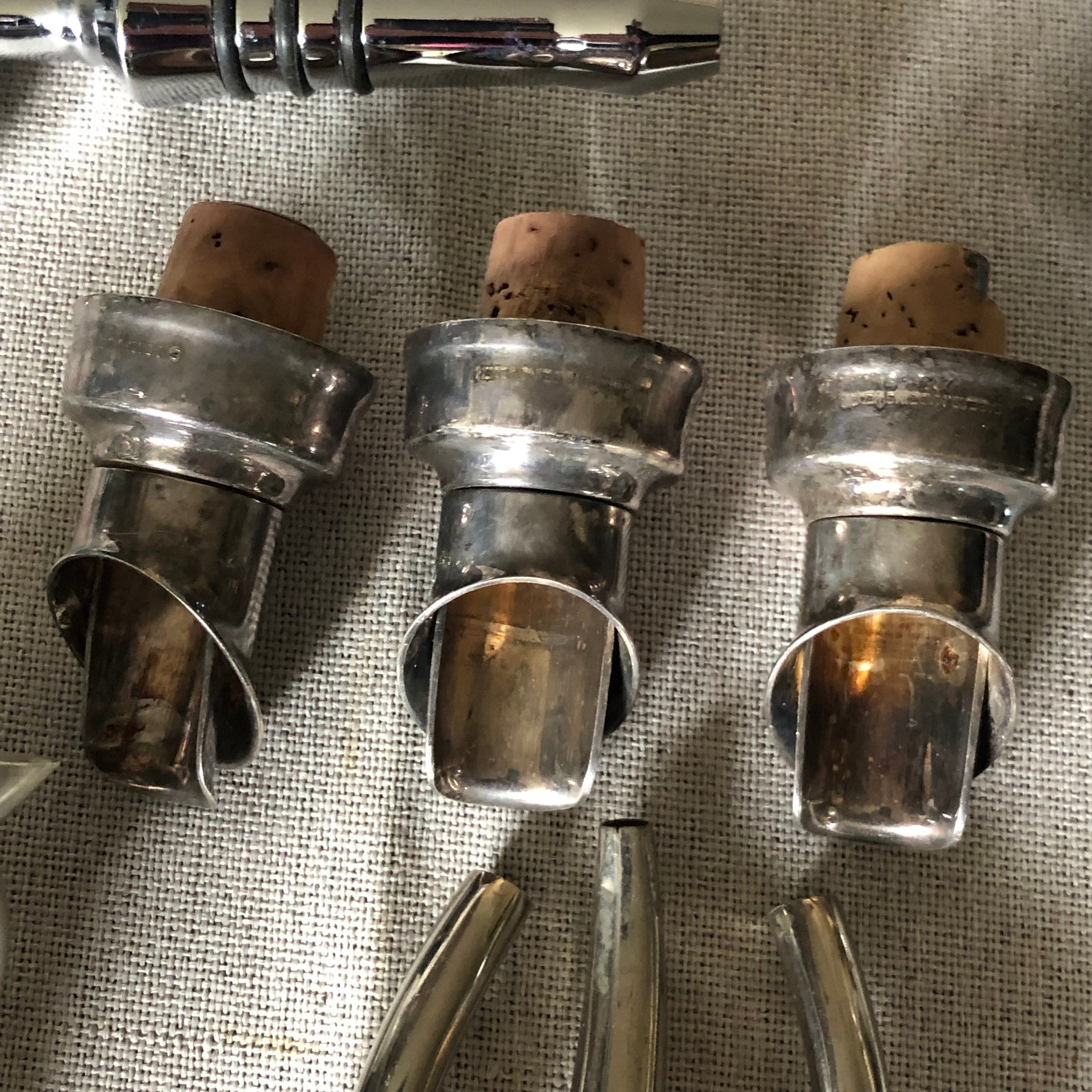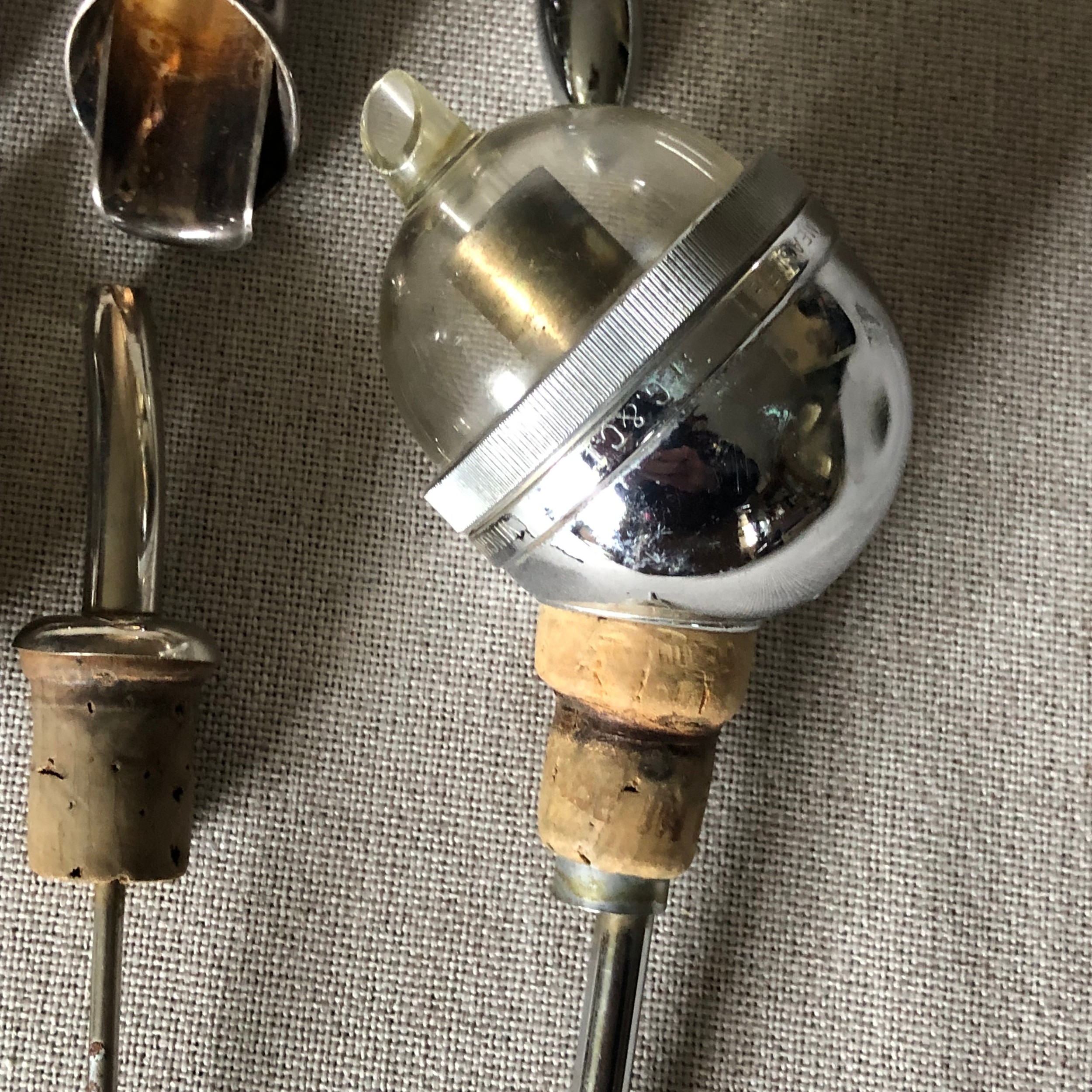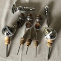 Silver plated and chrome, Wine bottle spouts, measures and stoppers