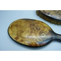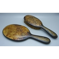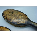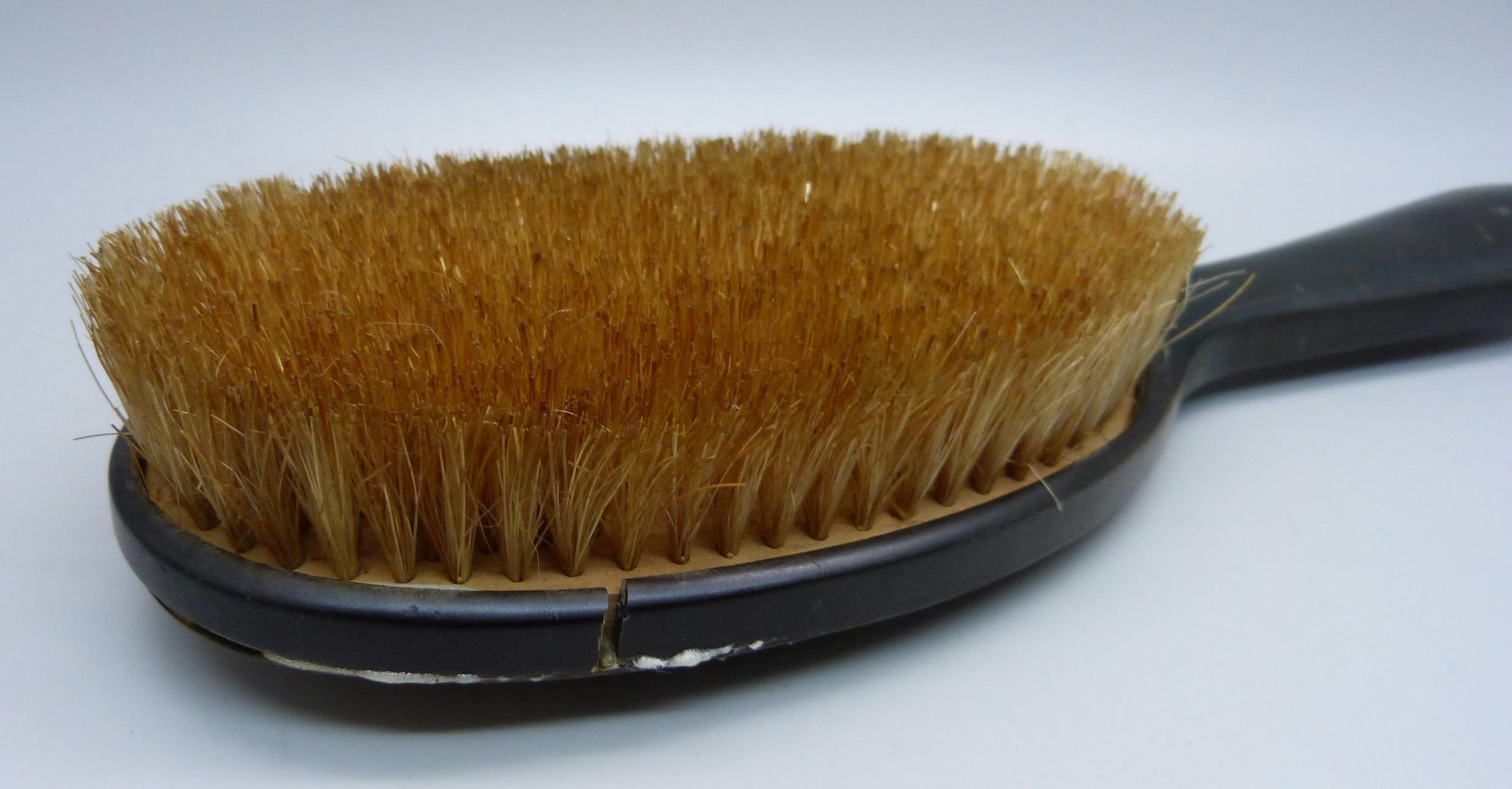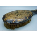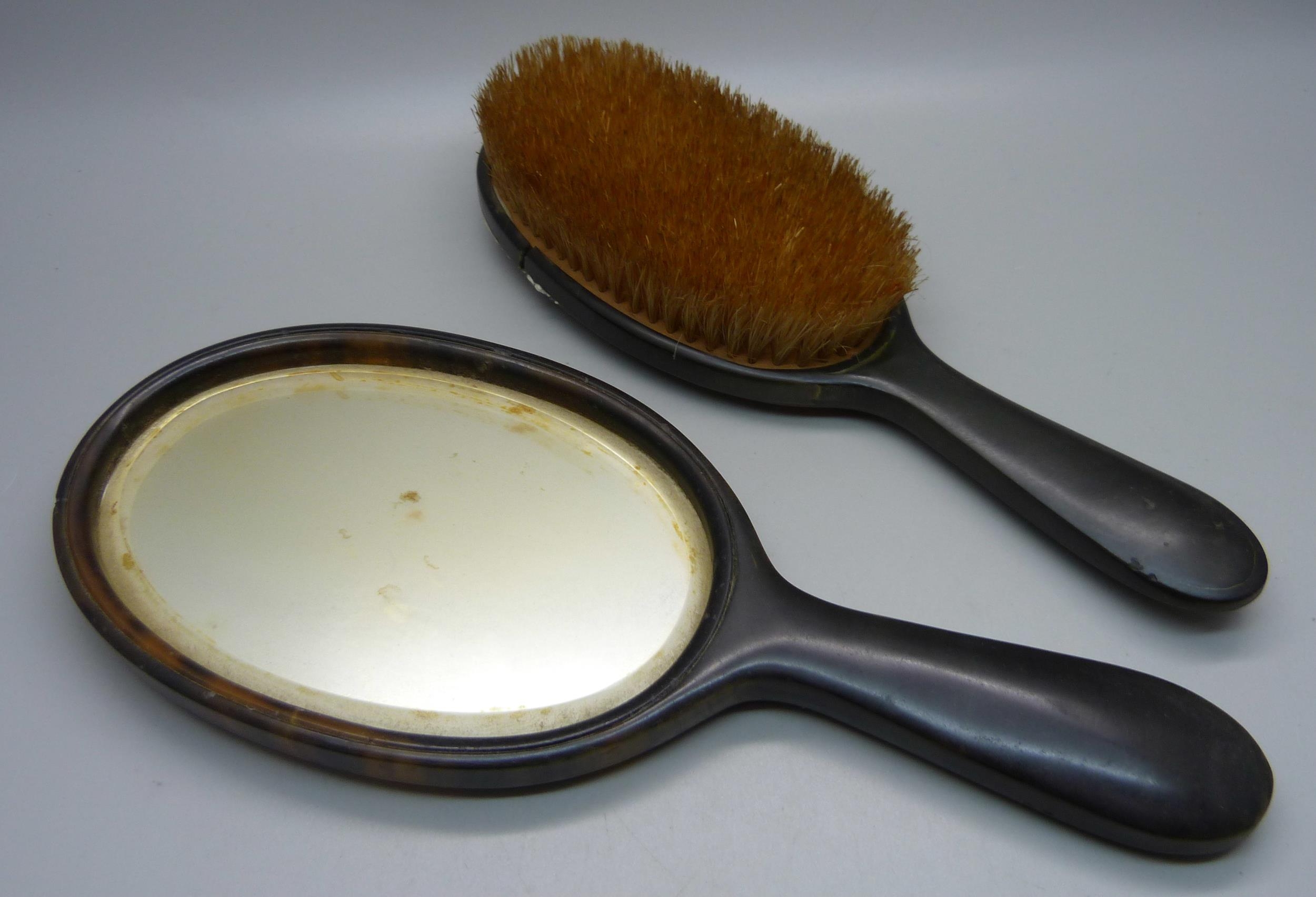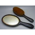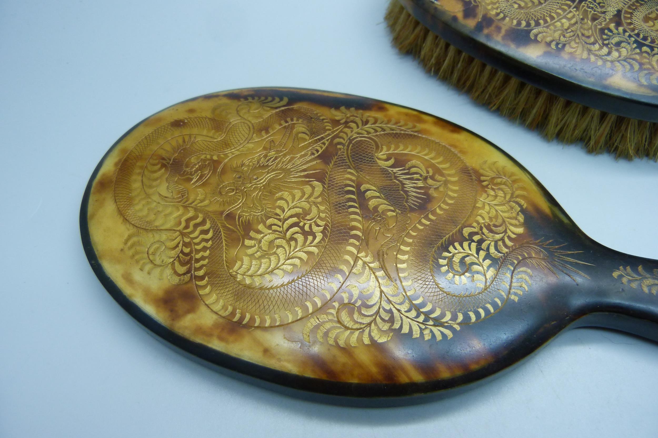 A hand mirror and brush, with carved oriental dragon detail, brush a/f