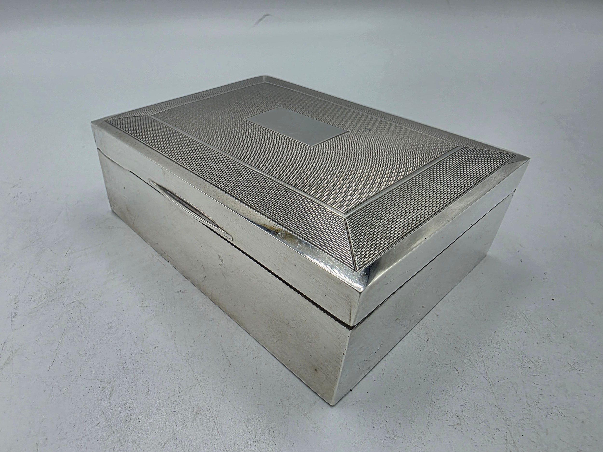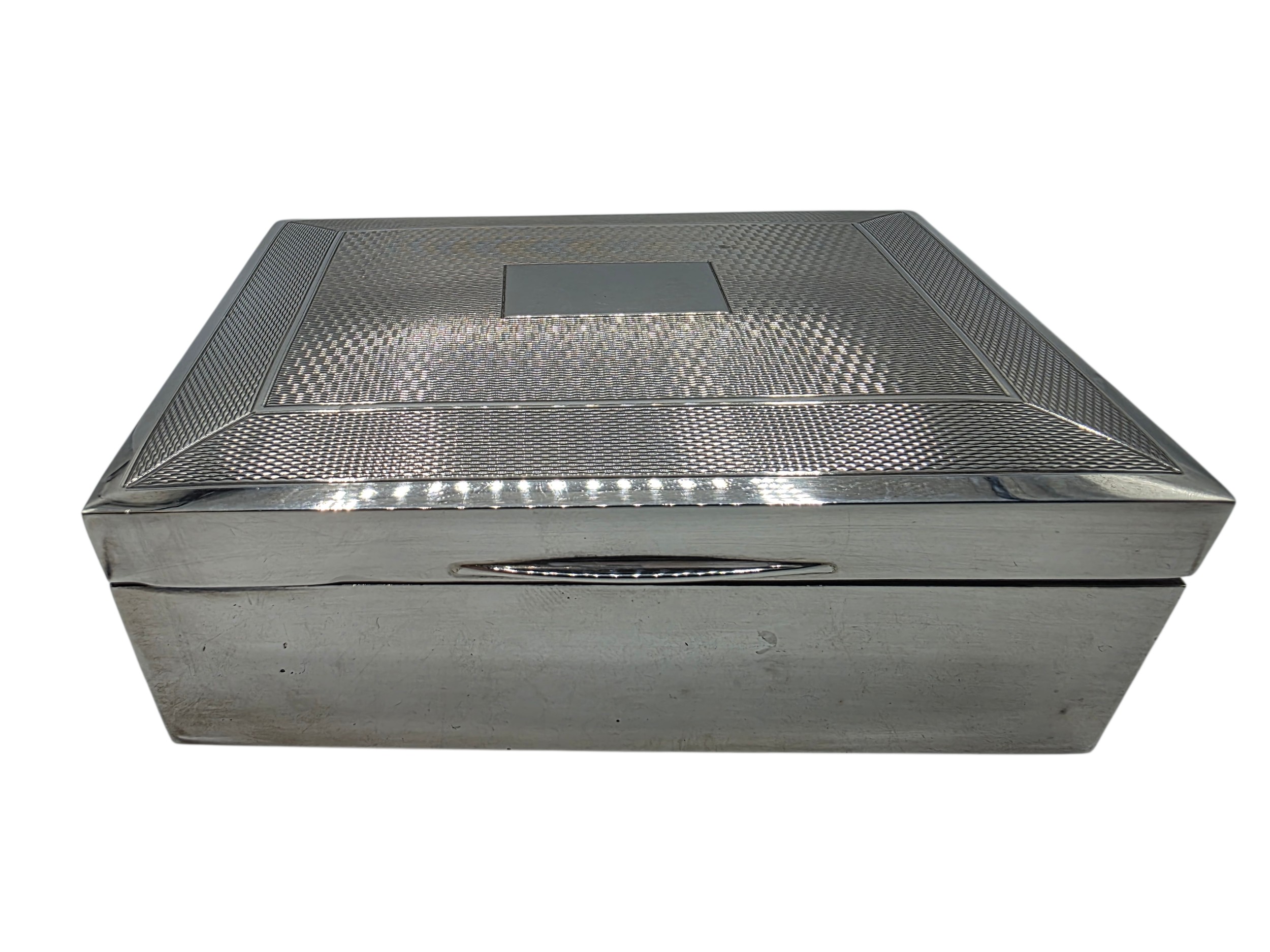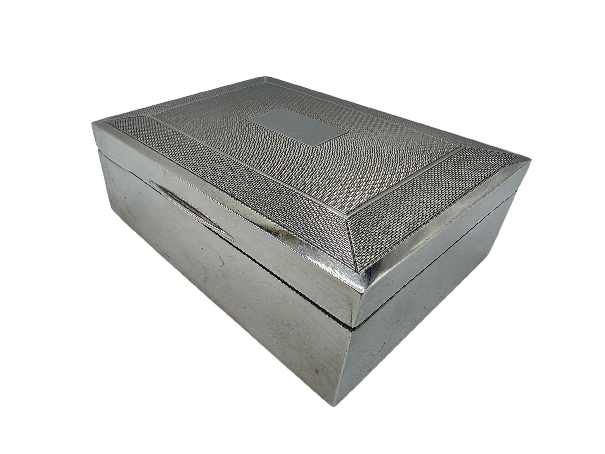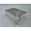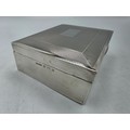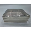 A sterling silver cedar lined cigarette box with engine turned decoration. Harman Brothers Birmingham 1971. Gross weight 330 g