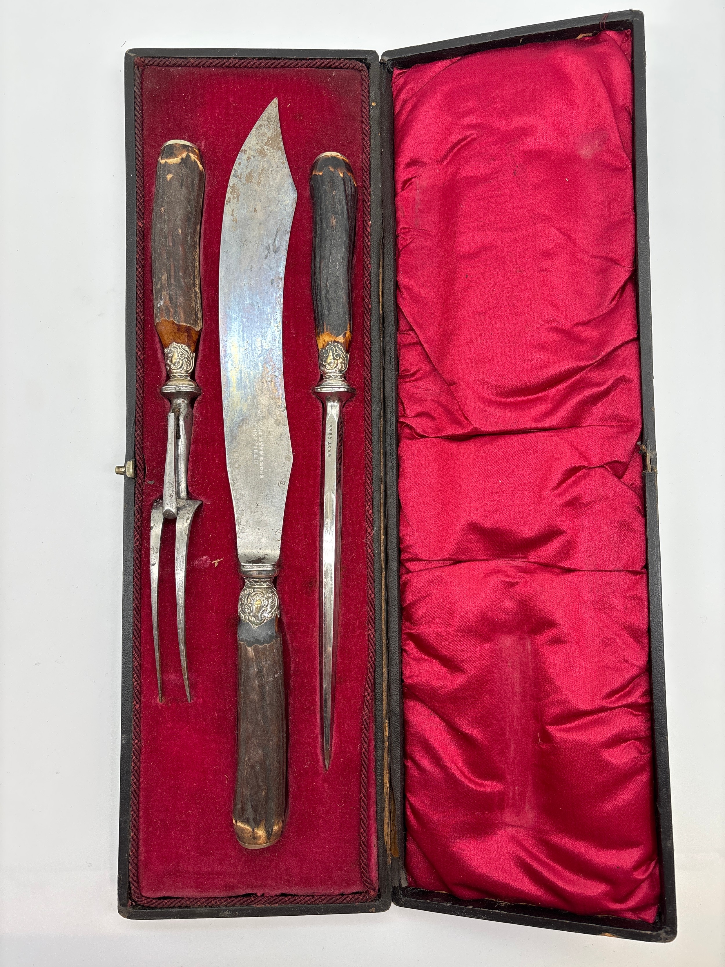 CASED HORN HANDLED SHEFFIELD CARVING SET