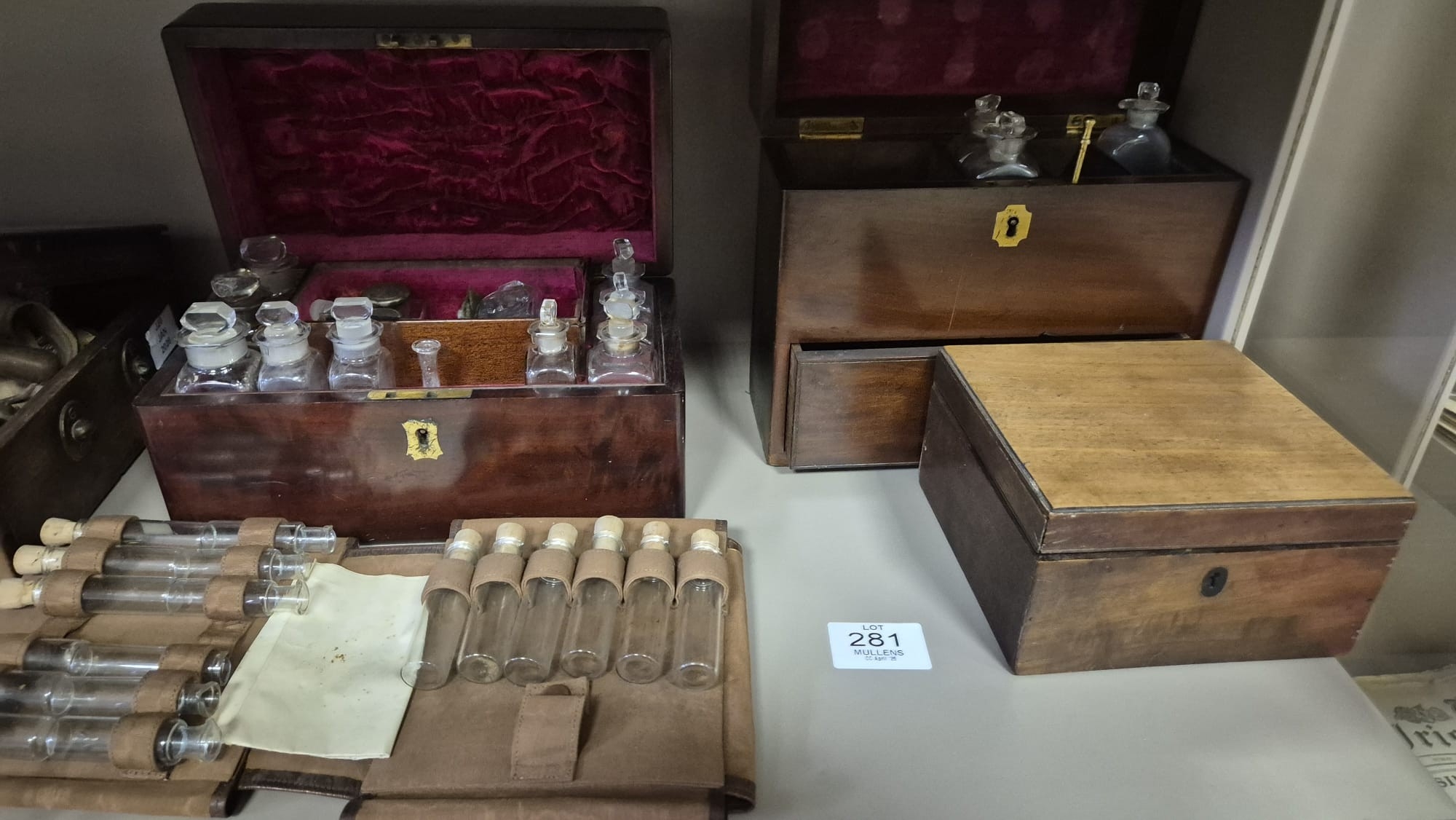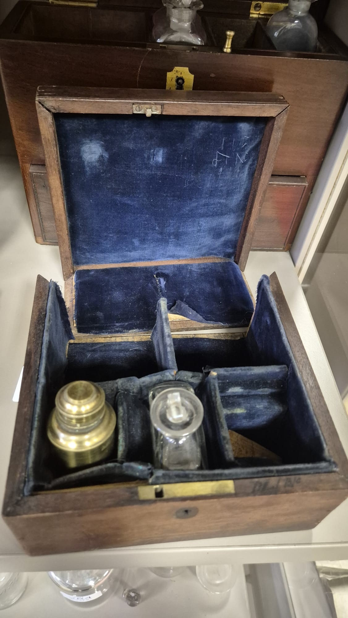 A MIXED COLLECTION OF ANTIQUE MEDICAL AND APOTHECARY JARS, BOTTLES AND CASED SETS partially complete