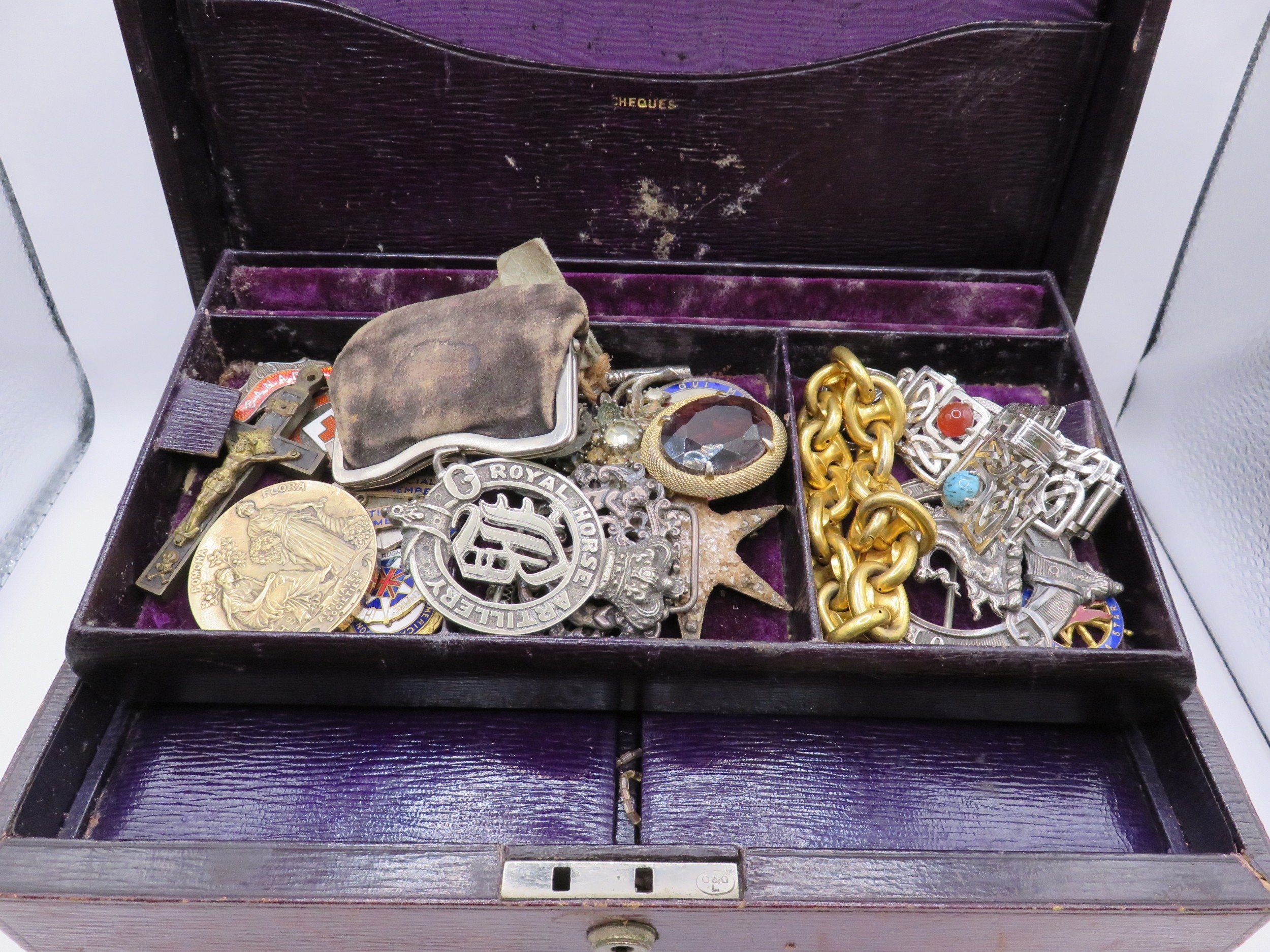 Miscellaneous items of Victorian and later costume jewellery to include gold plated anchor link bracelet, pair of gold plated cufflinks etc.