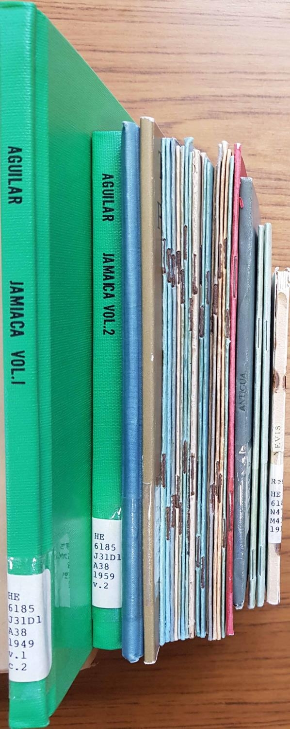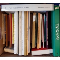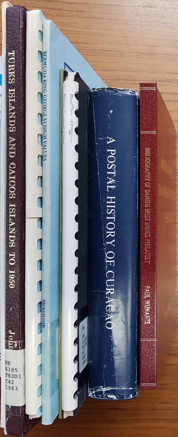 BRITISH WEST INDIES: Two boxes containing a selection of 35 books and journals. Noted: Jamaica by Aguilar (Vols 1 & 2), A Postal History of Curacao by Julsen & Benders, Turks & Caicos to 1950 by Challis. (35) Cross Reference: JAMAICA, TURKS AND CAICOS