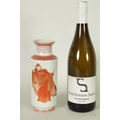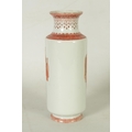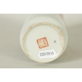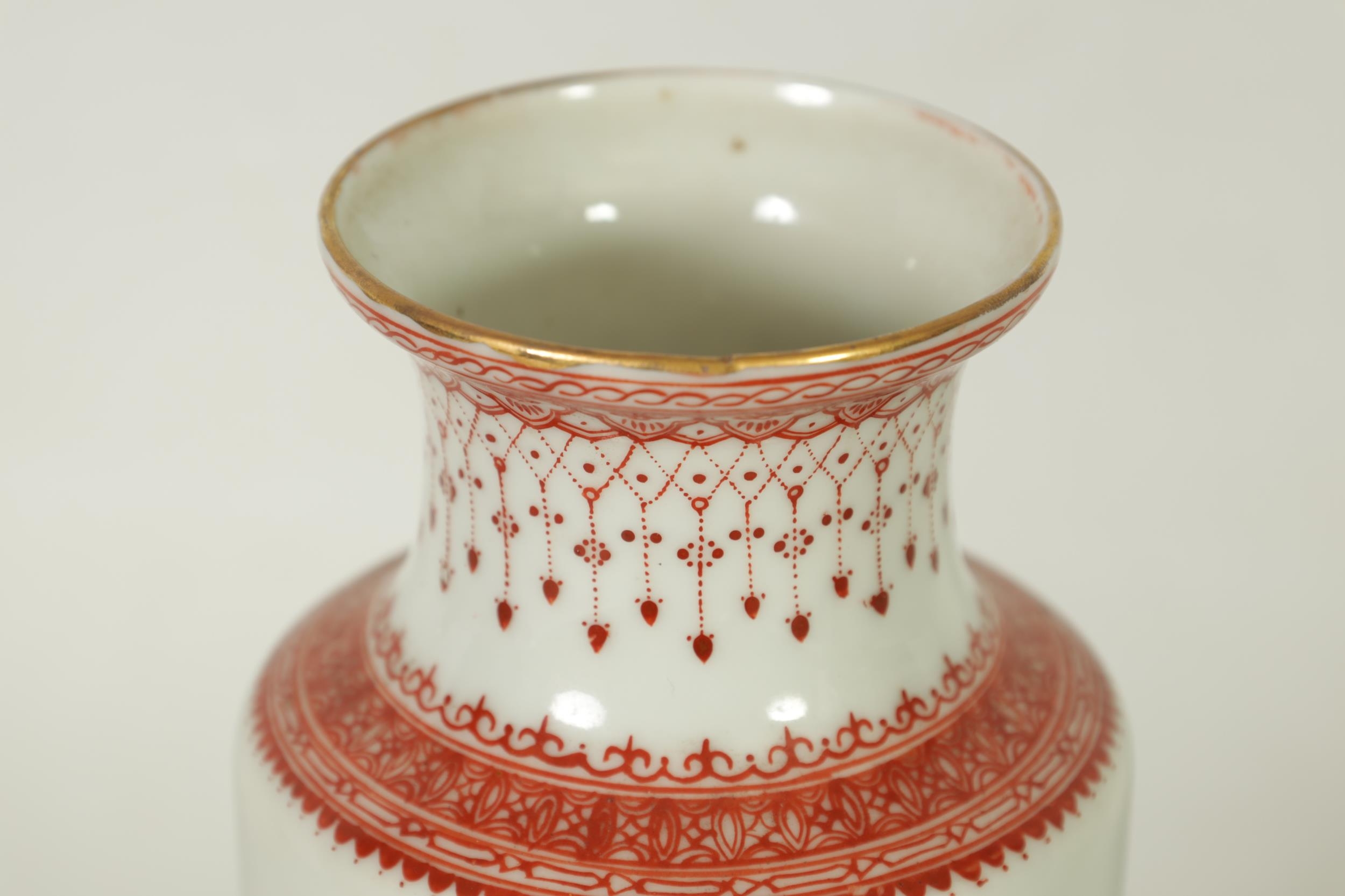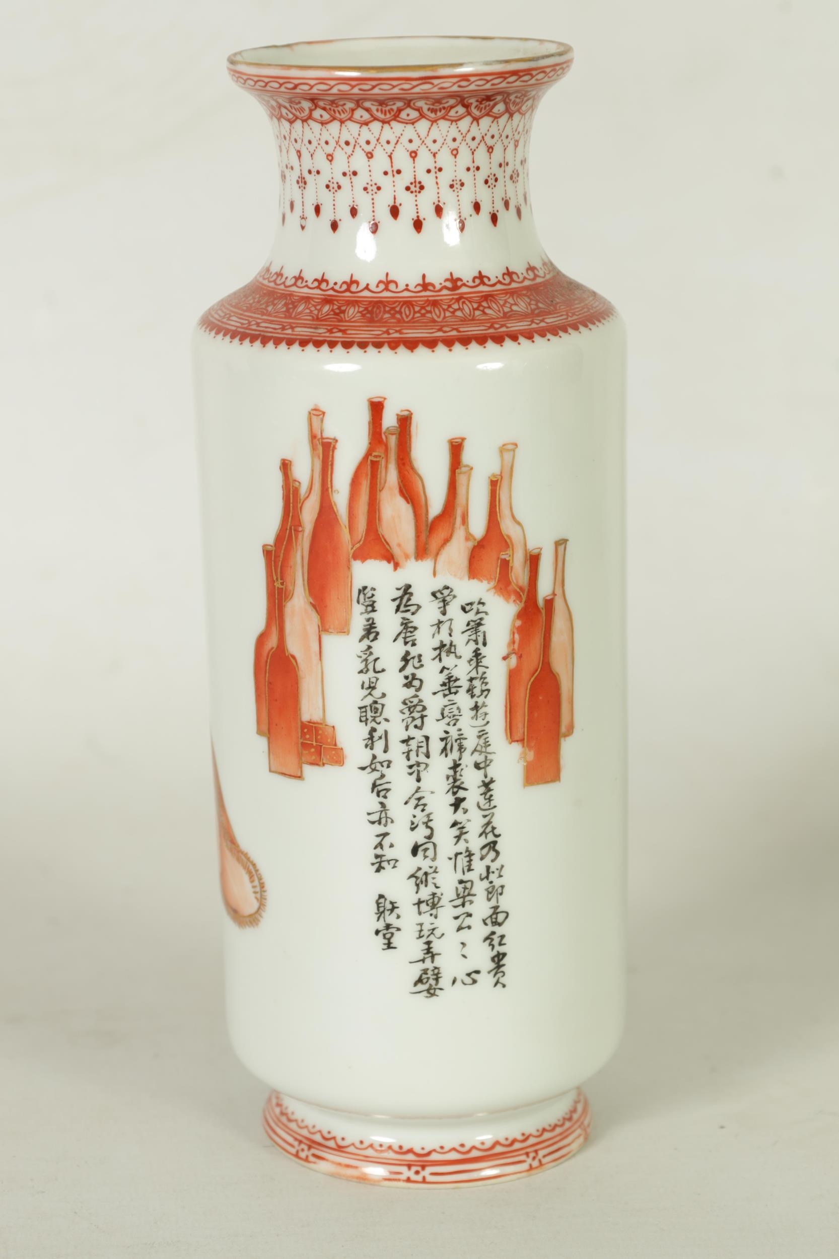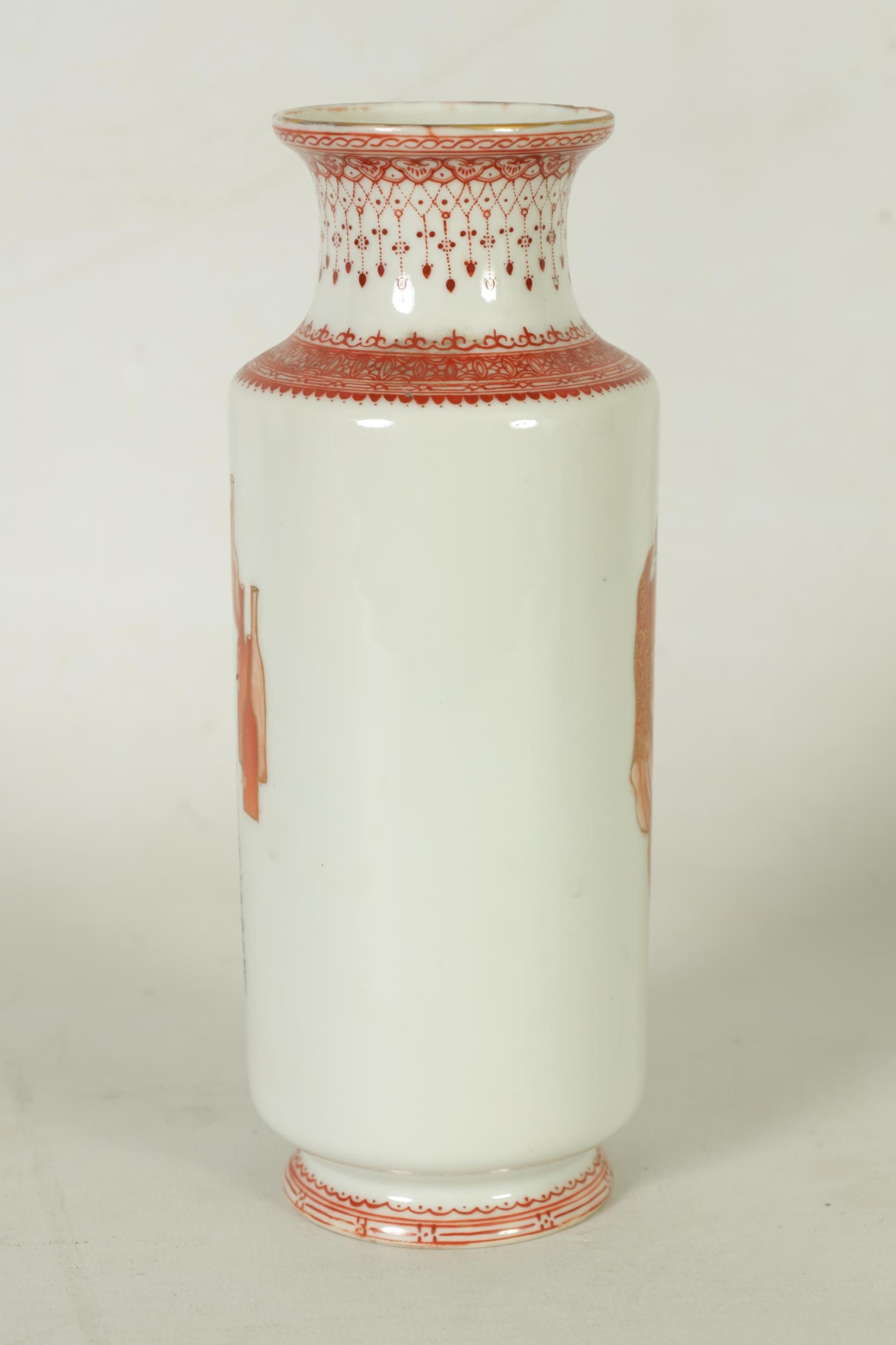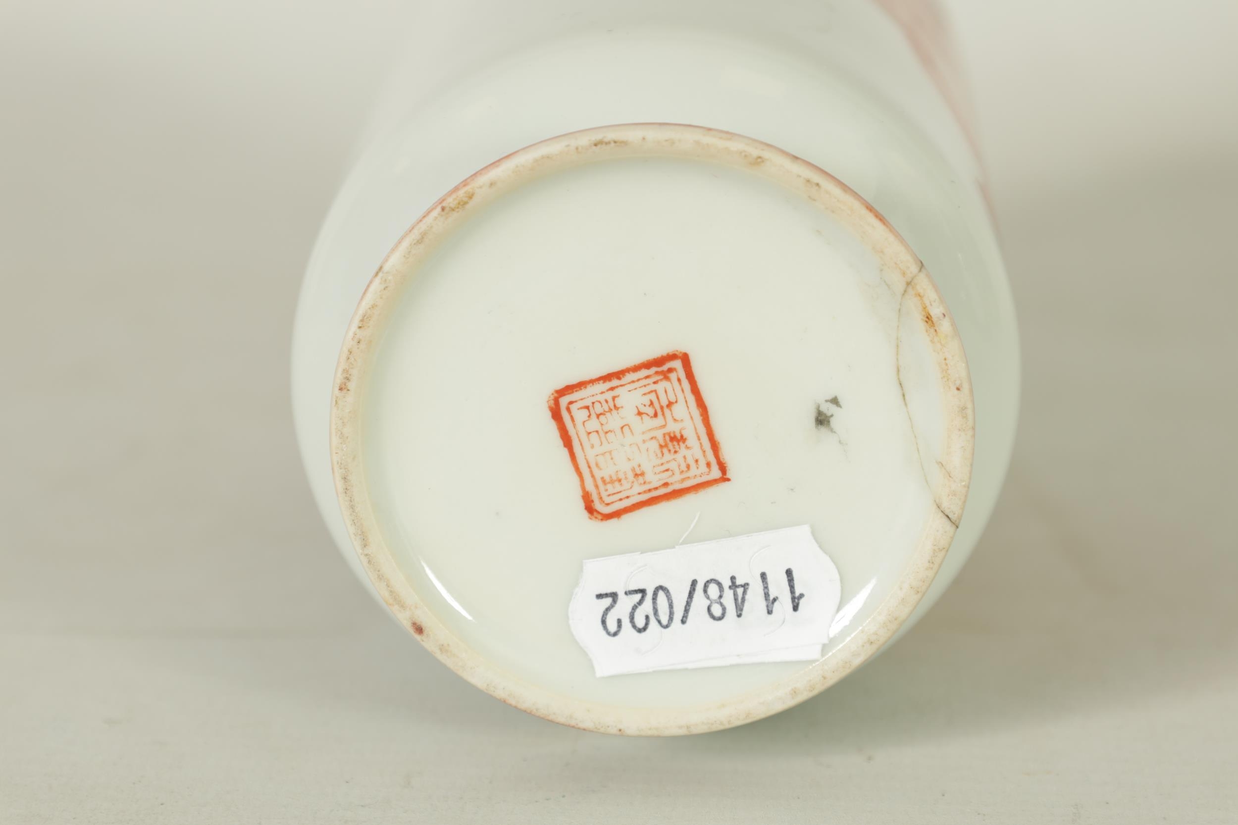 A CHINESE REPUBLIC PORCELAIN VASE with rust red and gilt work figural decoration, inscribed script to the reverse - square seal mark beneath (19cm high )