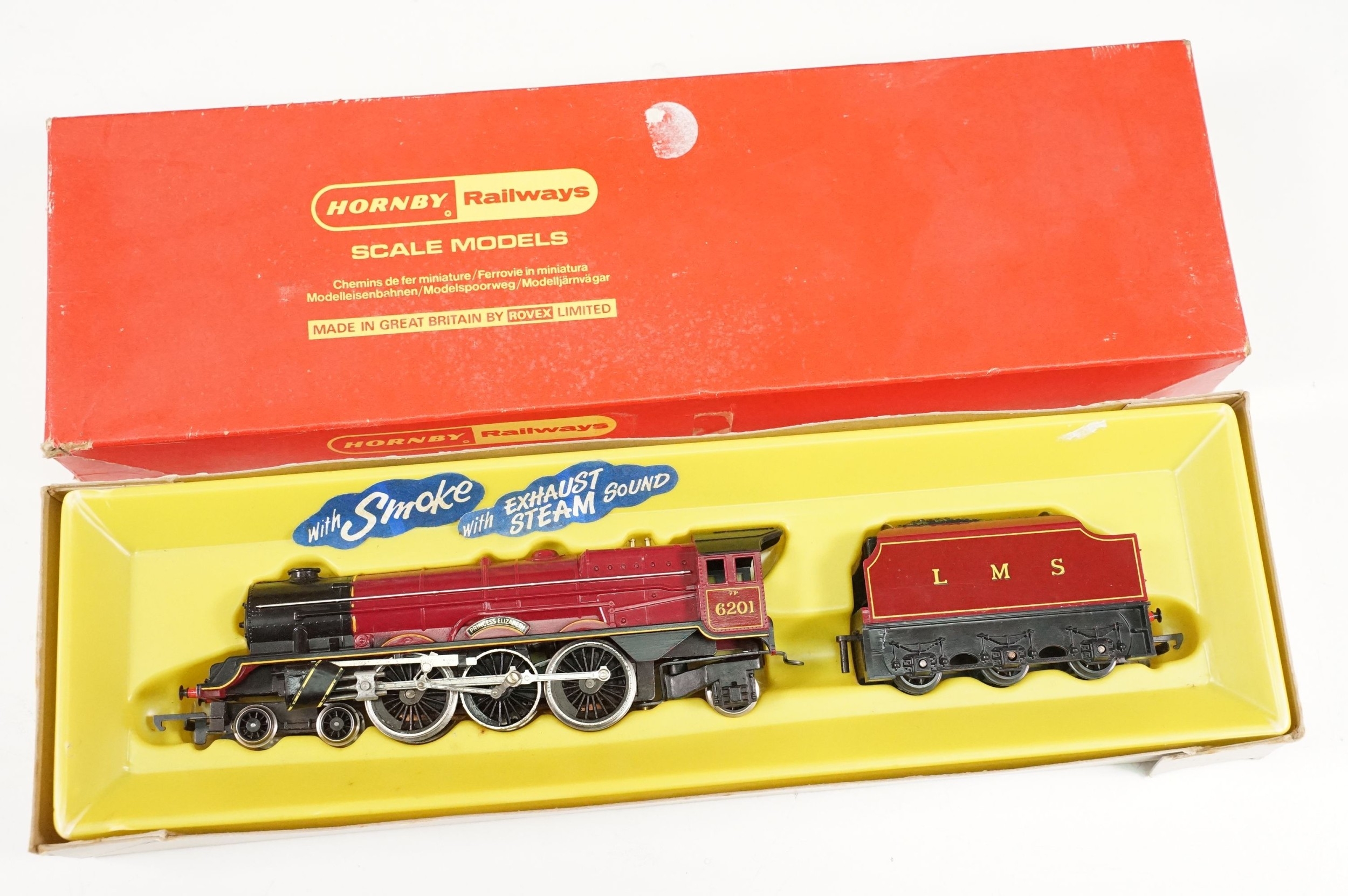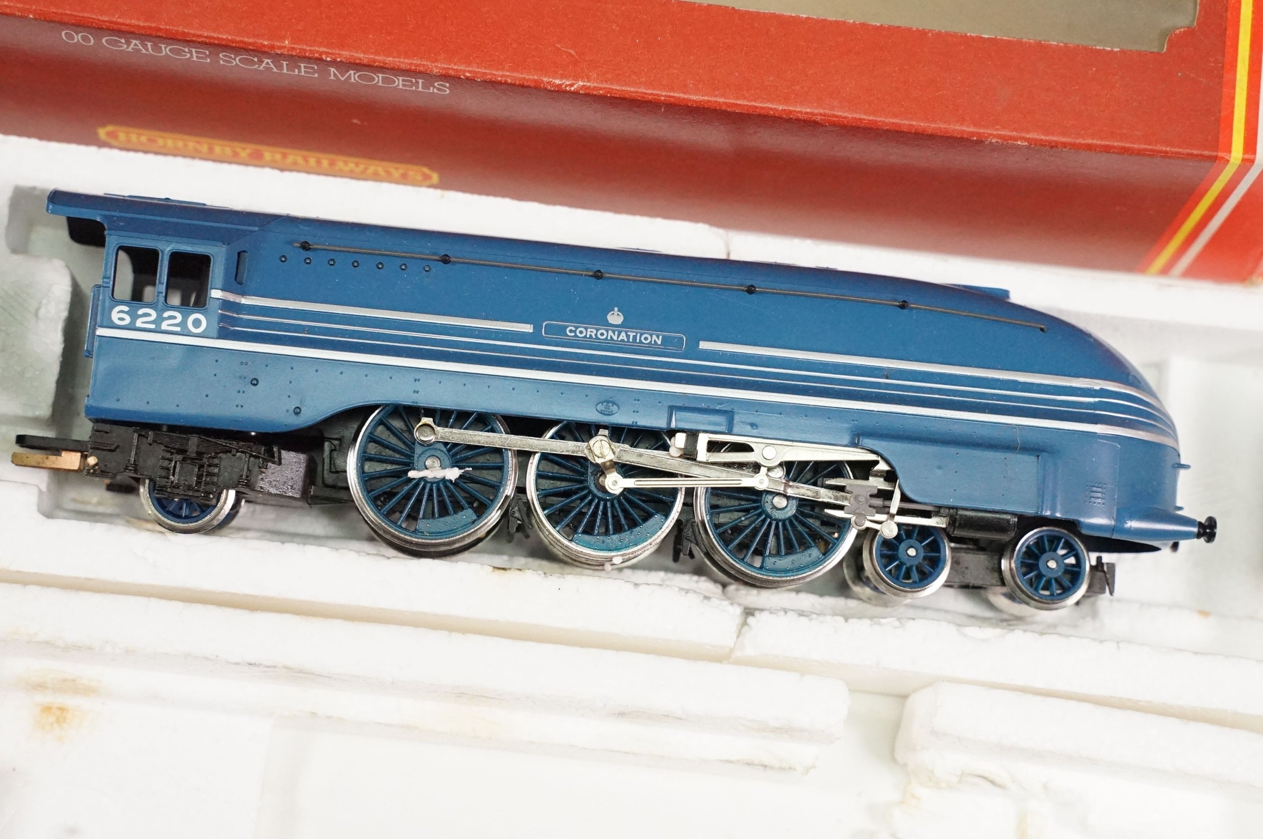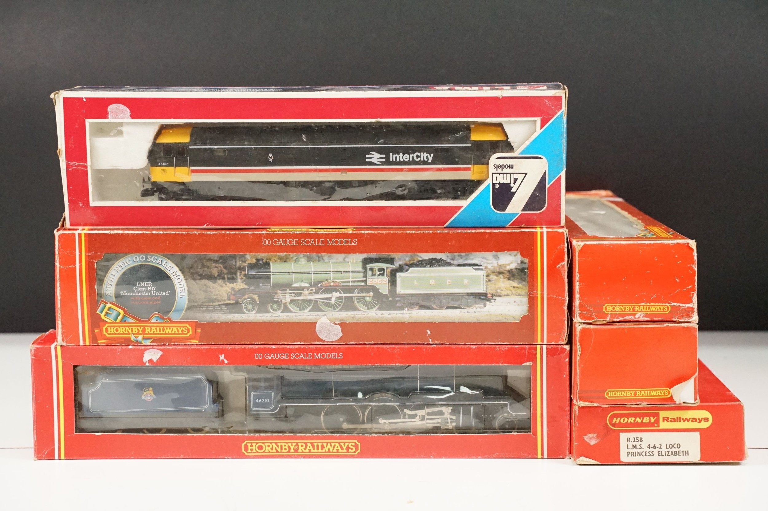 Six boxed OO gauge locomotives to include 5 x Hornby (R037 BR 4-6-2 Loco Lady Patricia, R685 LMS 4-6-2 Coronation Class 7P, R099 A4 Class Silver Fox & LNER Class B17 Manchester United and R258 LMS 4-6-2 Loco Princess Elizabeth), and Lima 205214 InterCity 47487