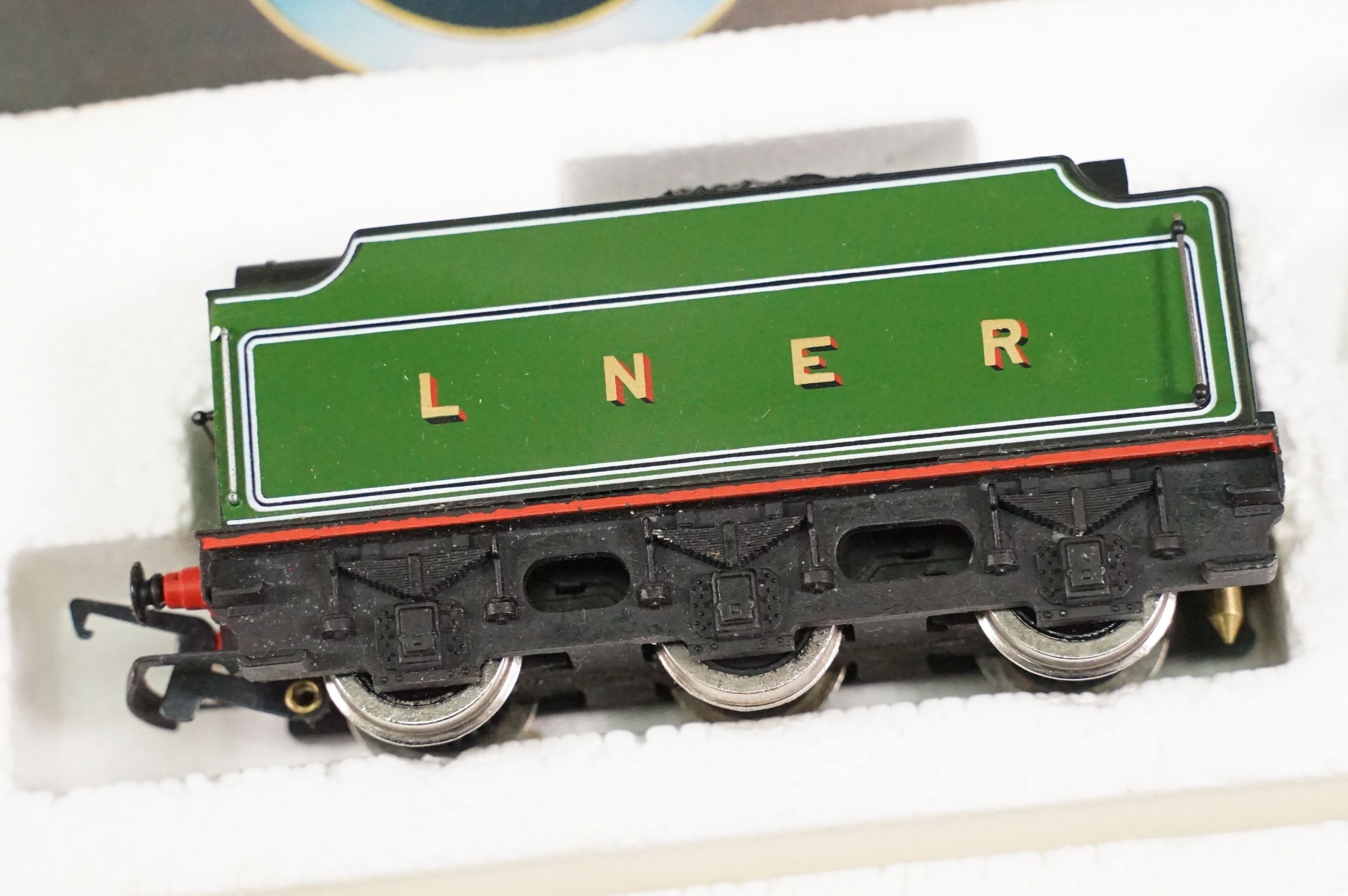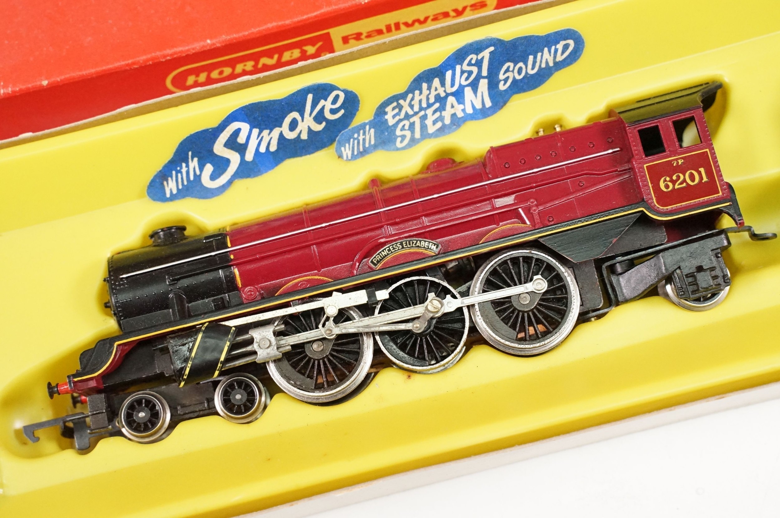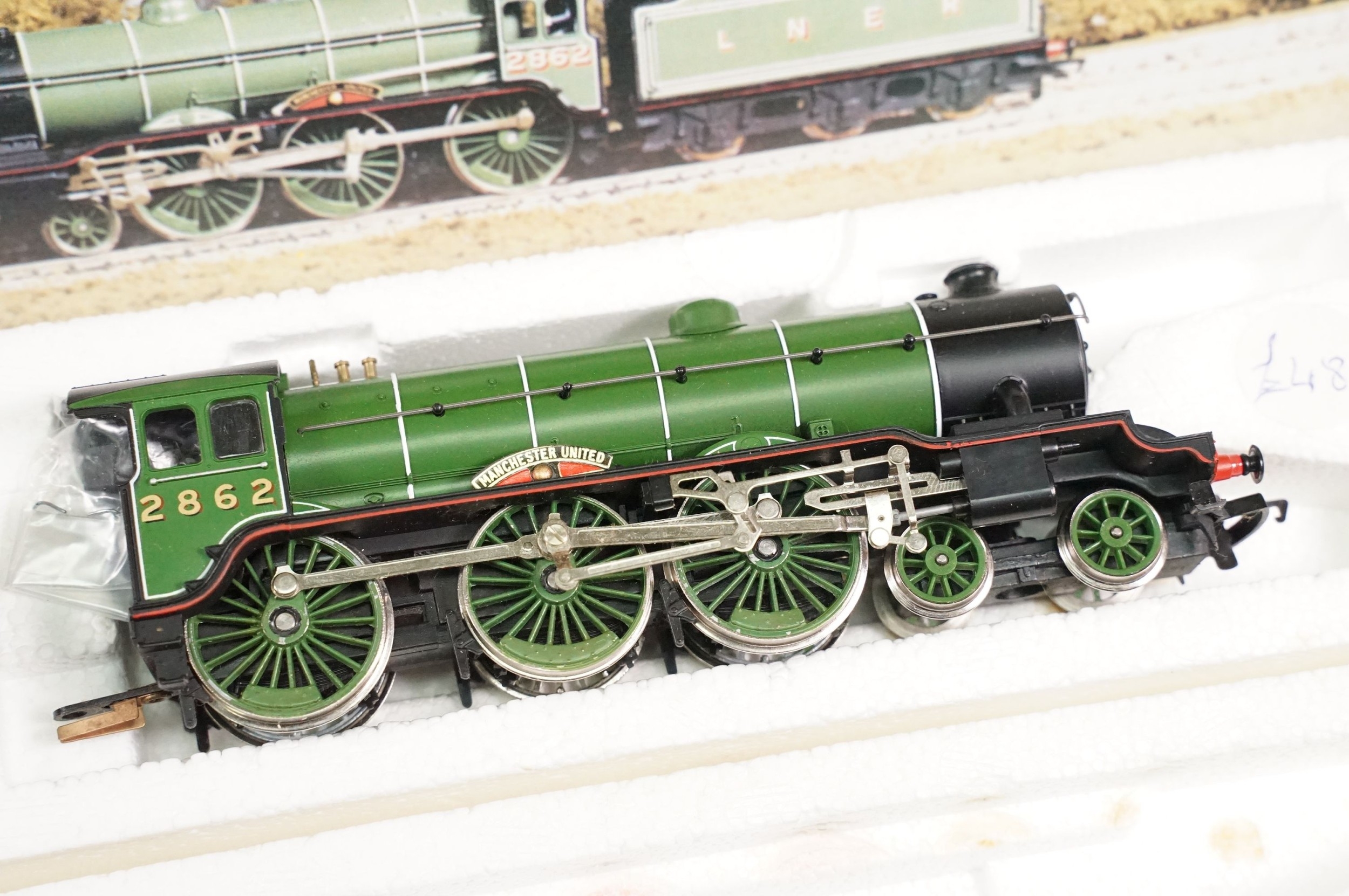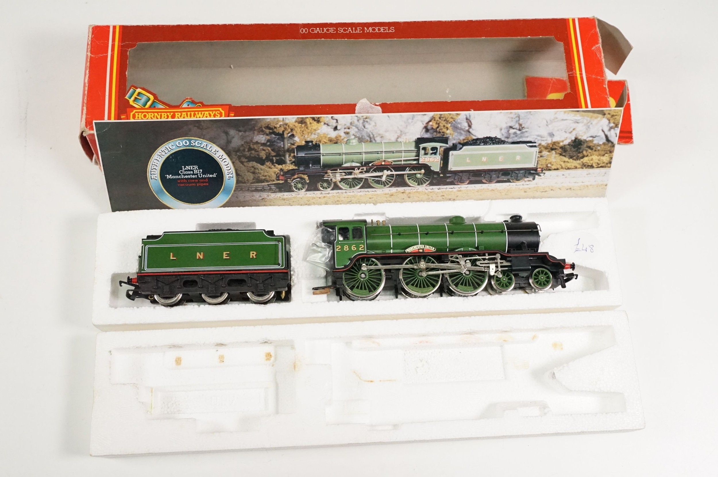 Six boxed OO gauge locomotives to include 5 x Hornby (R037 BR 4-6-2 Loco Lady Patricia, R685 LMS 4-6-2 Coronation Class 7P, R099 A4 Class Silver Fox & LNER Class B17 Manchester United and R258 LMS 4-6-2 Loco Princess Elizabeth), and Lima 205214 InterCity 47487