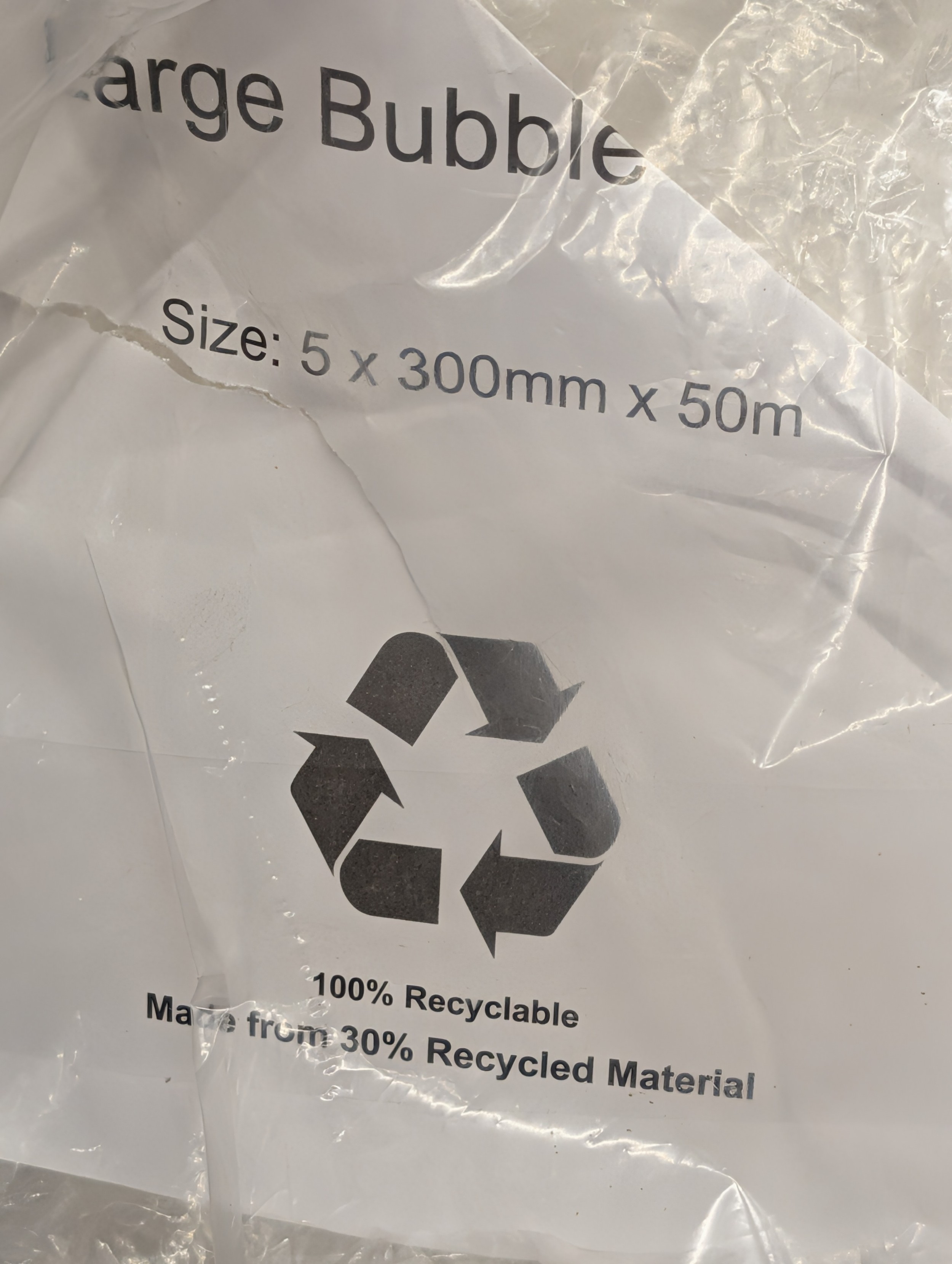 1 x 50 metre Large roll of 300 mm wide clear large bubble packing wrap - 100% Recyclable & made from 30% recycled material