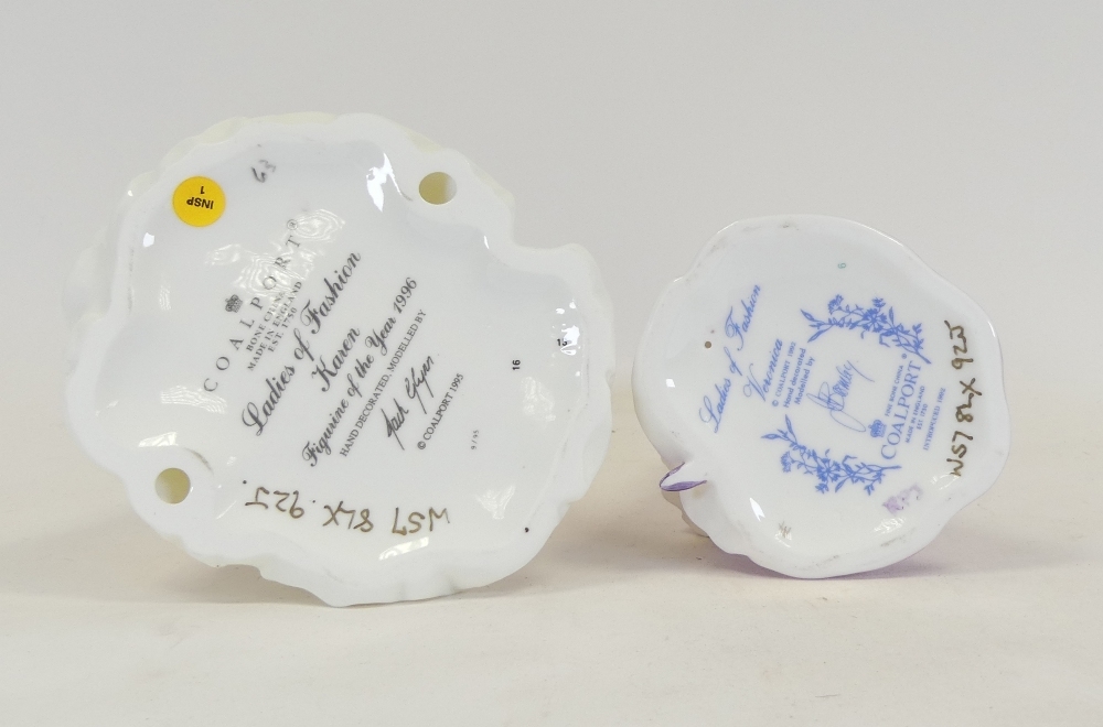 Coalport Ladies of Fashion Figurines to include:- Veronica, Karen (with certificate), Tallest:-22cm (2) Boxed