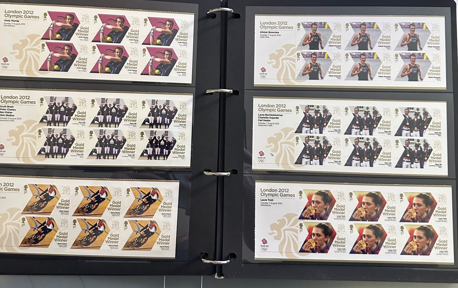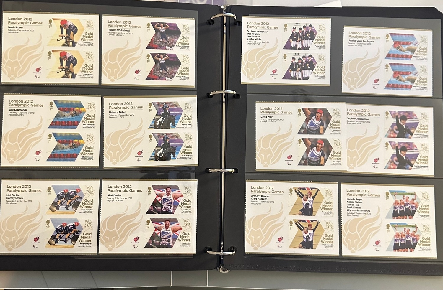 Face value £400+, useable mint um useable self adhesive 1st class (242) Royal Mail 2012 Olympics and Paralympic stamps complete sets in binder
