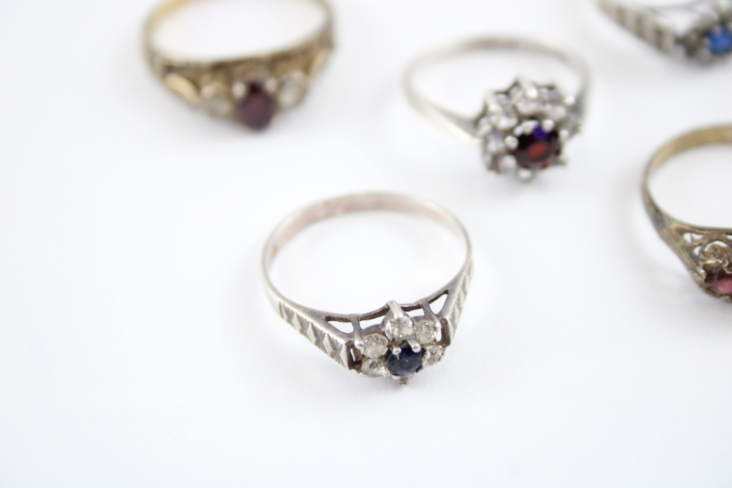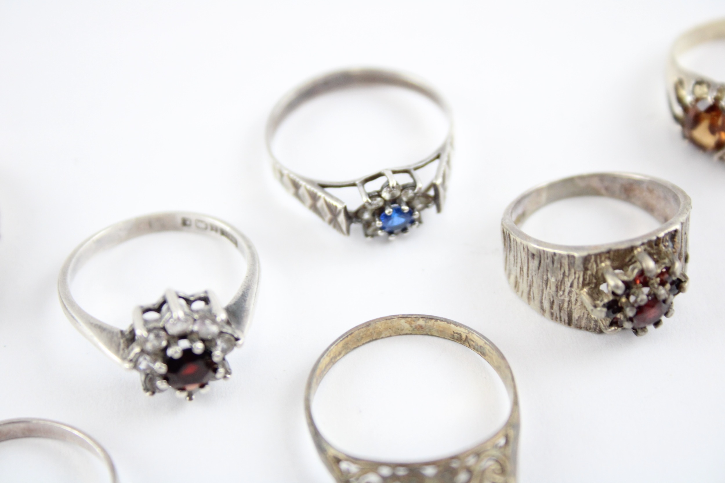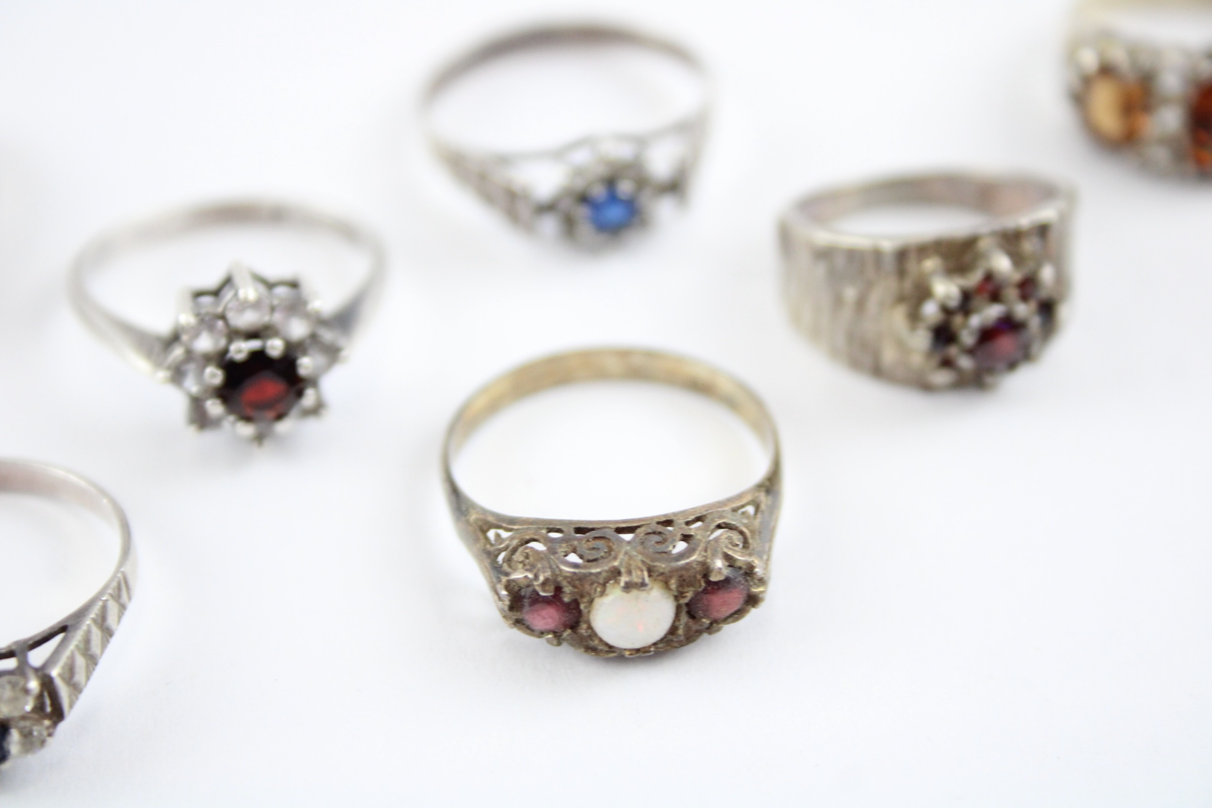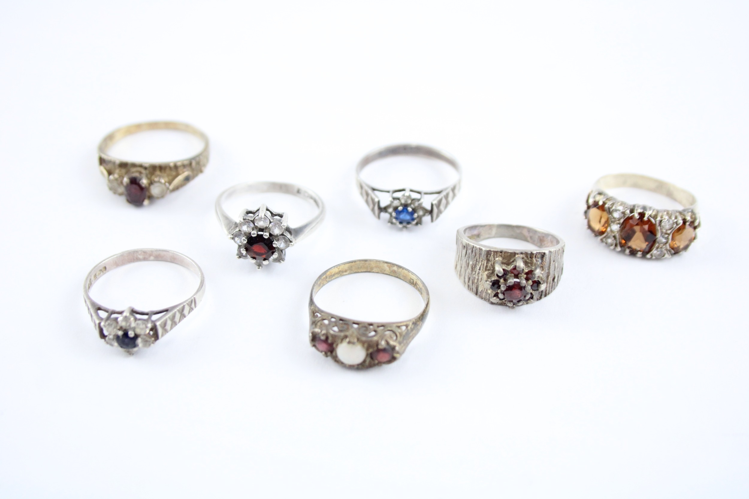 Collection of Sterling Silver Rings, inc. Mid Century, Opal, Garnet x 7 (22g)