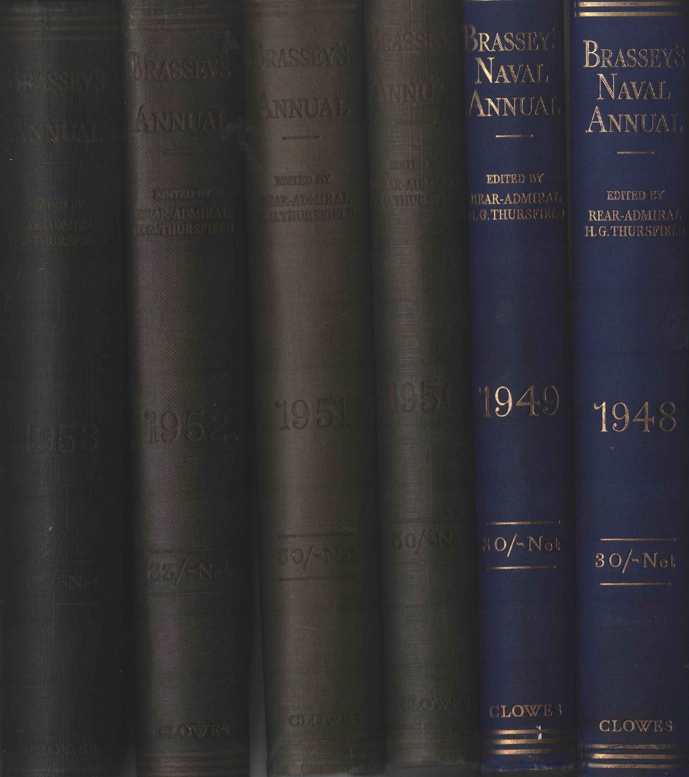 Brassey's Naval Annual Hardback Books Collection 6, 1948,1949,1950,1951,1952,1953. Edited by Rear-Admiral H.G. Thursfield. Publisher: Clowes.