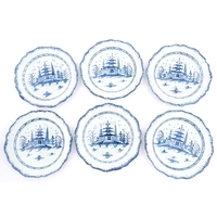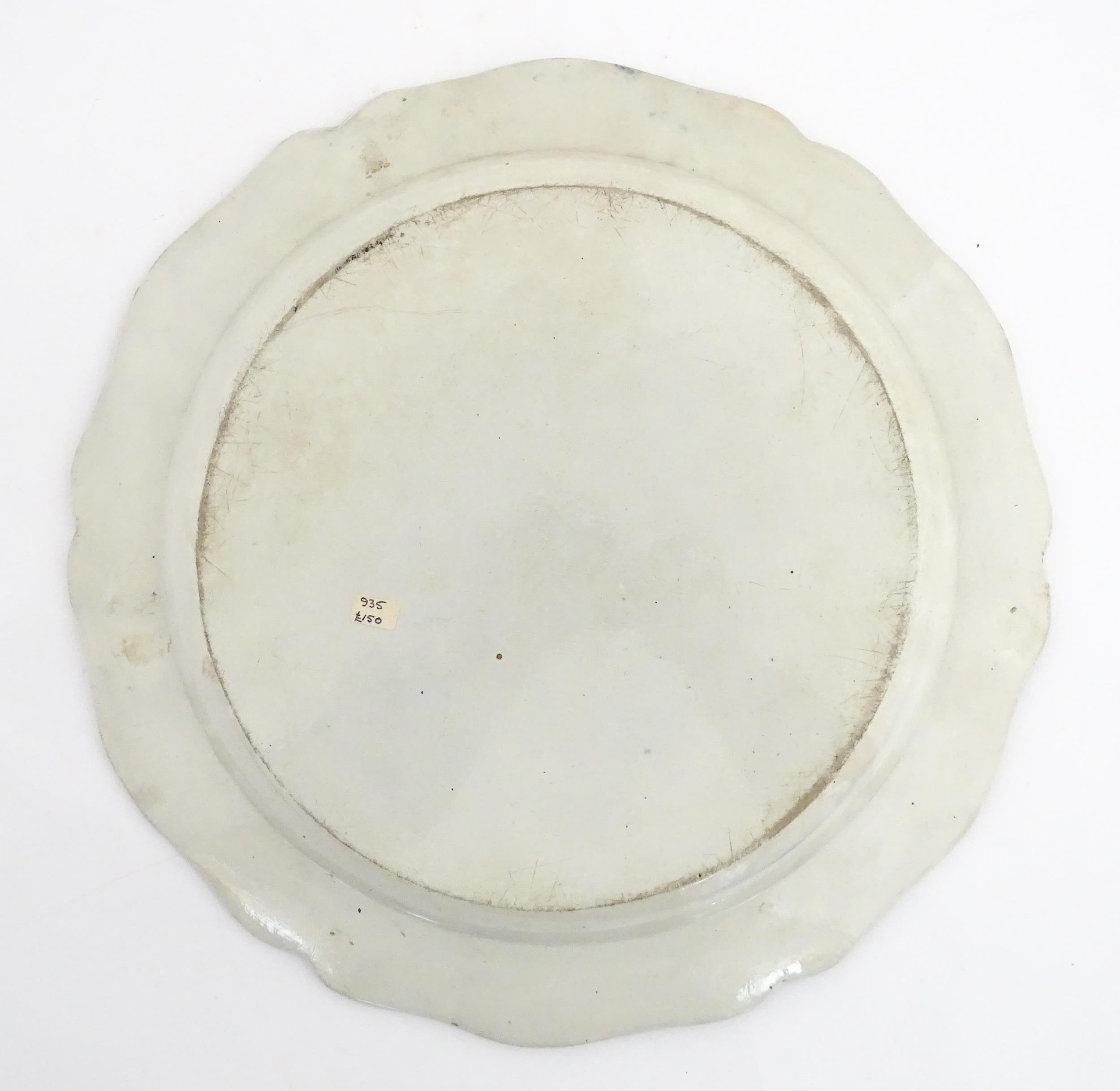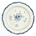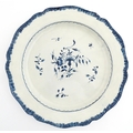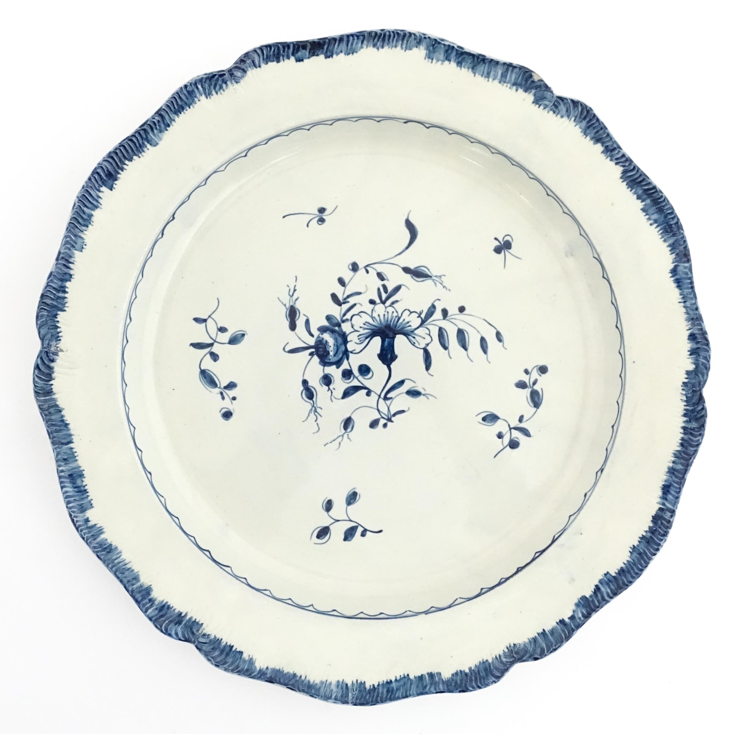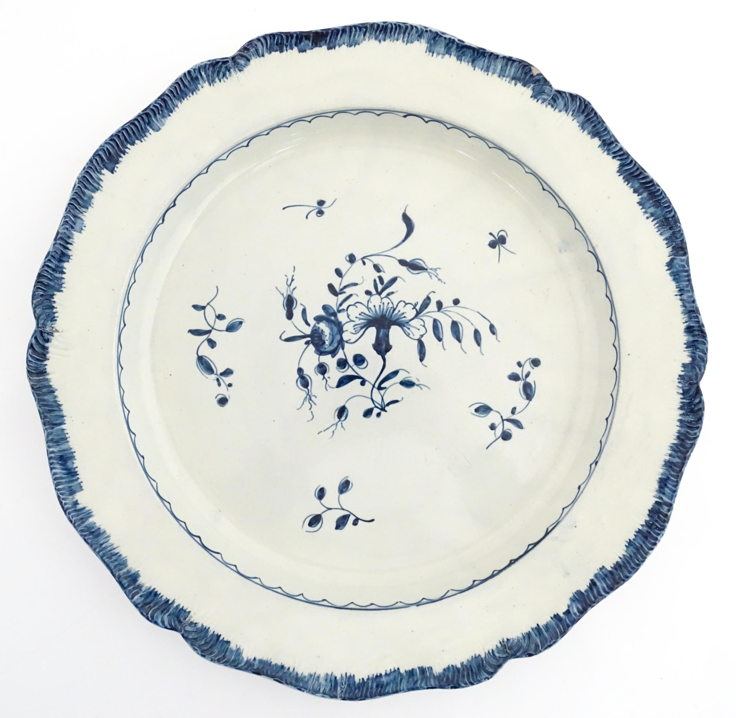 A blue and white pearlware feathered edge charger with floral and foliate brushwork detail. Approx. 14 1/4" wide