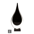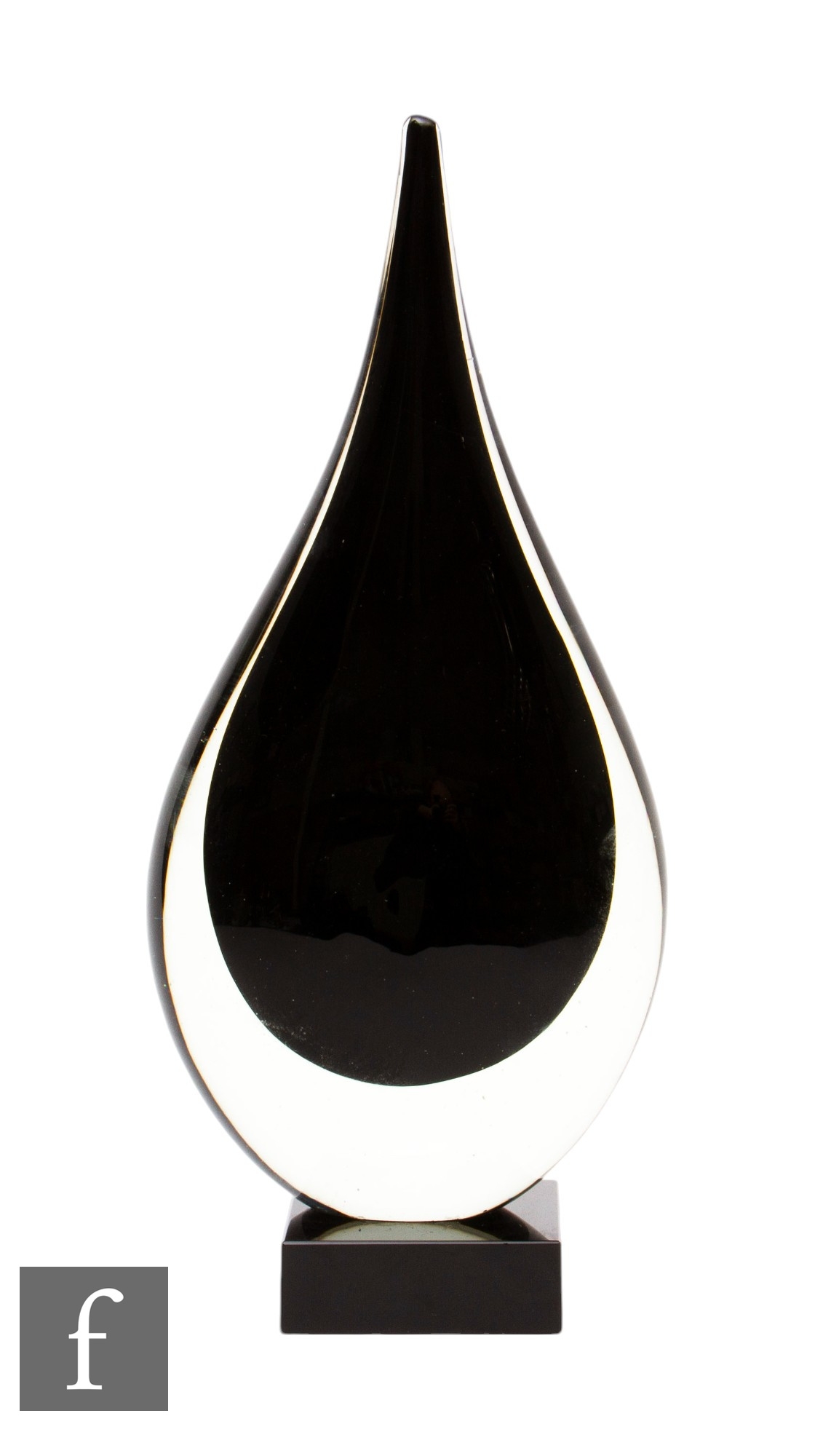 Unattributed maker - A contemporary glass sculpture of teardrop form, the black core cased in clear and raised to a square base, height 33cm.