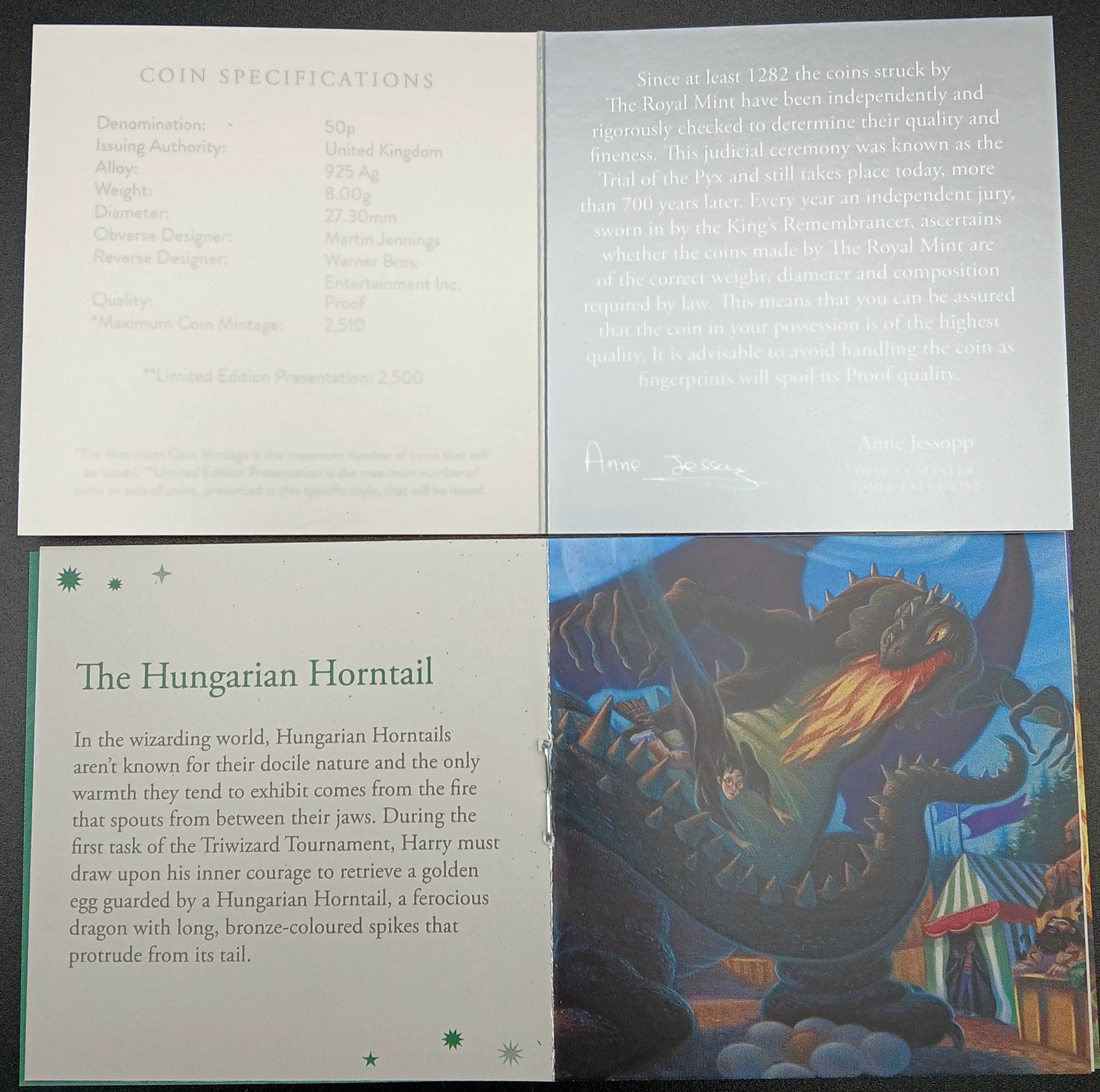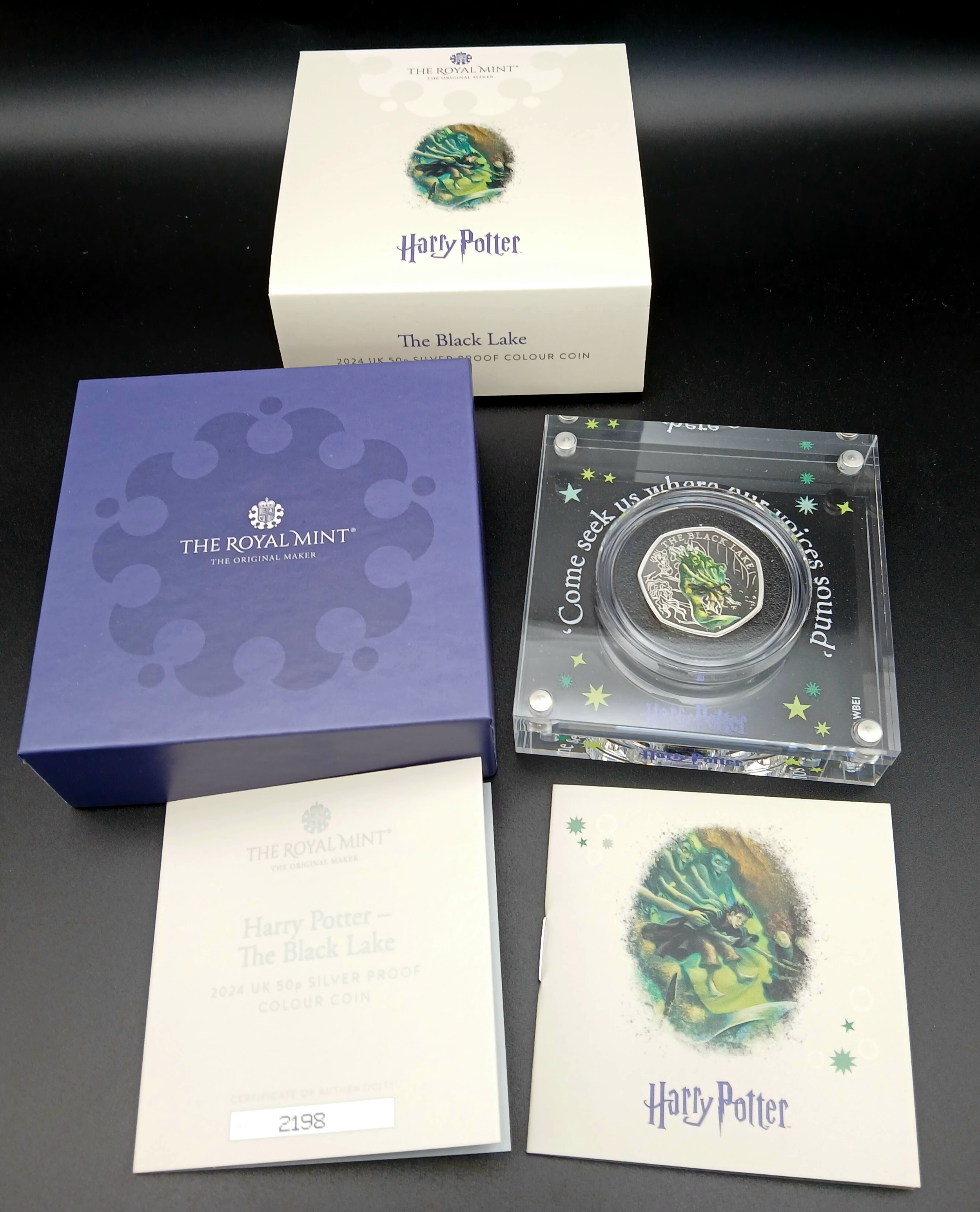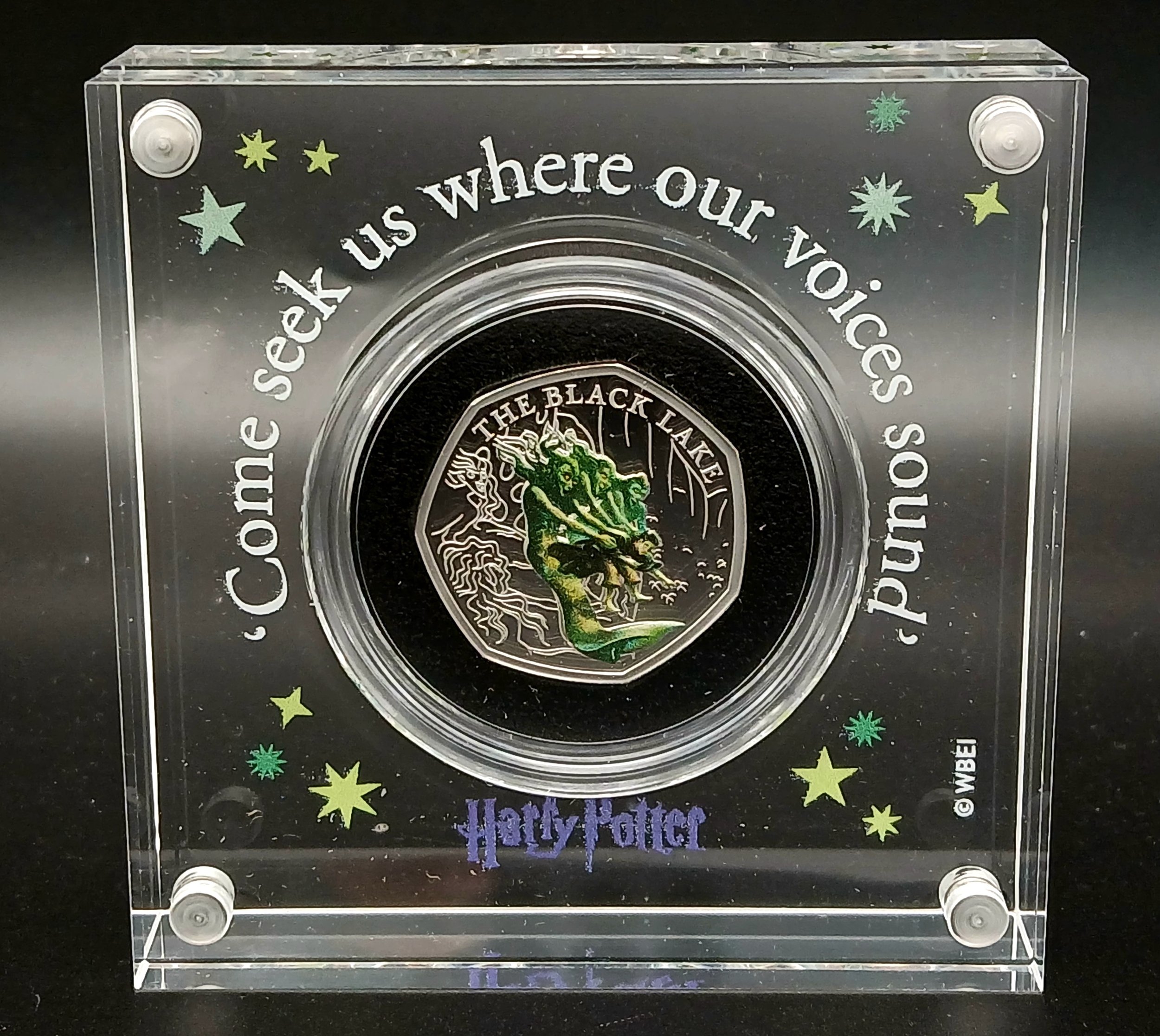 A Royal Mint Harry Potter - The Black Lake. Limited Edition Sterling Silver Proof 50p Coin. Encapsulated with case and COA.