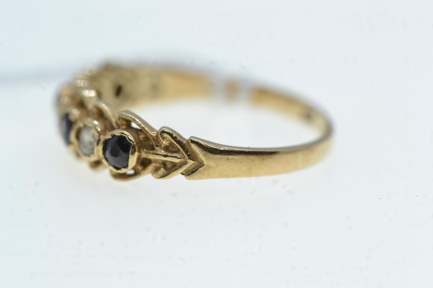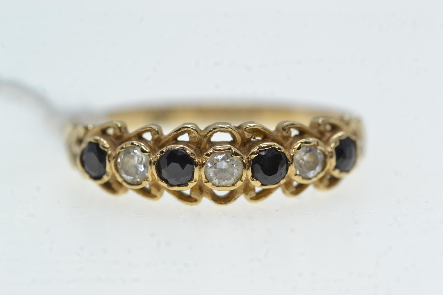 9ct gold, sapphire & CZ ring, size Q, 1.88 grams