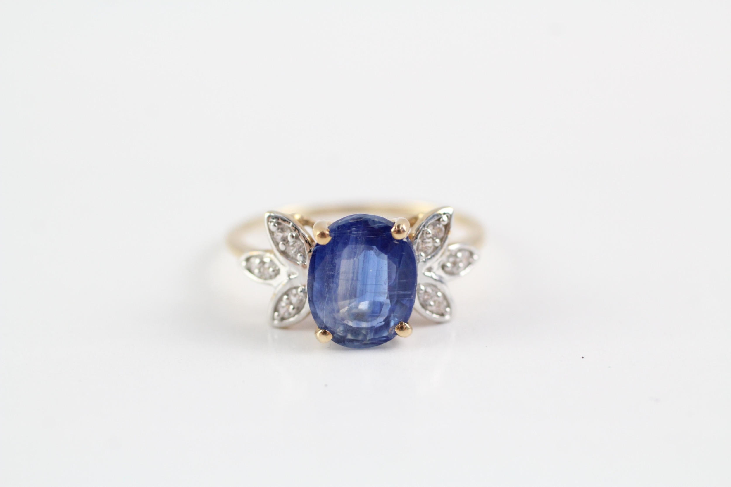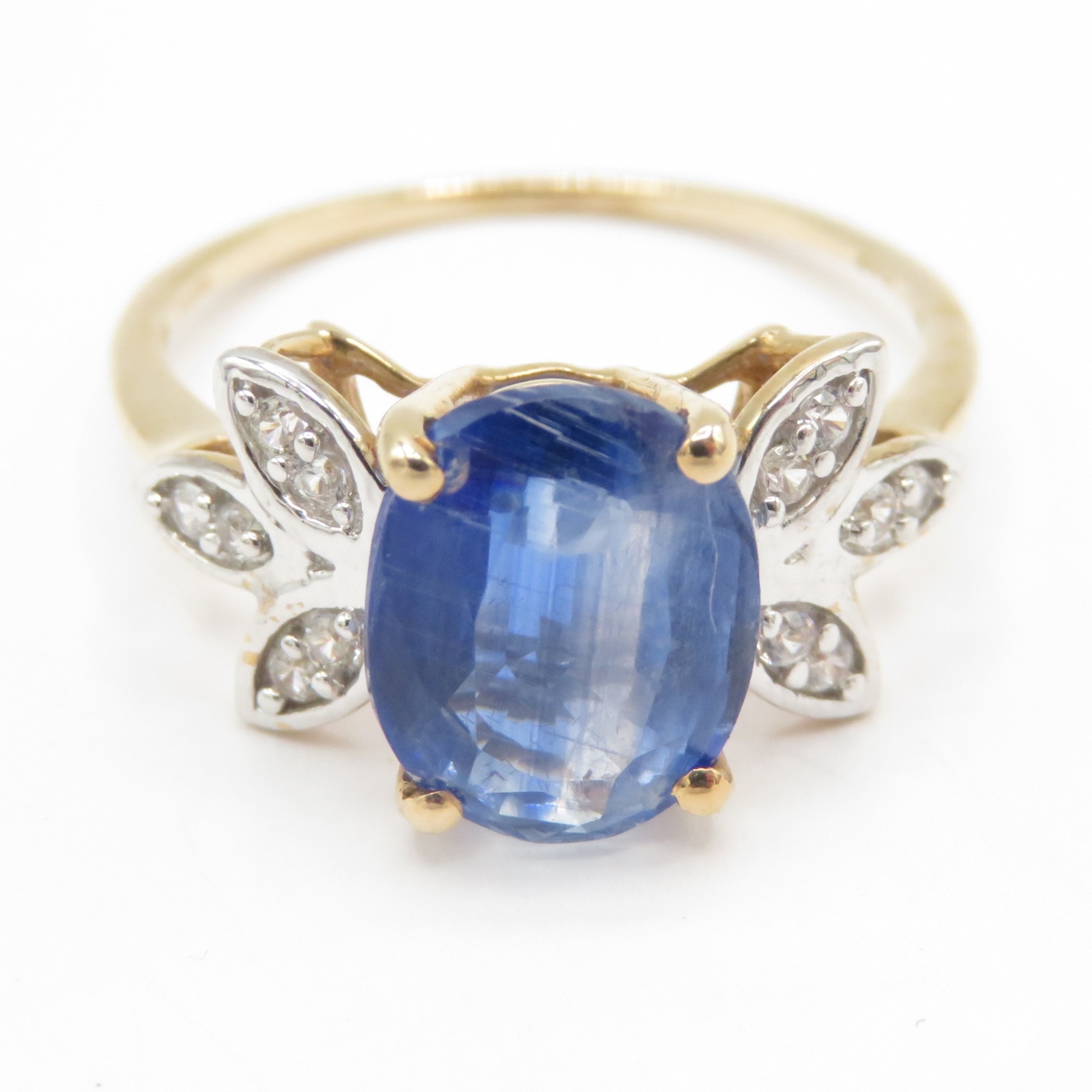 9ct gold sapphire and diamond dress ring (2.5g) Size P 1/2