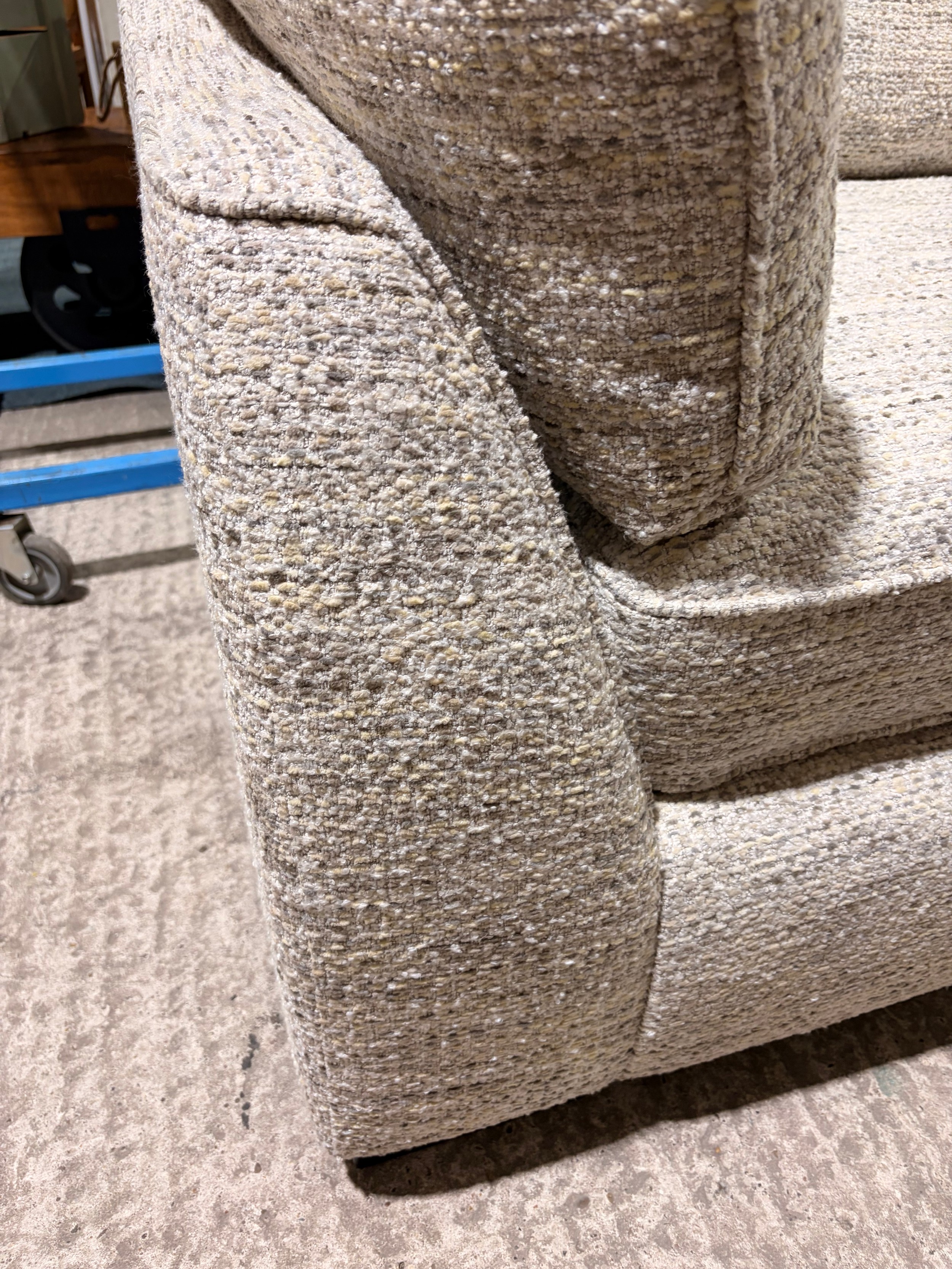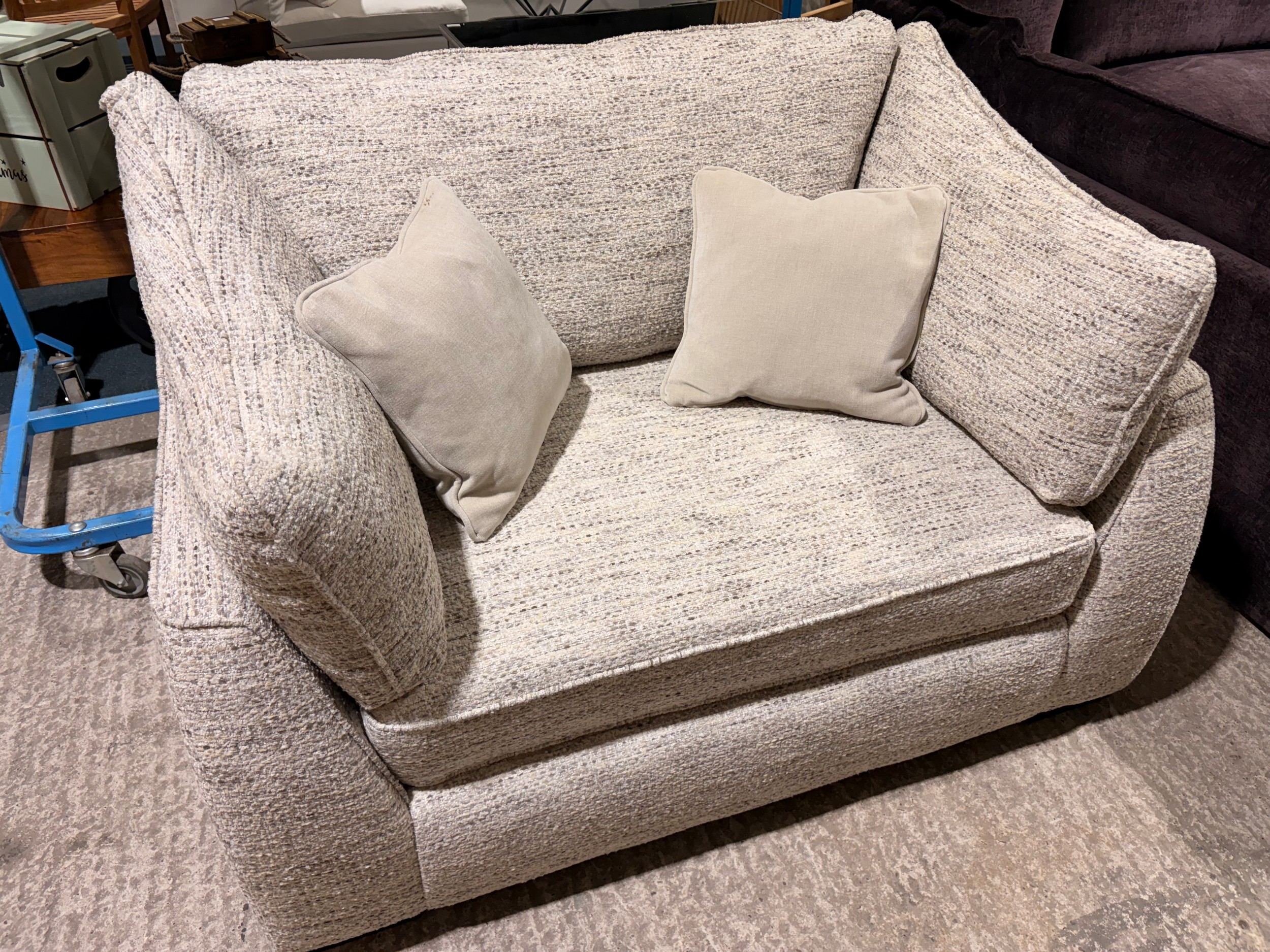 A beige fleck love seat