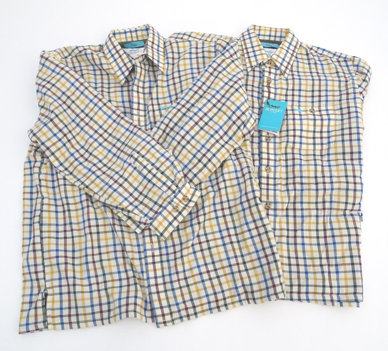 Two Bonart checked shirts, one 32cm, the other 30cm (2)