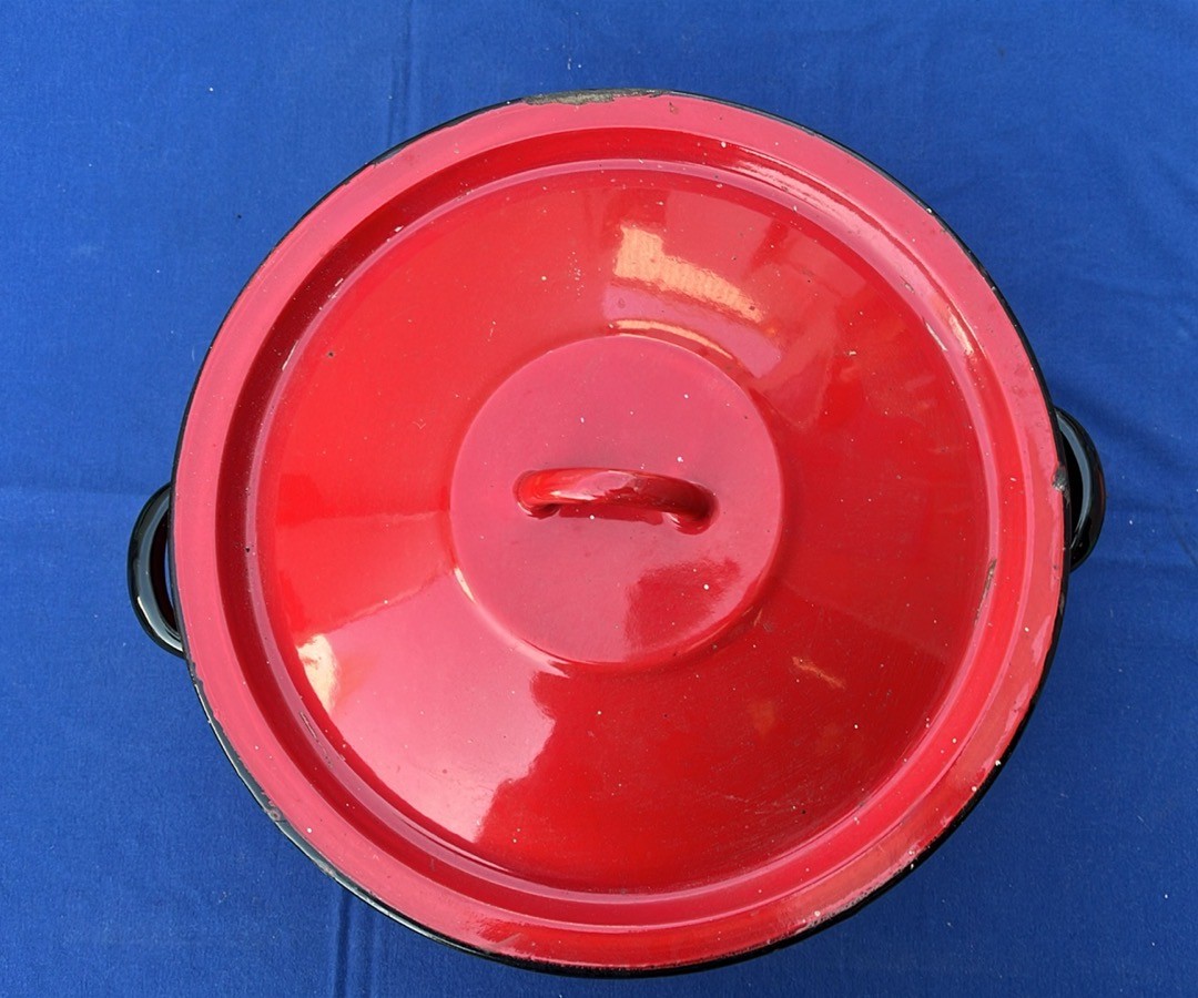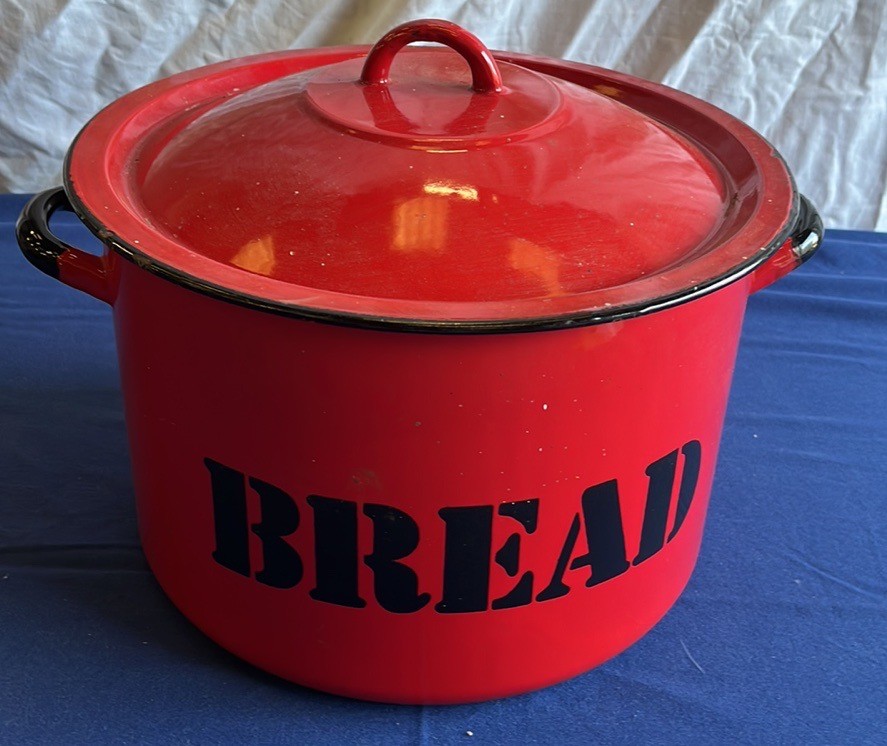 LARGE RED ENAMAL BREAD BIN