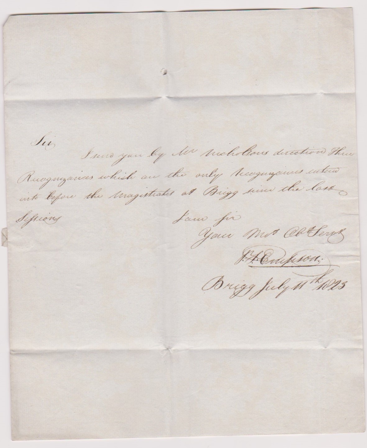 Great Britain 1823-EL dates 11th July 1823 Brigg posted to Spilsby-black 2 line Brigg 158 cancel