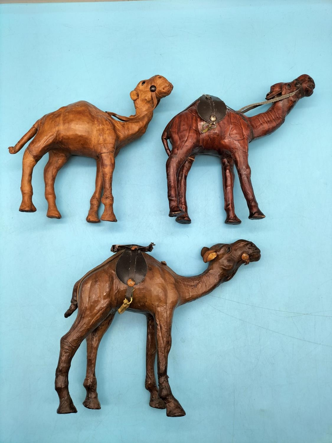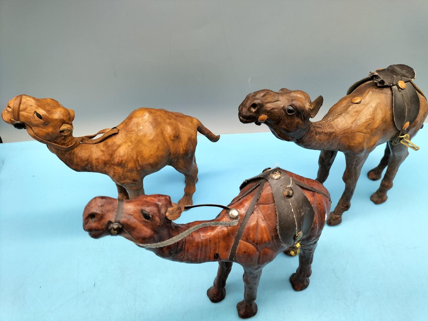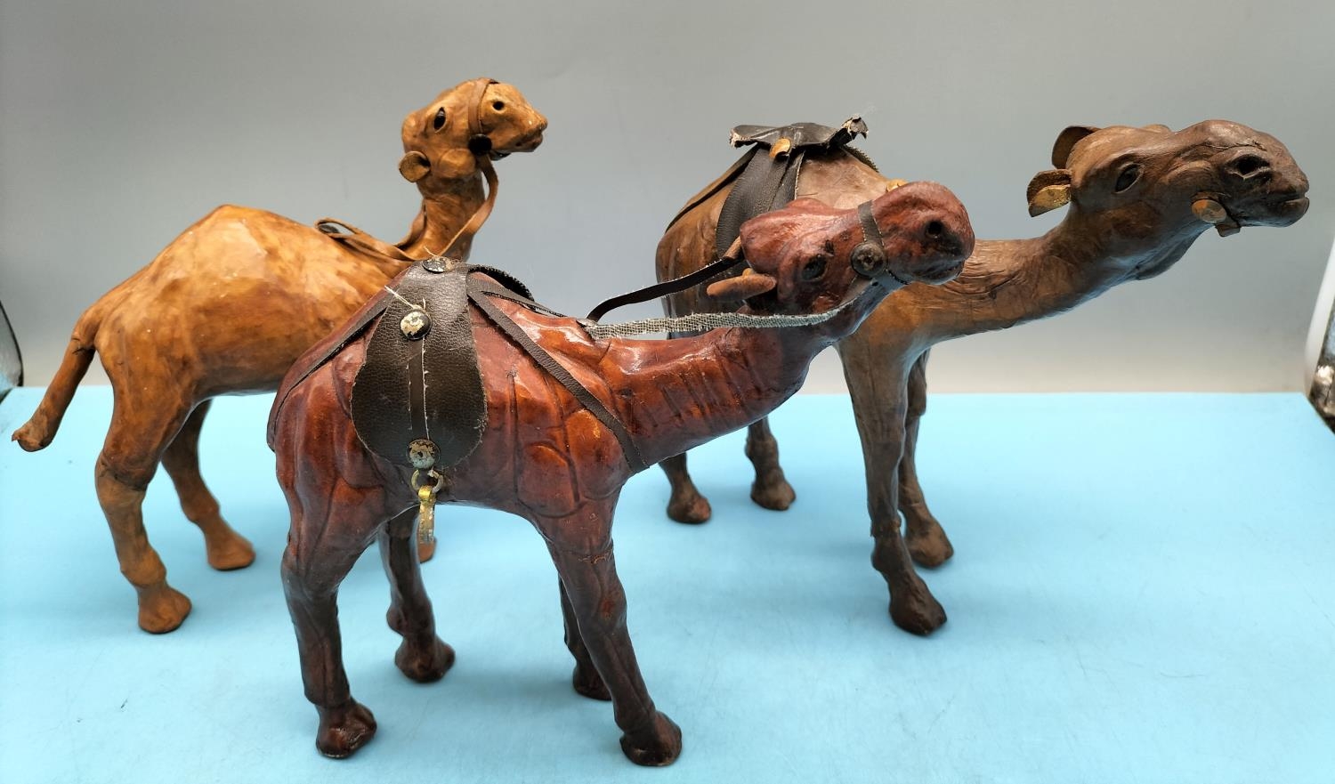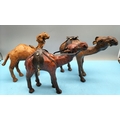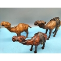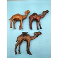 3 x Leather Camels. Largest 18cm High x 23cm.