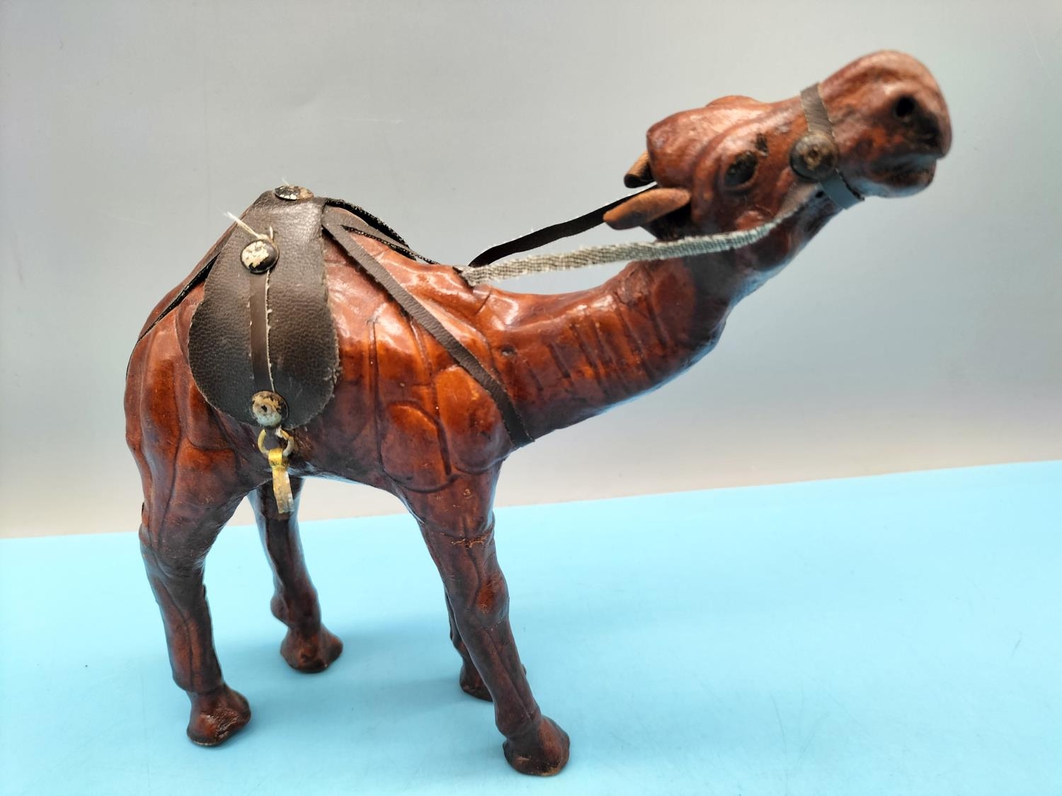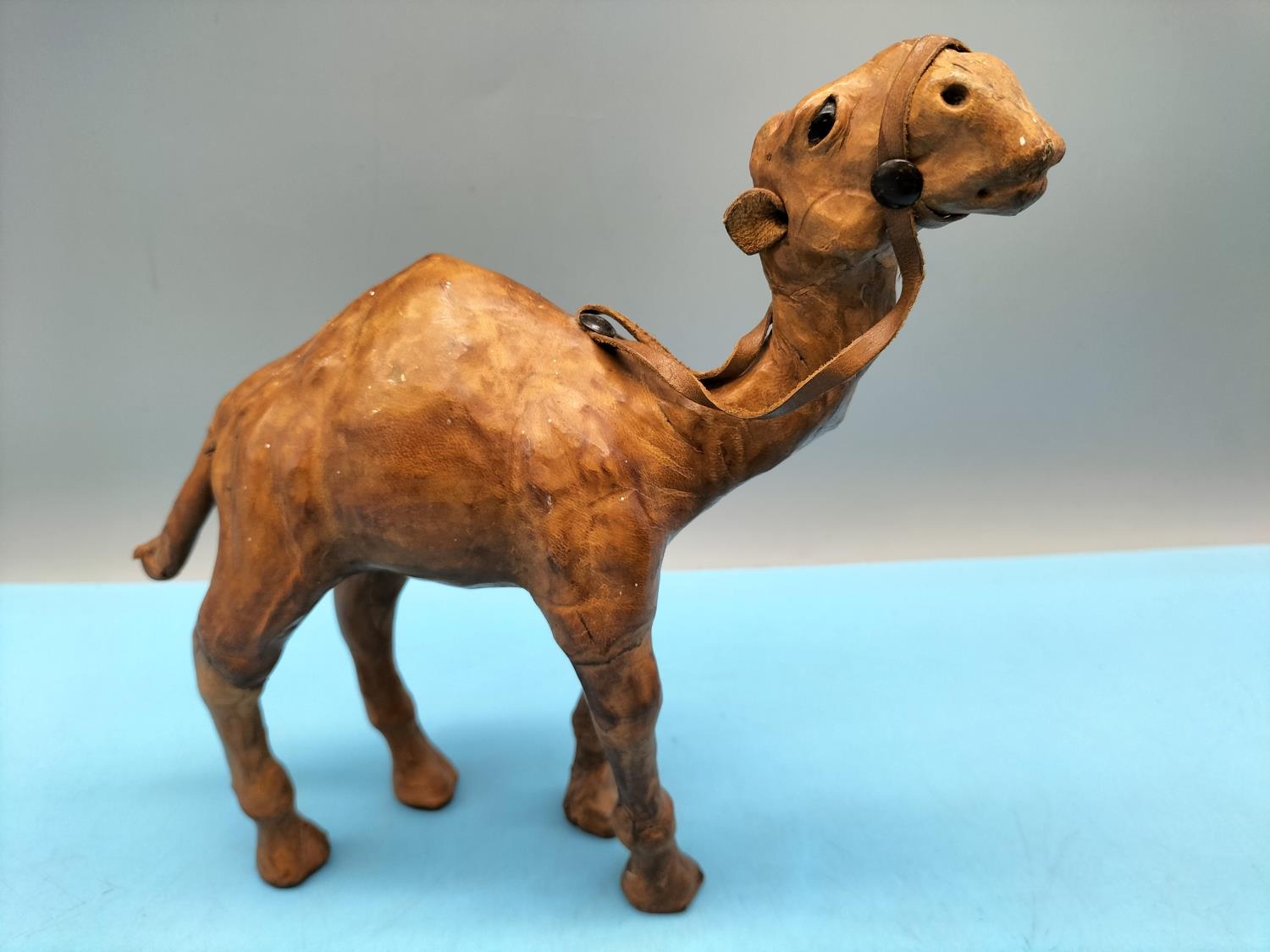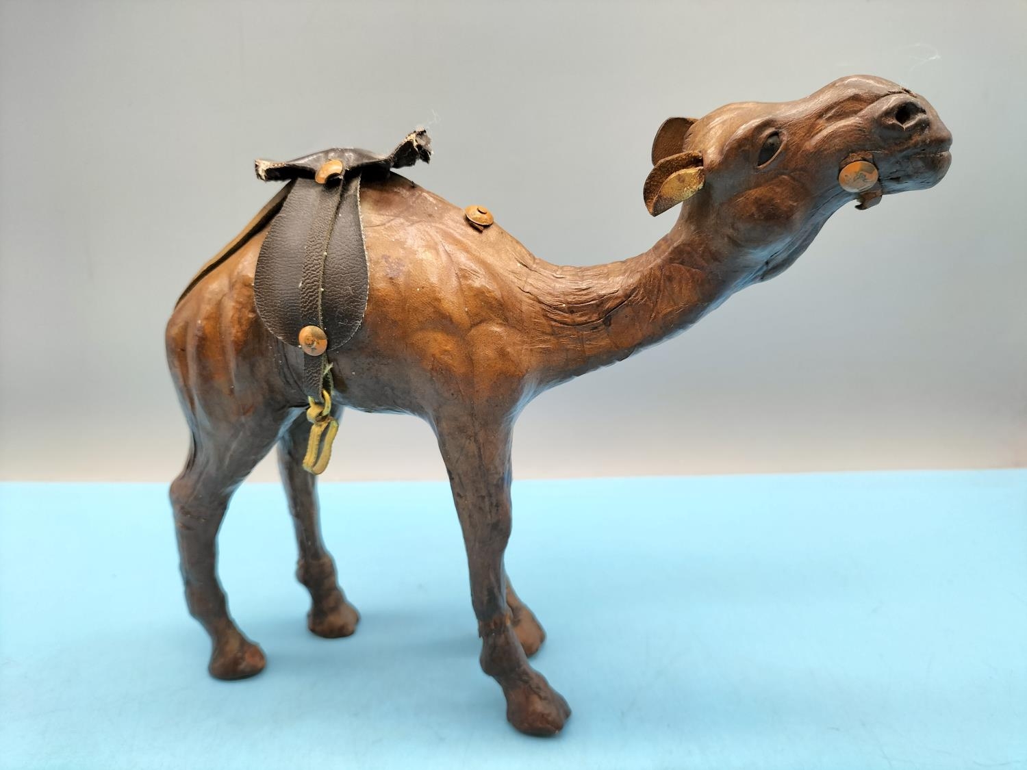 3 x Leather Camels. Largest 18cm High x 23cm.