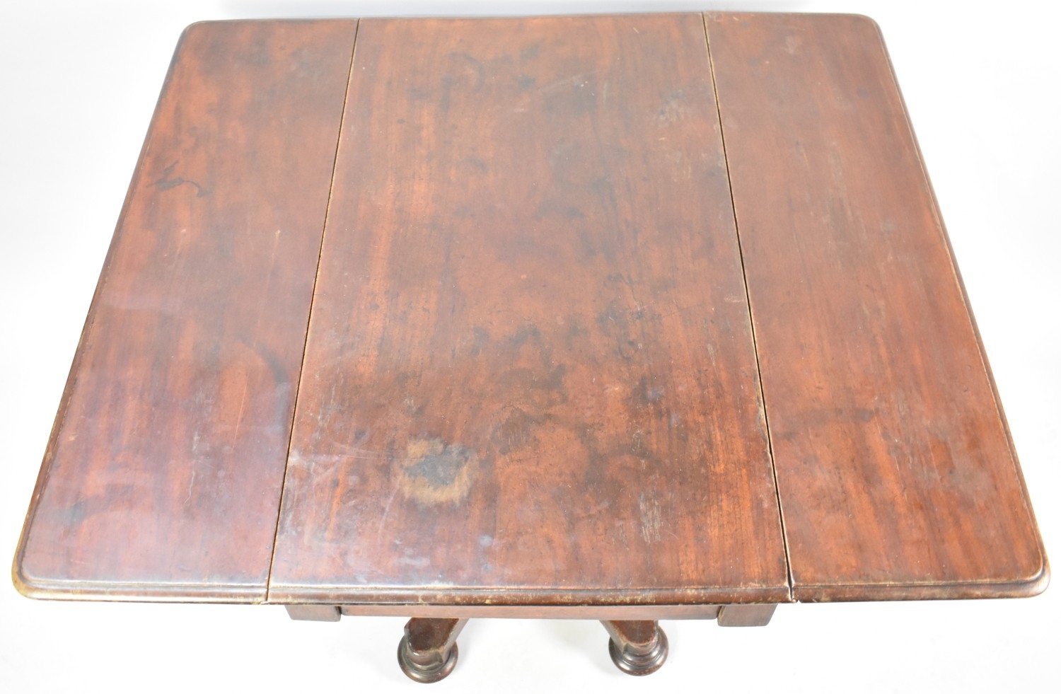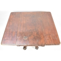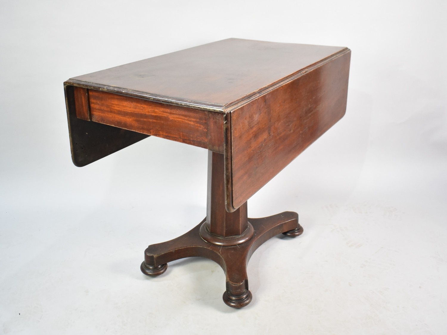 A 19th Century Mahogany Drop Leaf Table having Octagonal Stand Quadrant Base and Bun Feet with Castors, Single End Drawer, 92cms Wide