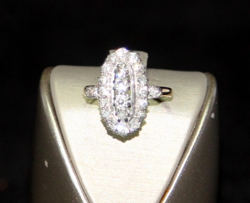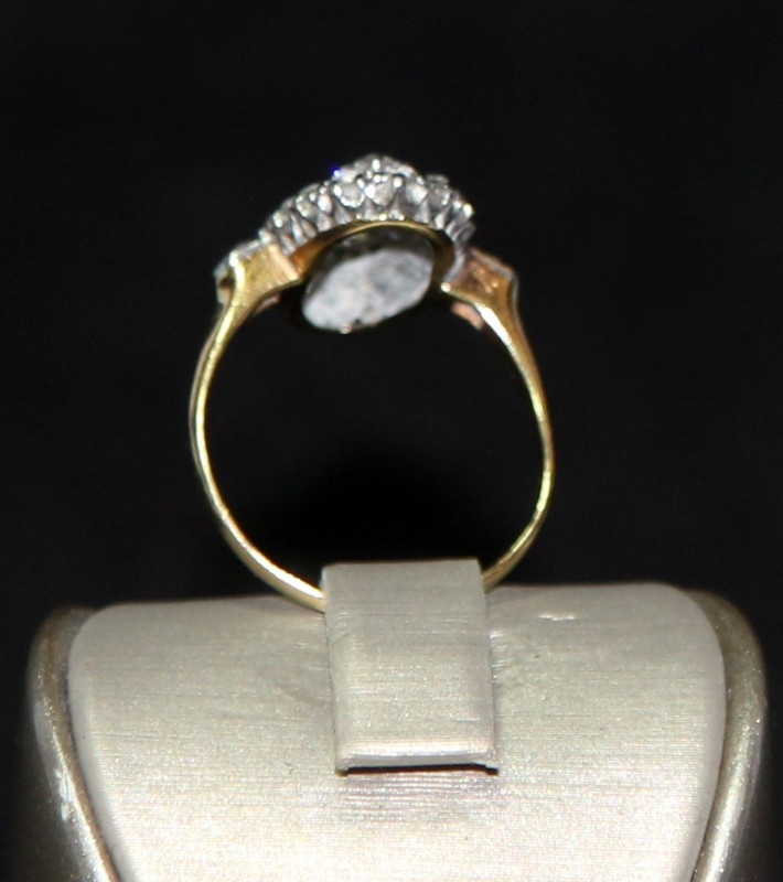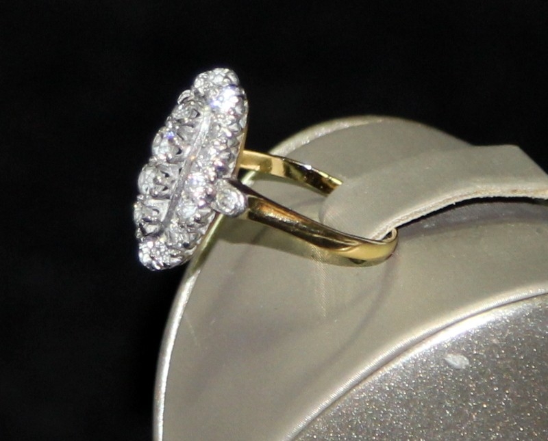 Stunning antique diamond Navette ring, unmarked yellow metal ring with white metal setting, Setting 20mm along longest side. Size P 1/2, 4.2g