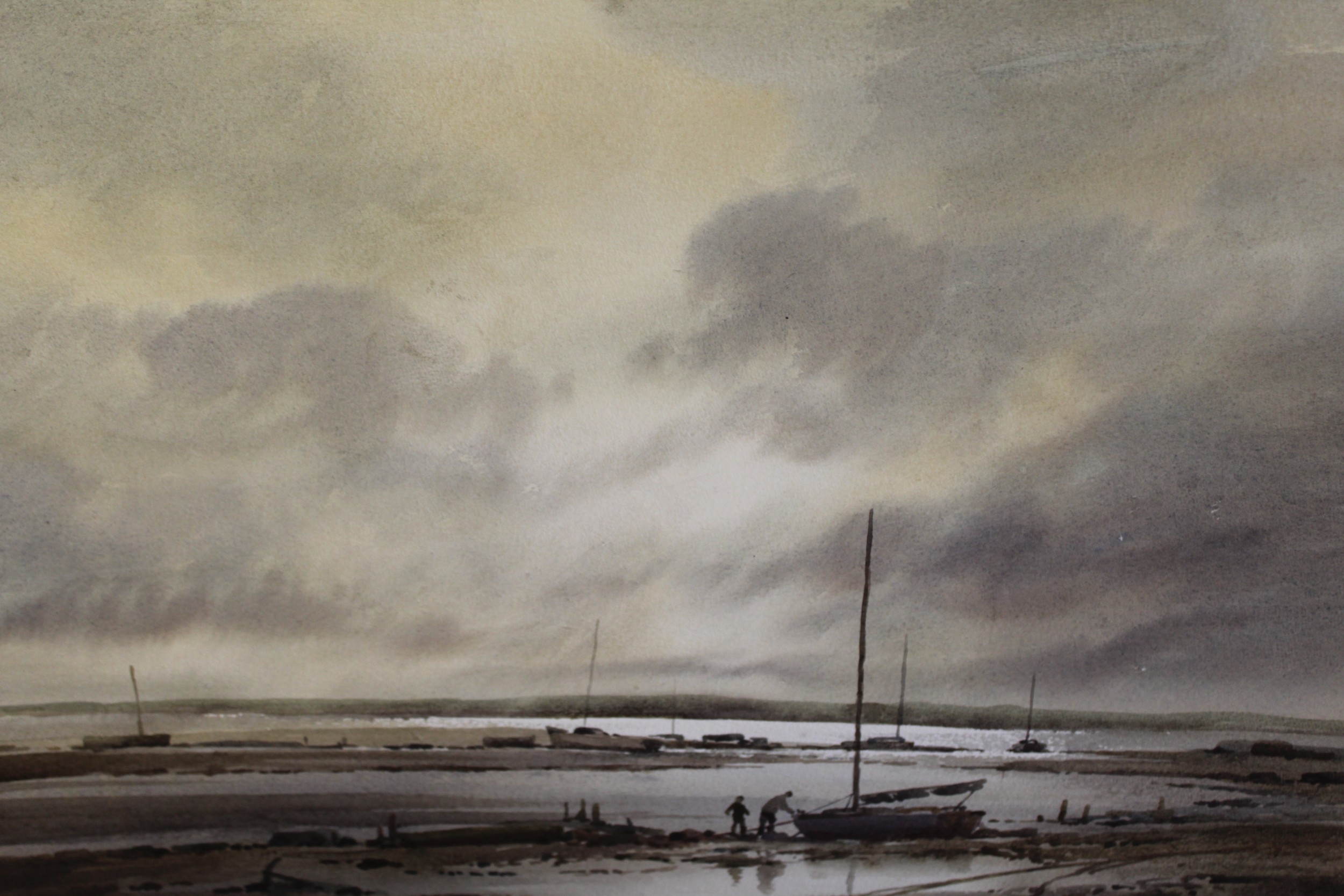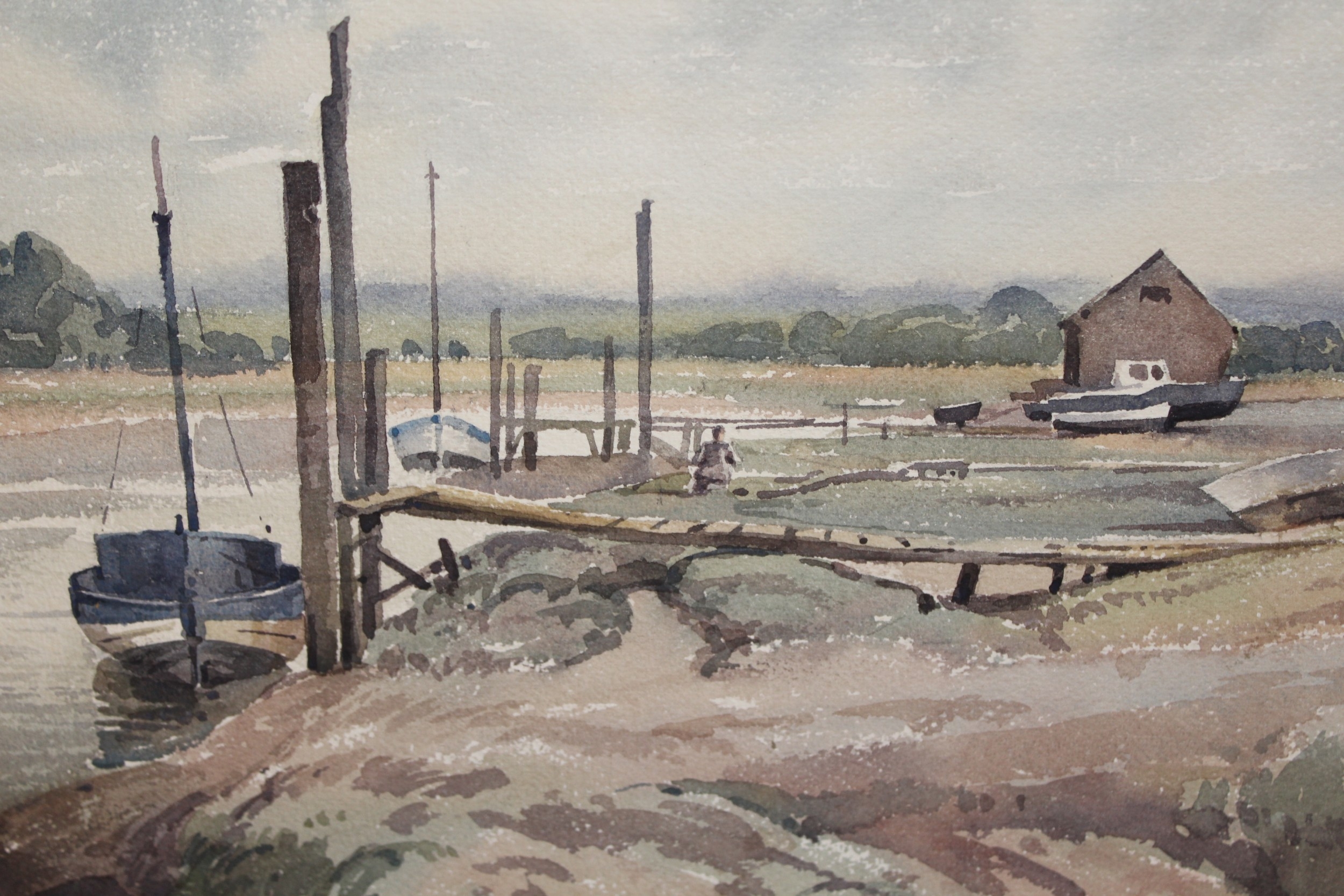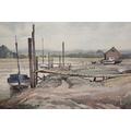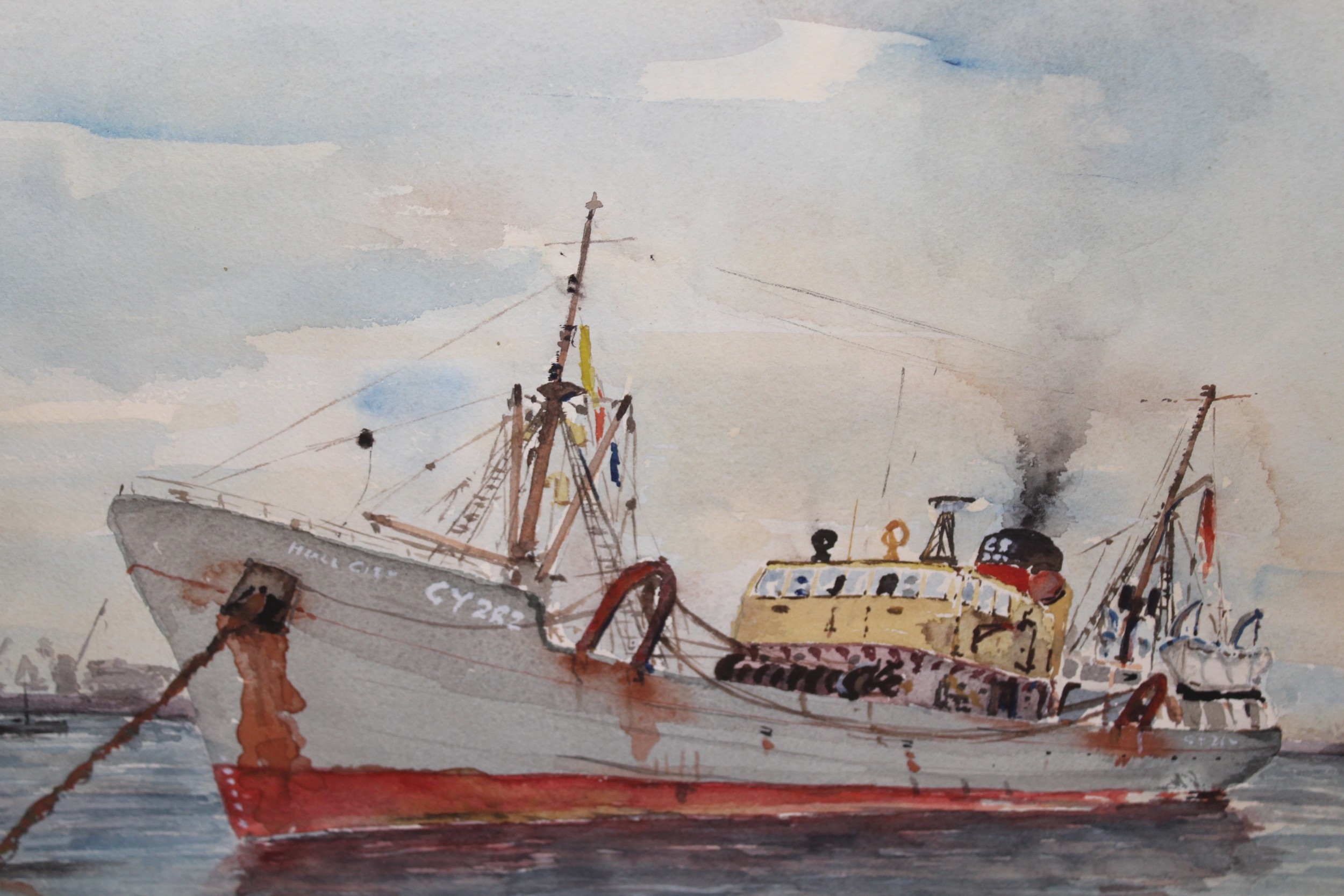 Unframed ink and watercolour, view of 59th Street and 5th Avenue, New York, indistinctly signed, together with three other various unframed watercolours
