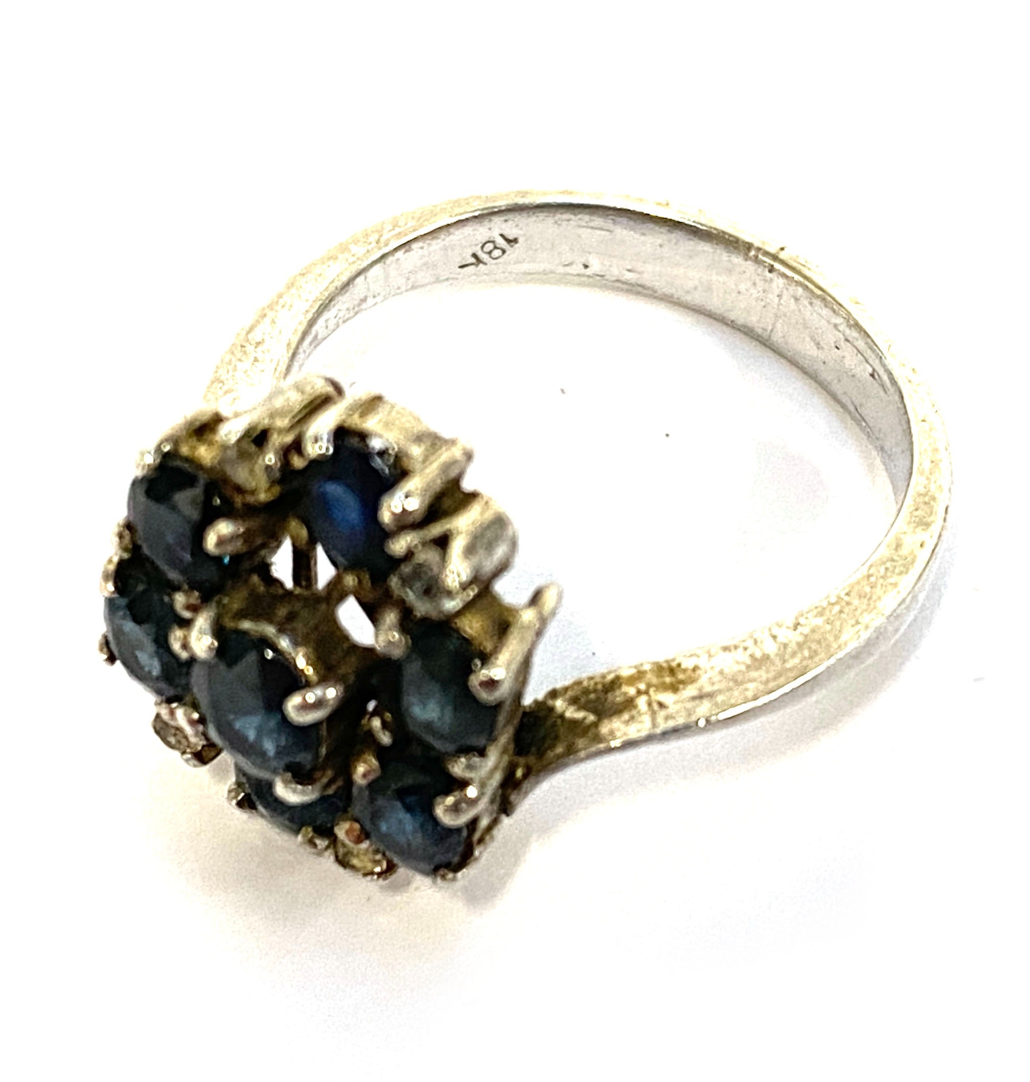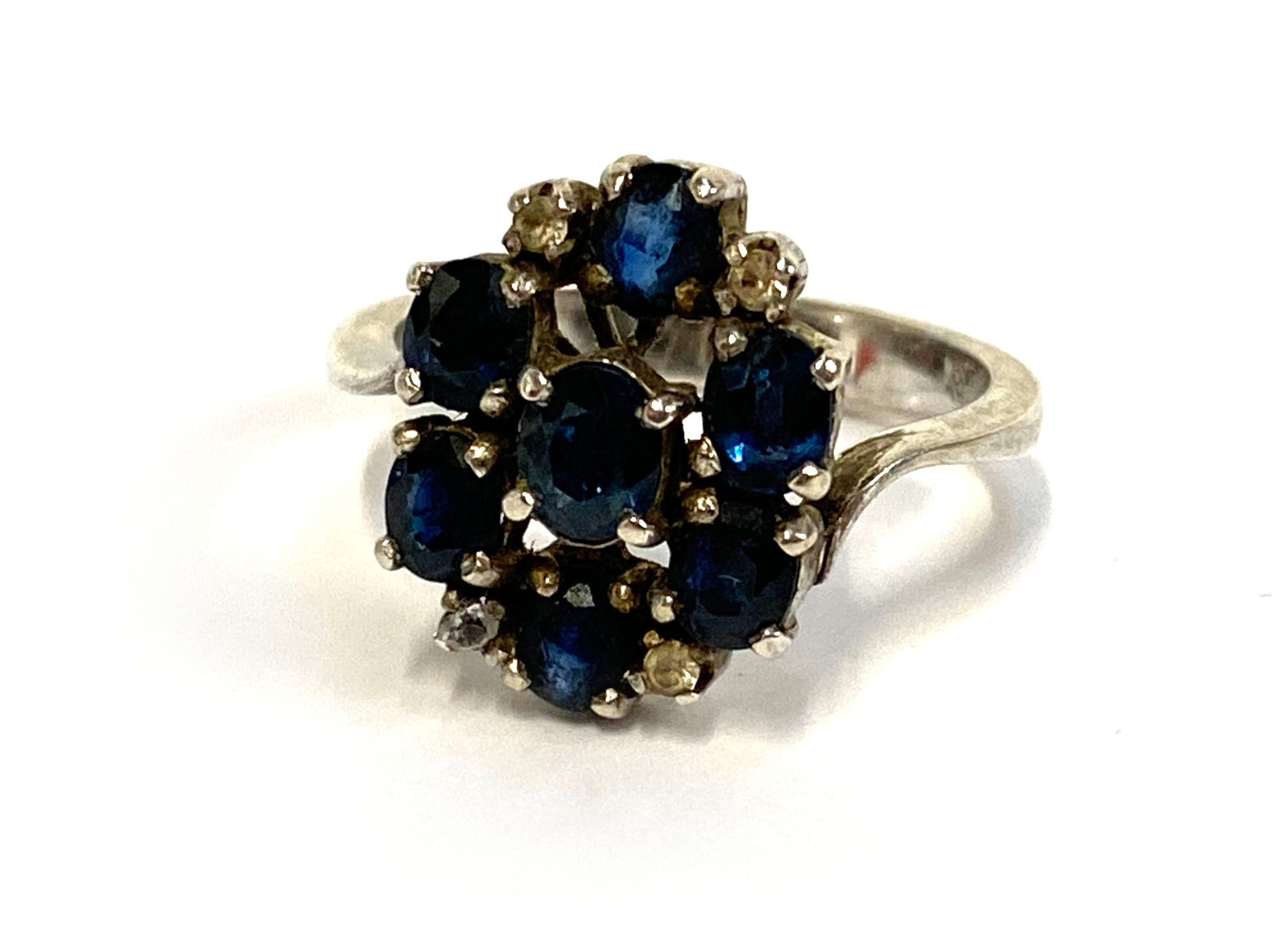 A silver and sapphire cluster ring, size M 1/2, 4g