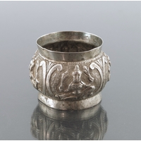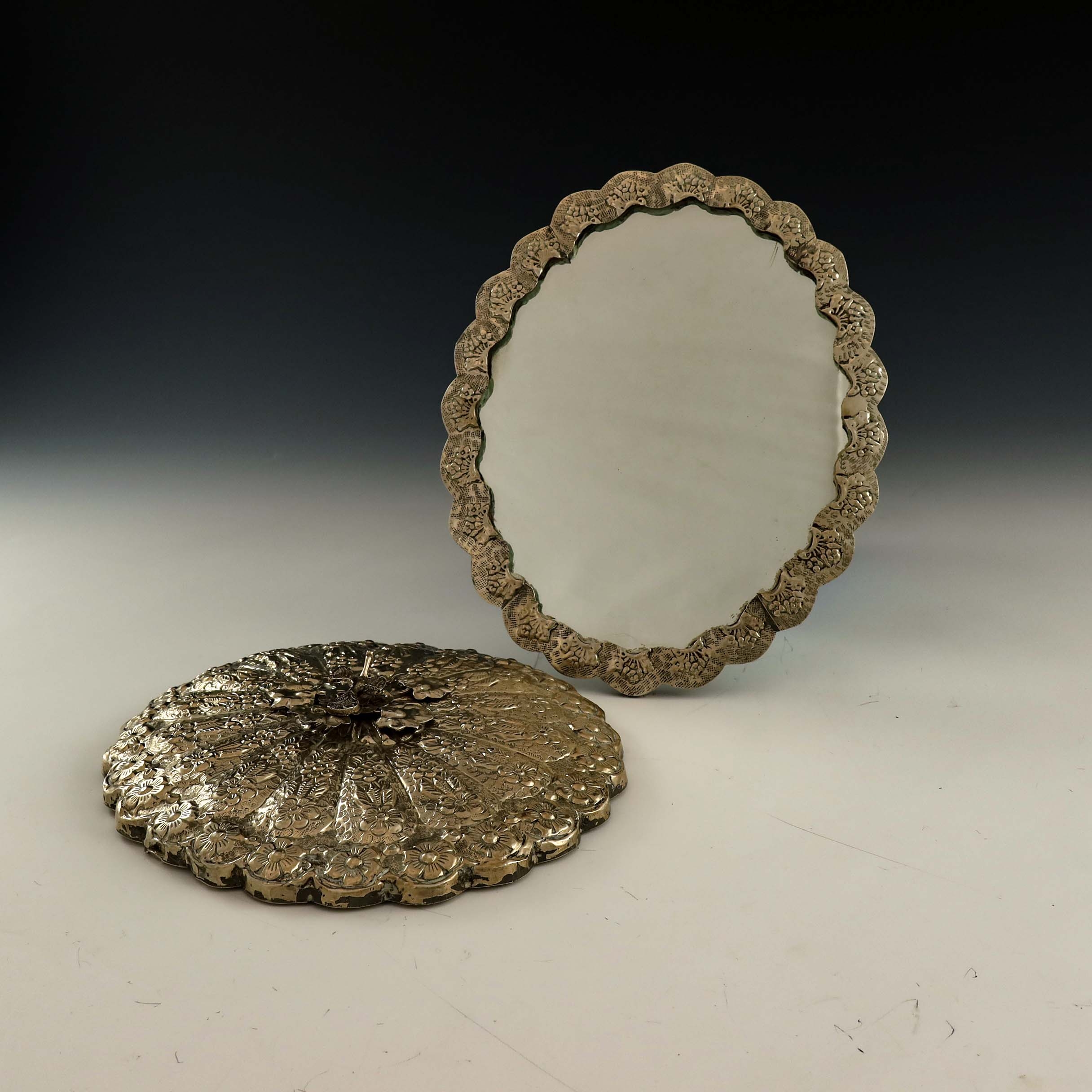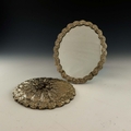 A pair of Ottoman silver mirrors, oval form, embossed and lobed with floral decoration to the cased backs, applied with cast birds, 22cm x 18cm