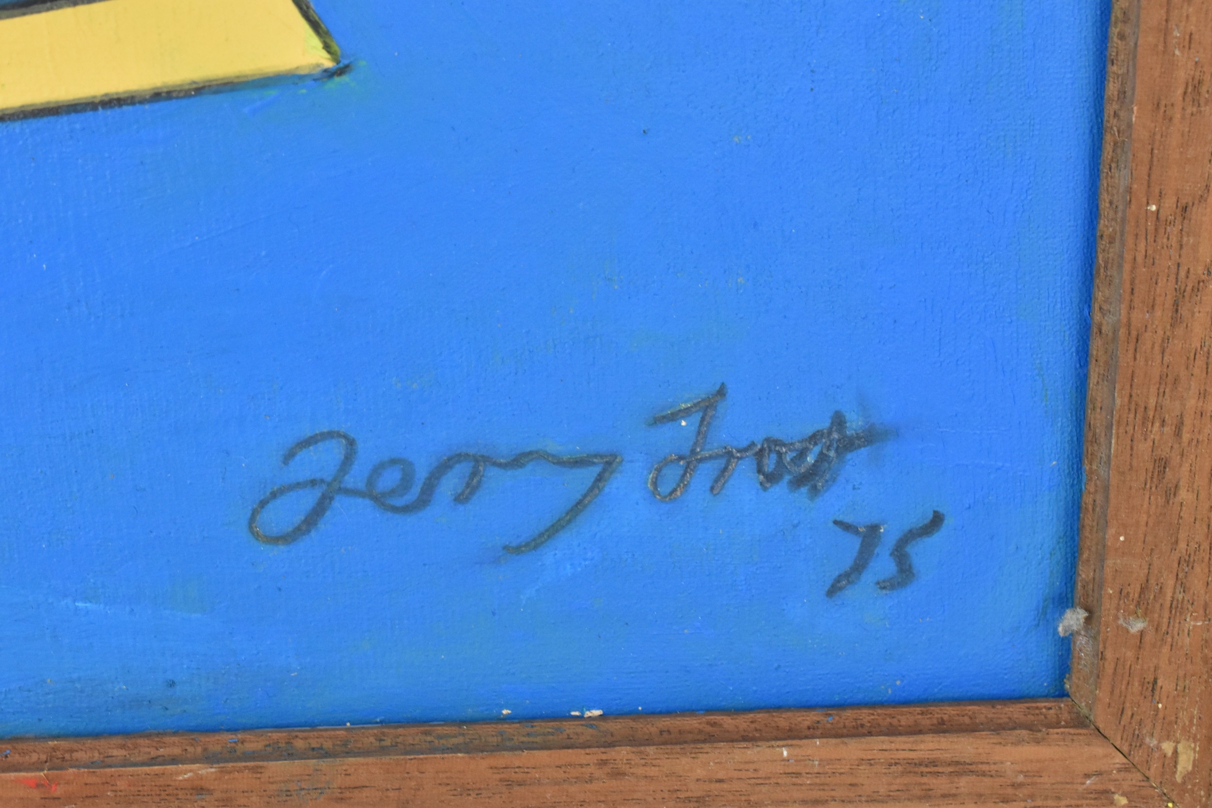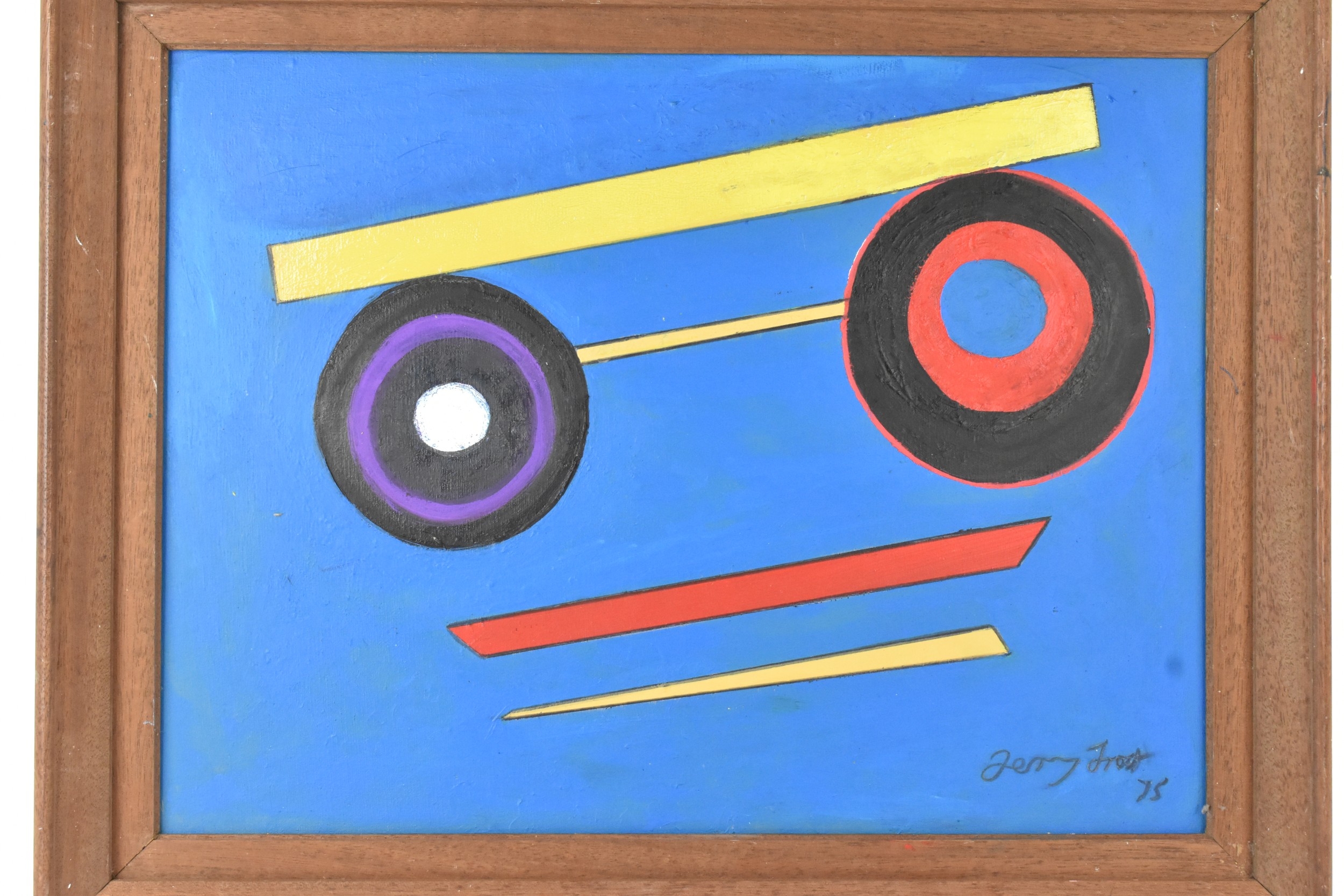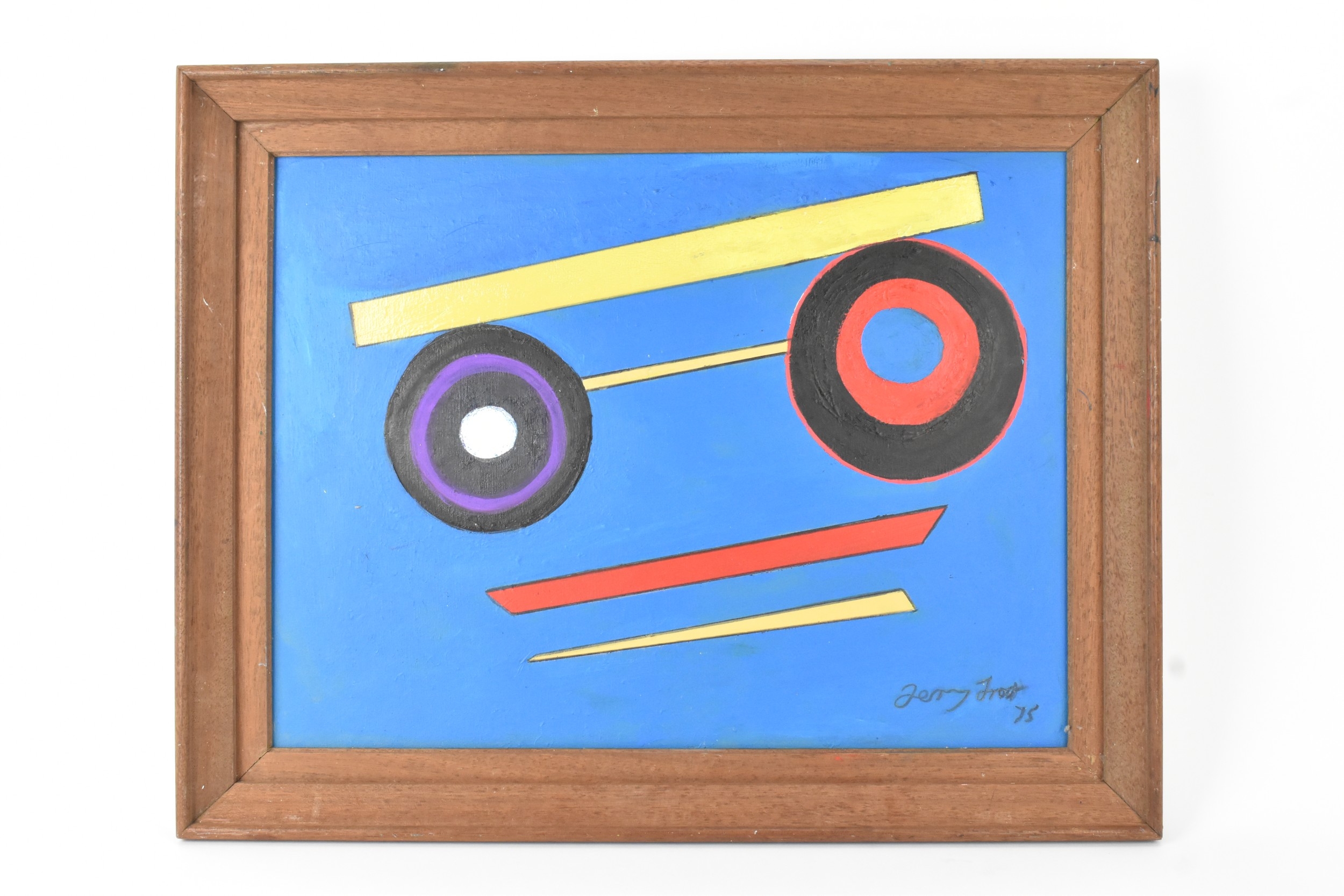 Manner of Terry Frost (1915-2003) An abstract oil on board entitled 'Some Platres', signed and dated '75' to the lower right corner, 50cm x 37cm, the frame 59.5cm x 47cm